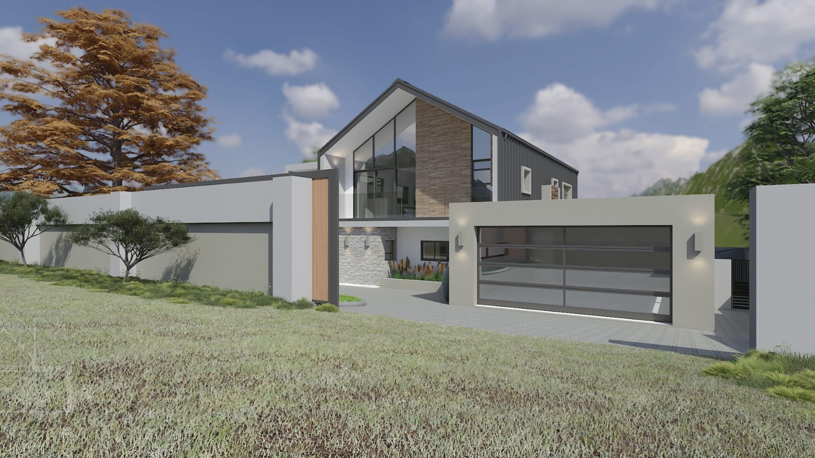 This exceptional 780 sqm vacant erf in the desirable Bronkhorstbaai area of Bronkhorstspruit, South Africa, presents a unique opportunity to create a bespoke modern residence. Nestled amidst established residential properties, this heavily vegetated plot offers natural privacy and direct access to a local road, providing a serene canvas for your architectural aspirations. The potential of this stand is immense, allowing for the construction of a contemporary home designed to your exact specifications. Imagine a striking multi-level architectural masterpiece, as envisioned in the accompanying concepts, featuring a dynamic facade of mixed materials including elegant stone cladding, warm wood accents, and sleek grey render. Expansive glass windows and sliding doors would maximise natural light and offer seamless indoor-outdoor living, potentially opening onto a private plunge pool with attractive wooden decking and a covered outdoor entertainment area. The design could incorporate a sophisticated open-concept living space, a luxurious kitchen with marble-effect finishes and integrated appliances, and ample garaging solutions, including a covered carport and a spacious double garage. This prime stand offers the chance to build a home that harmonises with its surroundings, potentially featuring a glass-railed balcony and an integrated modern garage, all set against a picturesque mountain backdrop. The property's kerb appeal would be enhanced by a well-defined entrance, patterned paver driveway, and integrated landscaping. Bronkhorstbaai offers a tranquil suburban lifestyle, making this an ideal location for those seeking to design and build their ultimate modern sanctuary. Key Features: * 780 sqm vacant erf in Bronkhorstbaai * Opportunity for custom modern architectural design * Potential for multi-level residence with mixed material facade * Space for private plunge pool and outdoor entertainment * Provision for double garage and ample parking * Ideal for open-plan living and luxurious kitchen * Scenic mountain backdrop potential * Located in an established residential area
