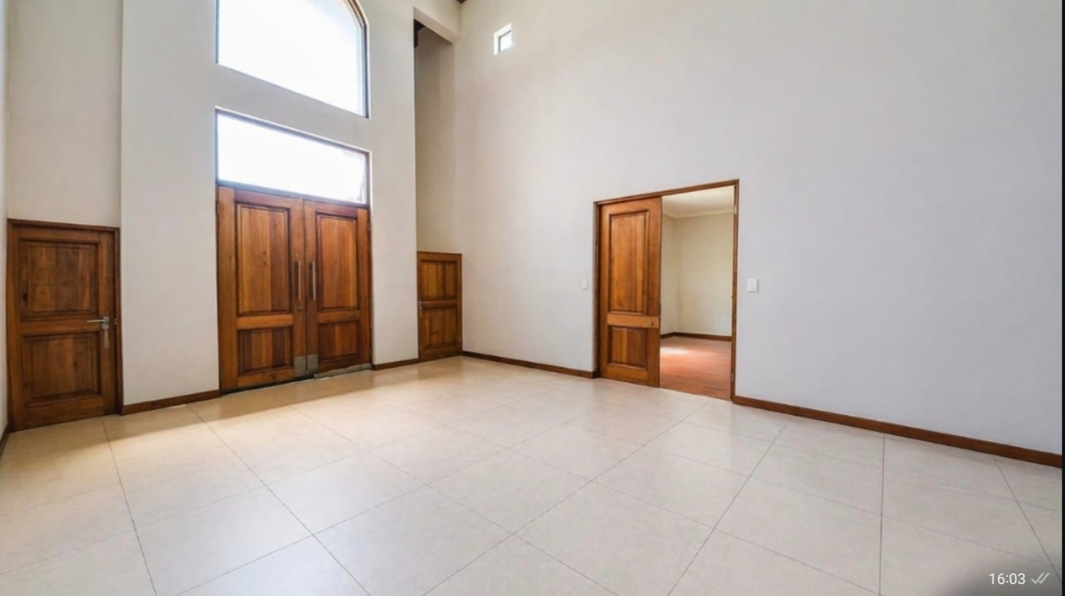 Grand double doors welcome you into a breathtaking double-volume entrance, where exposed beams and a striking central fireplace create a dramatic yet inviting focal point. Light pours into the vast open spaces, immediately setting the tone for elegant yet comfortable living.