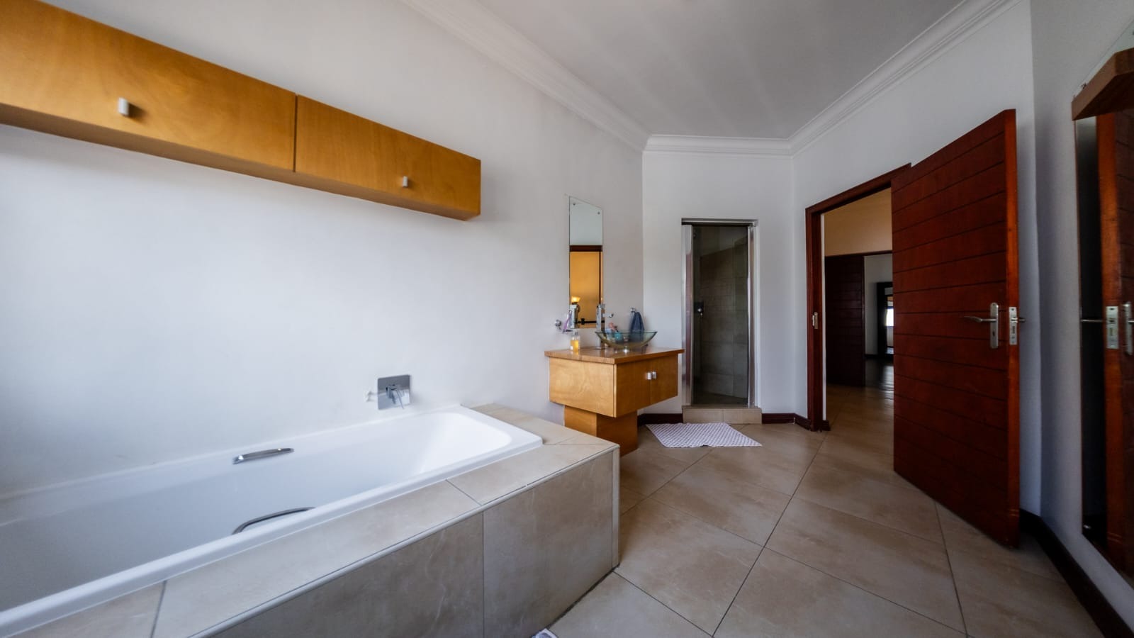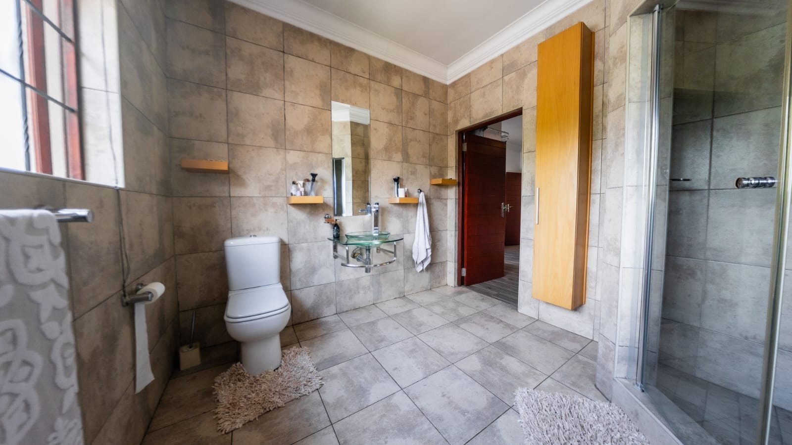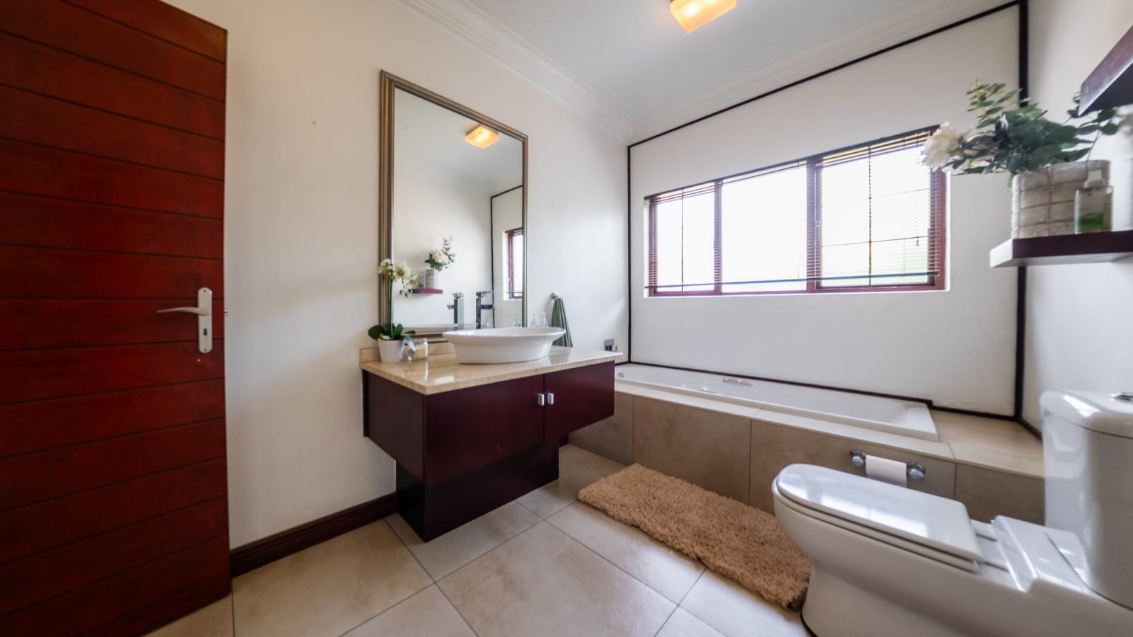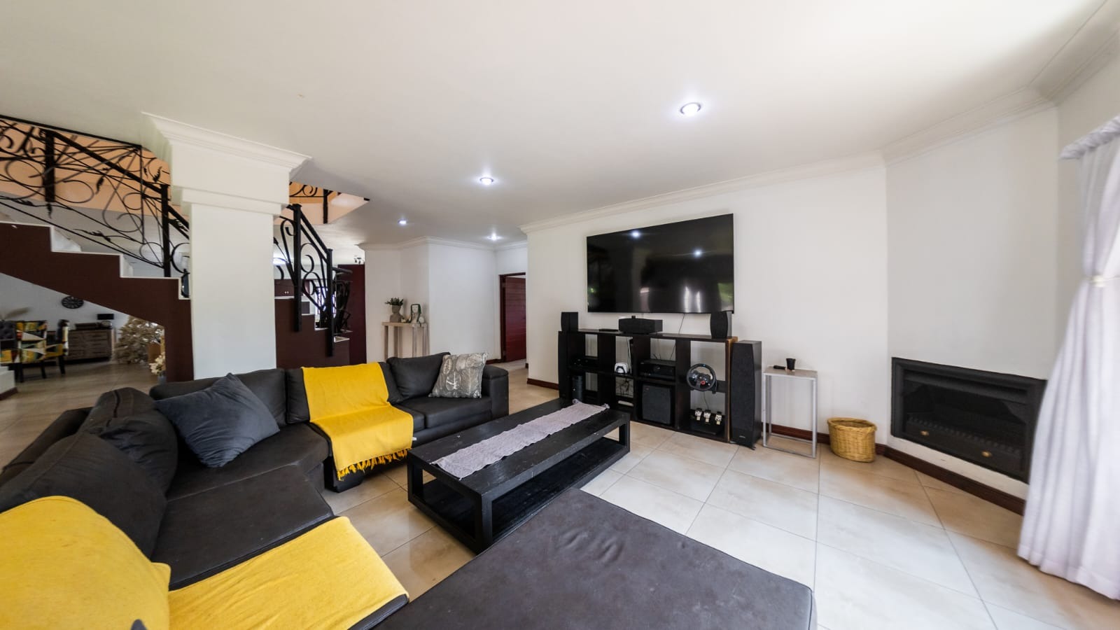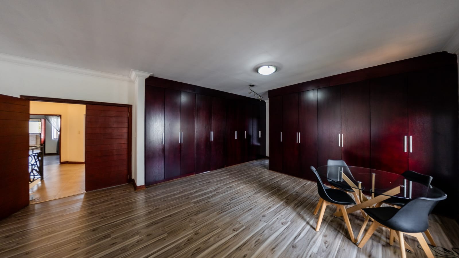 A majestic central staircase anchors the home and leads to five spacious bedrooms upstairs. The main suite is an elegant retreat, large enough for a full lounge set, a sanctuary for parents to unwind in privacy. The remaining four bedrooms are equally generous, with two sharing a modern full bathroom, making it ideal for children or guests.