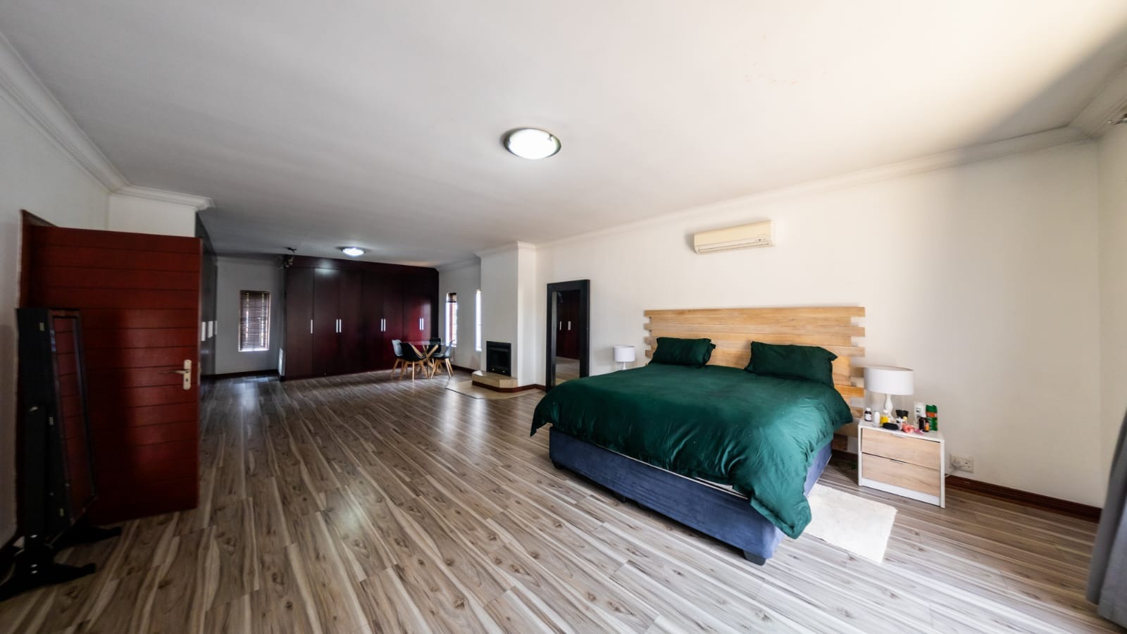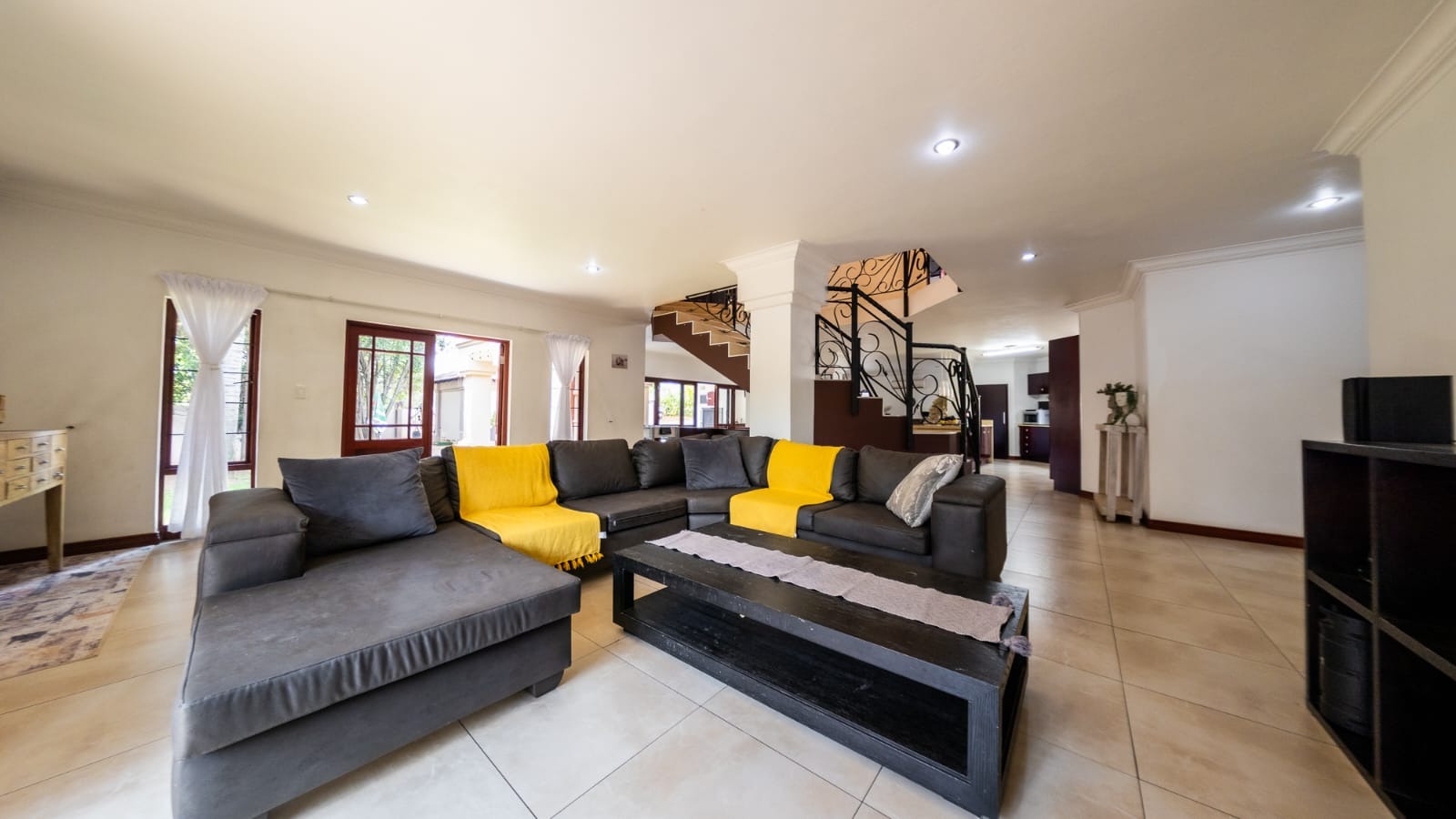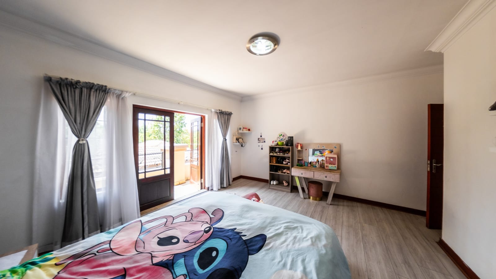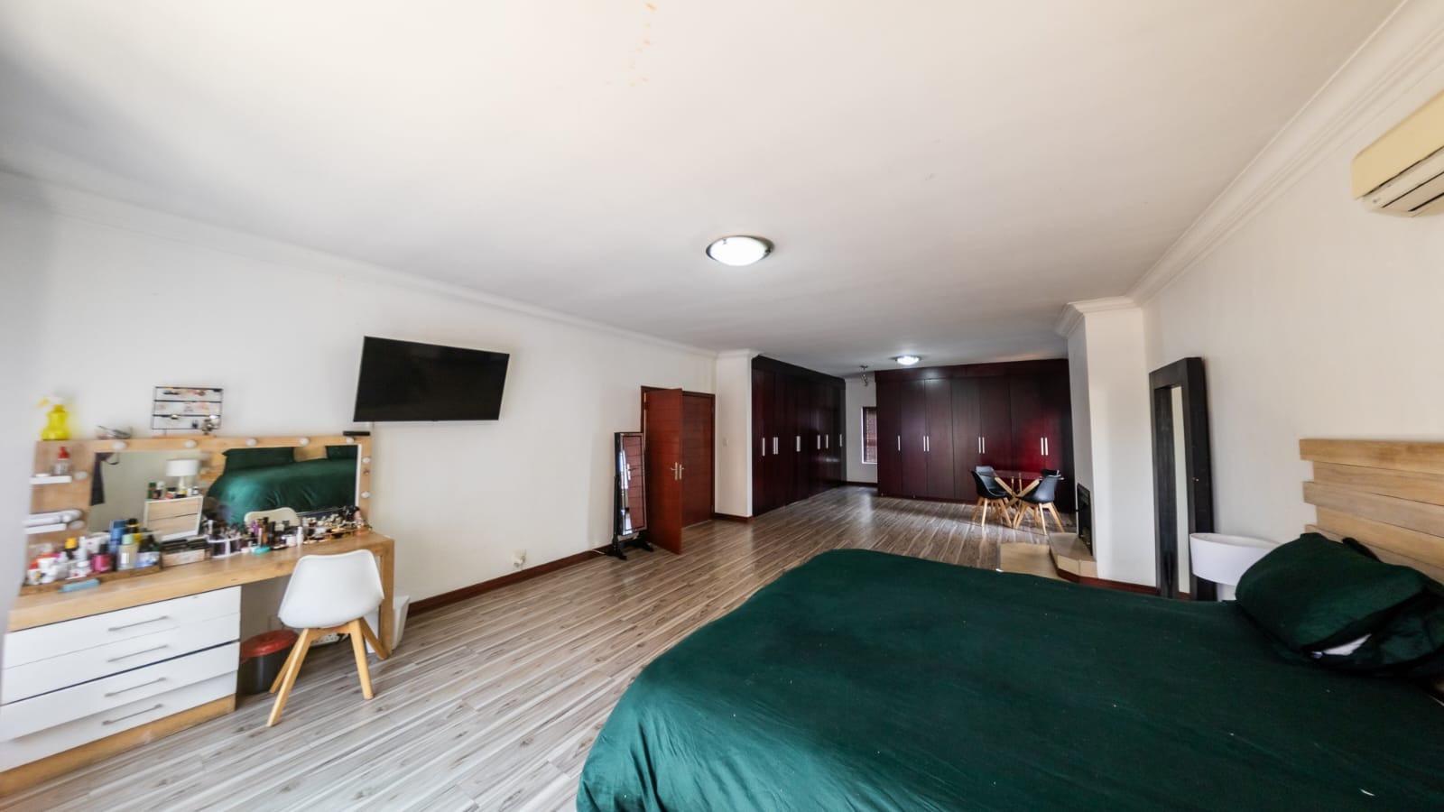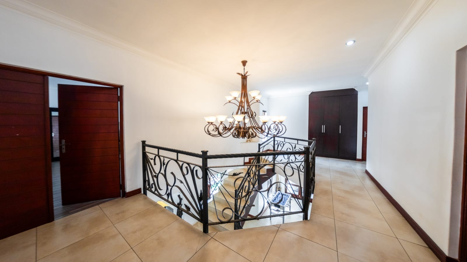 A majestic central staircase anchors the home and leads to five spacious bedrooms upstairs. The main suite is an elegant retreat, large enough for a full lounge set, a sanctuary for parents to unwind in privacy. The remaining four bedrooms are equally generous, with two sharing a modern full bathroom, making it ideal for children or guests.