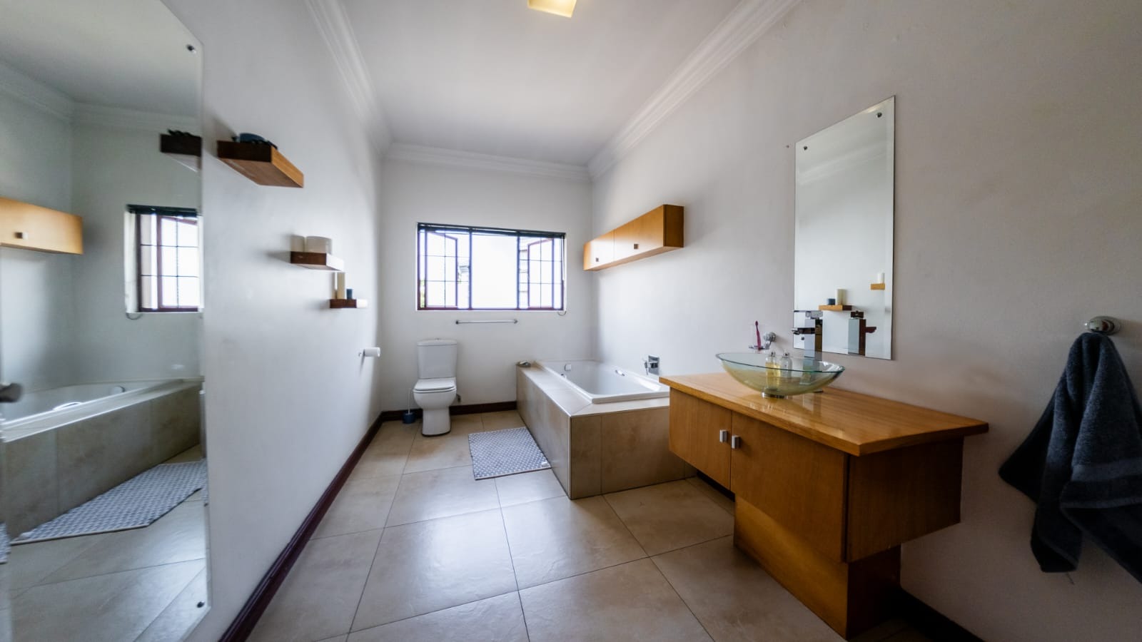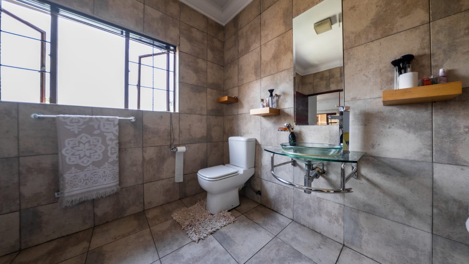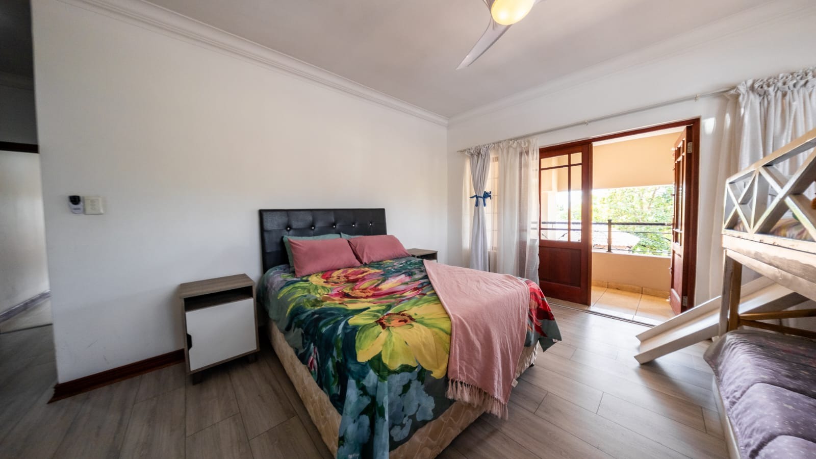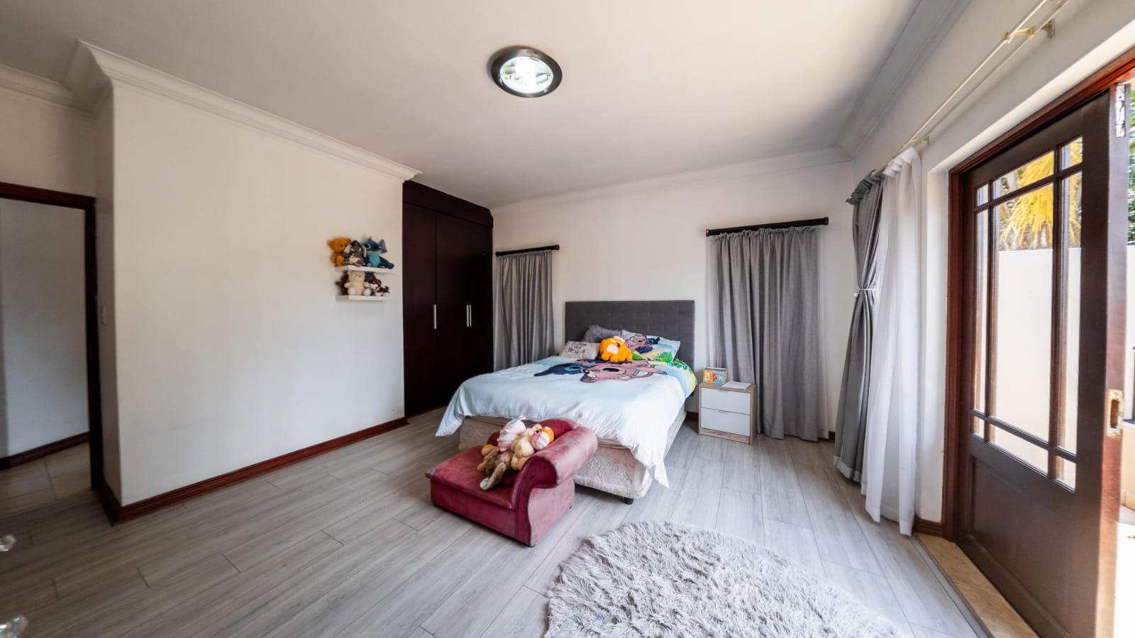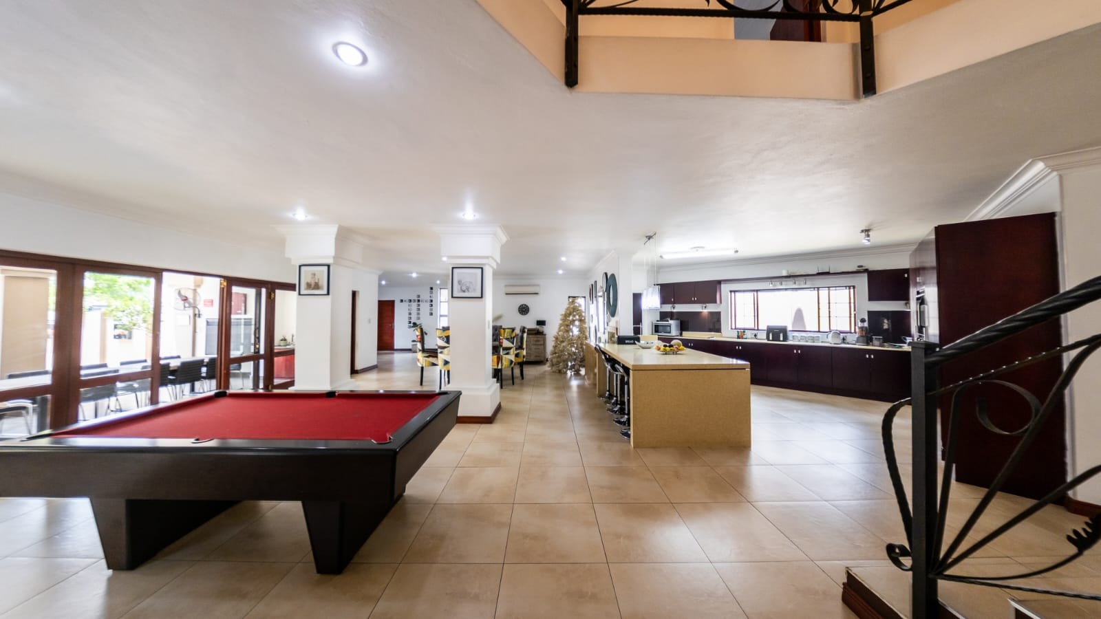 A majestic central staircase anchors the home and leads to five spacious bedrooms upstairs. The main suite is an elegant retreat, large enough for a full lounge set, a sanctuary for parents to unwind in privacy. The remaining four bedrooms are equally generous, with two sharing a modern full bathroom, making it ideal for children or guests.