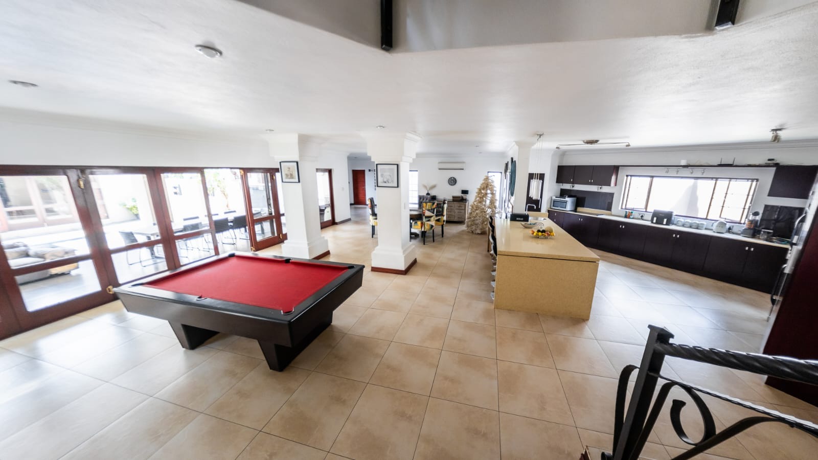 For those who love to entertain, the extra-large covered patio offers space to host grand gatherings and can easily be divided into two separate entertainment zones. Overlooking the pool, a dedicated entertainment area with a built-in bar ensures effortless hosting and year-round enjoyment.