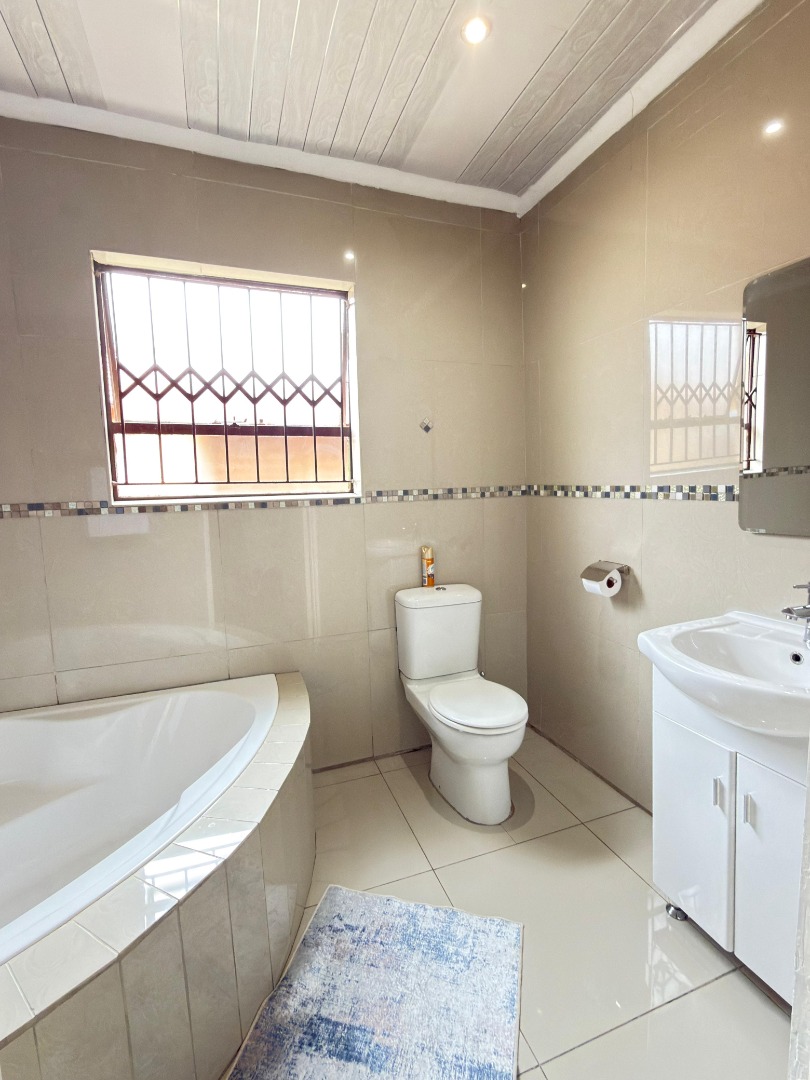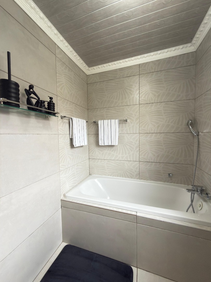This SPACIOUS HOME offers 3 BEDROOMS with build in cupboards , 2 BATHROOMS ( main en-suite with Ultra modern Bath, toilet and basin)