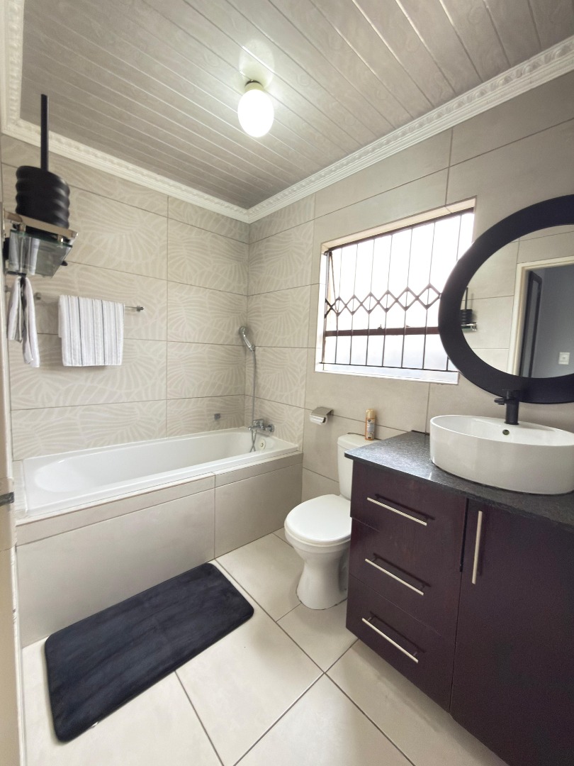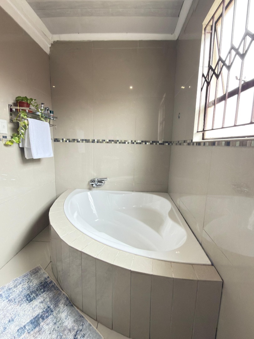 This SPACIOUS HOME offers 3 BEDROOMS with build in cupboards , 2 BATHROOMS ( main en-suite with Ultra modern Bath, toilet and basin)