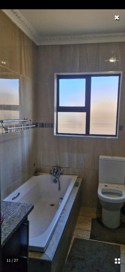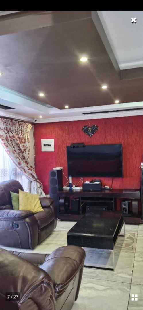 This SPACIOUS HOME offers 4 BEDROOMS, 3 with build in cupboards , 4 th bedroom has an aircon. 2 BATHROOMS ( main en-suite with Shower, toilet and basin and heater, fully walled .tiles / Glass door to bathroom