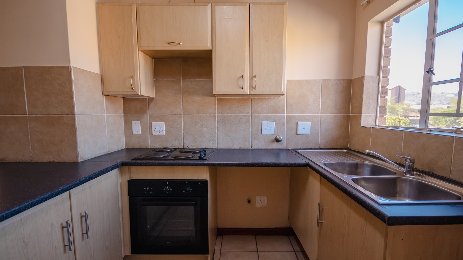 Discover this inviting 2-bedroom, 1-bathroom apartment situated within a well-maintained security complex in Annlin, Pretoria. The complex features durable brick construction with tiled roofs, presenting a neat and appealing exterior. Residents benefit from well-kept lawns, paved pathways, and convenient covered parking facilities. Solar panels on rooftops underscore a commitment to energy efficiency, while a dedicated children's playground offers a safe recreational space. Spanning a comfortable 75 square meters, this apartment boasts an open-plan layout that seamlessly connects the kitchen and living areas, creating a spacious and functional environment. The interior is finished with practical tiled flooring throughout, ensuring easy maintenance. The kitchen is equipped with essential amenities, including a built-in oven, hob, double sink, ample cabinet storage, and a convenient breakfast bar. Large windows allow for abundant natural light, enhancing the bright and airy feel. The apartment offers two comfortable bedrooms, designed with a neutral palette for versatile customisation, and a well-appointed single bathroom. Security is paramount, with a 24-hour security post and access gate ensuring resident peace of mind. This property includes one dedicated parking space. Located in the metropolitan area of Annlin, Pretoria, this apartment provides convenient access to local amenities and transport routes, making it a desirable address for modern living. Key Features: * 2 Bedrooms, 1 Bathroom * 75 sqm Floor Size * Open-plan living and kitchen area * Functional kitchen with built-in oven and hob * Tiled flooring throughout * Secure complex with 24-hour security and access gate * Dedicated parking space * Children's playground within the complex * Situated in Annlin, Pretoria