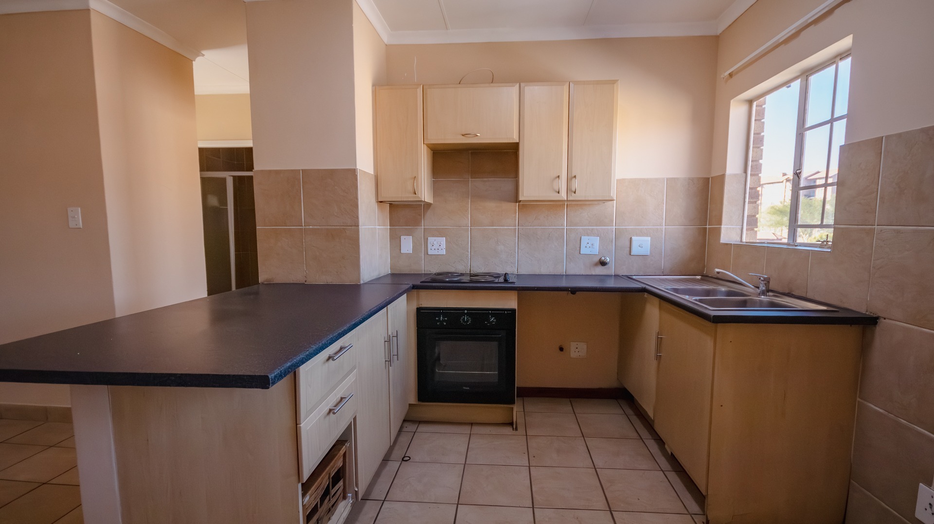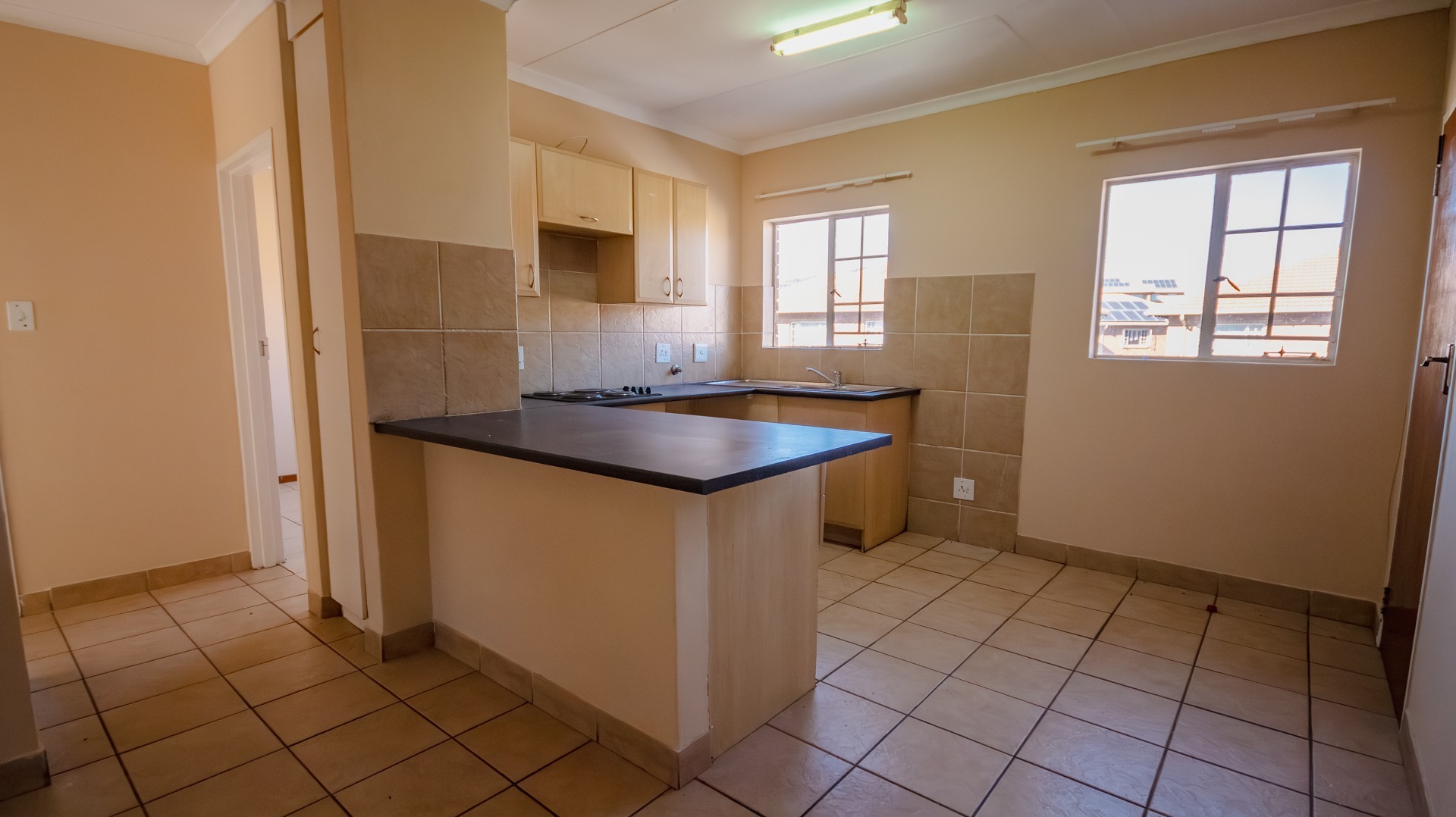 Discover this inviting 2-bedroom, 1-bathroom apartment situated within a well-maintained security complex in Annlin, Pretoria. The complex features durable brick construction with tiled roofs, presenting a neat and appealing exterior. Residents benefit from well-kept lawns, paved pathways, and convenient covered parking facilities. Solar panels on rooftops underscore a commitment to energy efficiency, while a dedicated children's playground offers a safe recreational space. Spanning a comfortable 75 square meters, this apartment boasts an open-plan layout that seamlessly connects the kitchen and living areas, creating a spacious and functional environment. The interior is finished with practical tiled flooring throughout, ensuring easy maintenance. The kitchen is equipped with essential amenities, including a built-in oven, hob, double sink, ample cabinet storage, and a convenient breakfast bar. Large windows allow for abundant natural light, enhancing the bright and airy feel. The apartment offers two comfortable bedrooms, designed with a neutral palette for versatile customisation, and a well-appointed single bathroom. Security is paramount, with a 24-hour security post and access gate ensuring resident peace of mind. This property includes one dedicated parking space. Located in the metropolitan area of Annlin, Pretoria, this apartment provides convenient access to local amenities and transport routes, making it a desirable address for modern living. Key Features: * 2 Bedrooms, 1 Bathroom * 75 sqm Floor Size * Open-plan living and kitchen area * Functional kitchen with built-in oven and hob * Tiled flooring throughout * Secure complex with 24-hour security and access gate * Dedicated parking space * Children's playground within the complex * Situated in Annlin, Pretoria