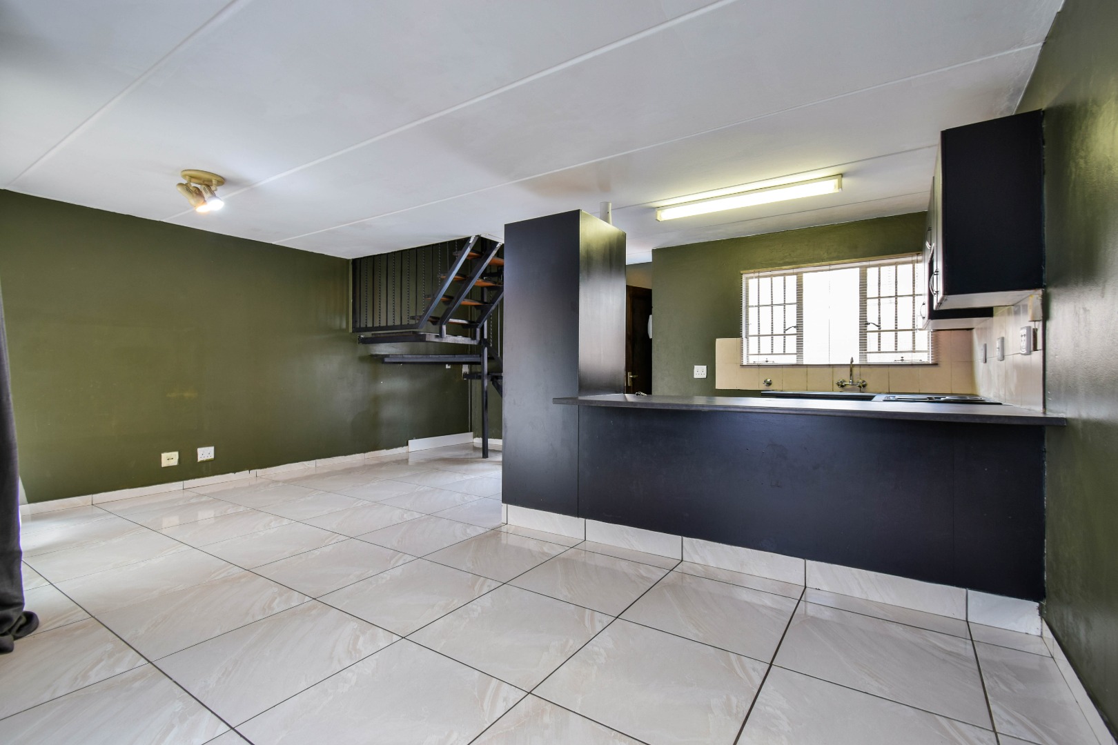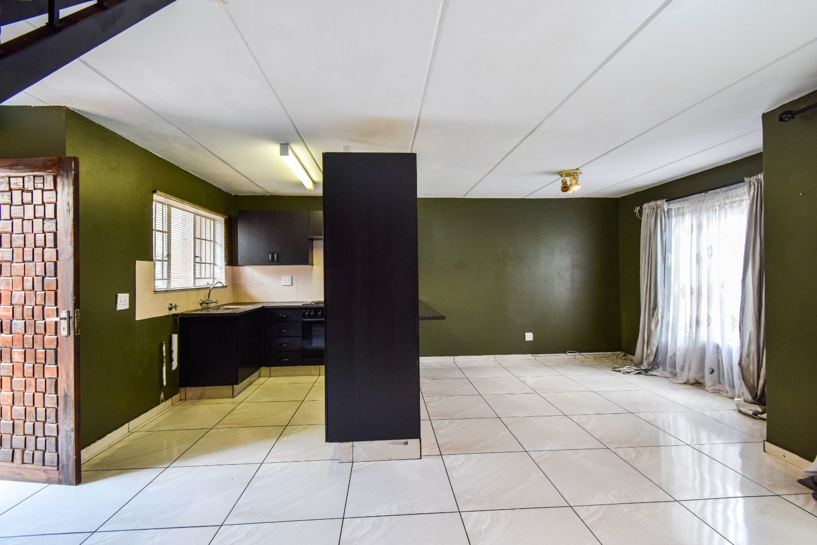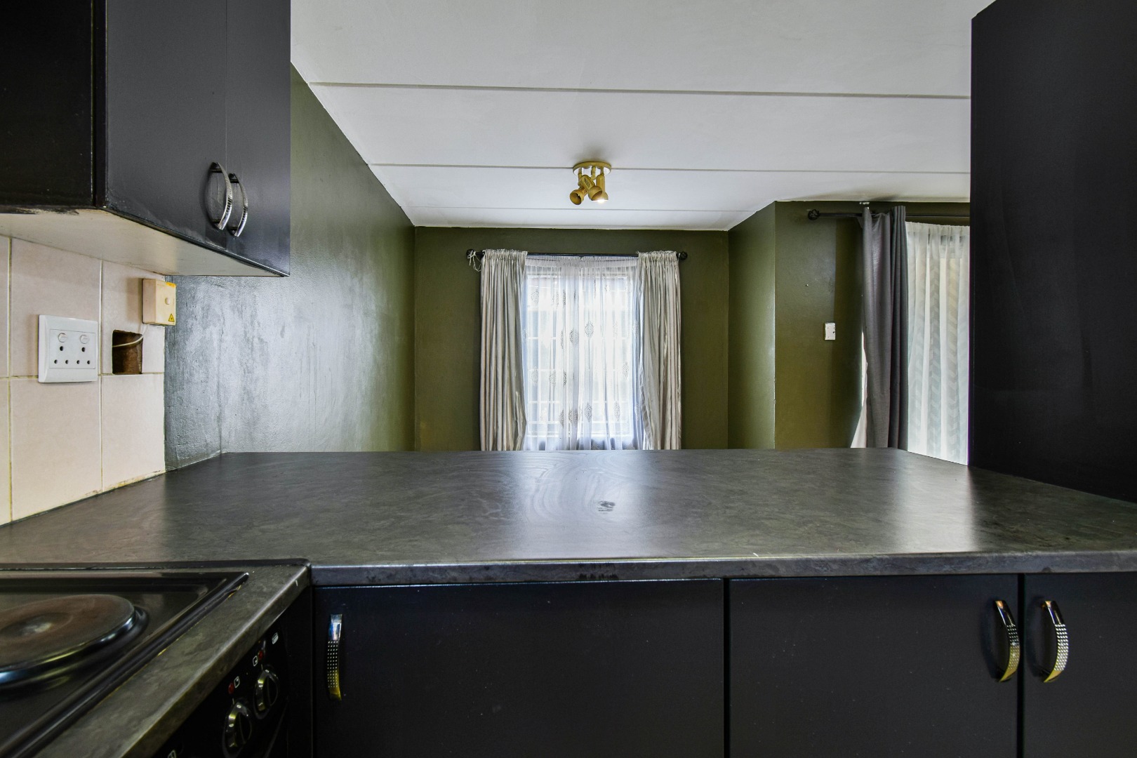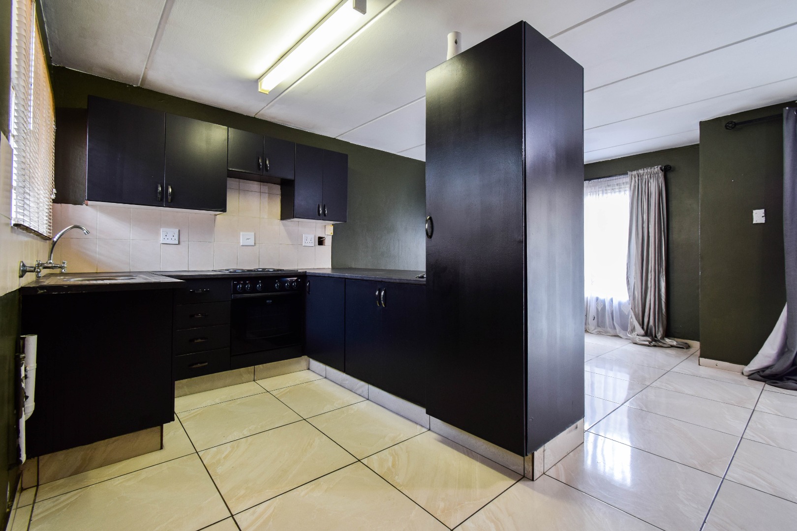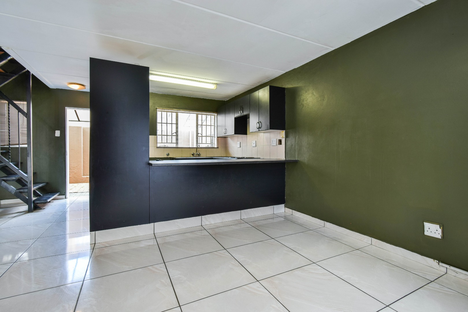 The living area is welcoming and spacious, creating the perfect environment to relax or entertain. It flows easily into the kitchen, which is designed for practicality with sufficient cupboard space and room for essential appliances. The open and easy flow of the home makes it ideal for comfortable everyday living.