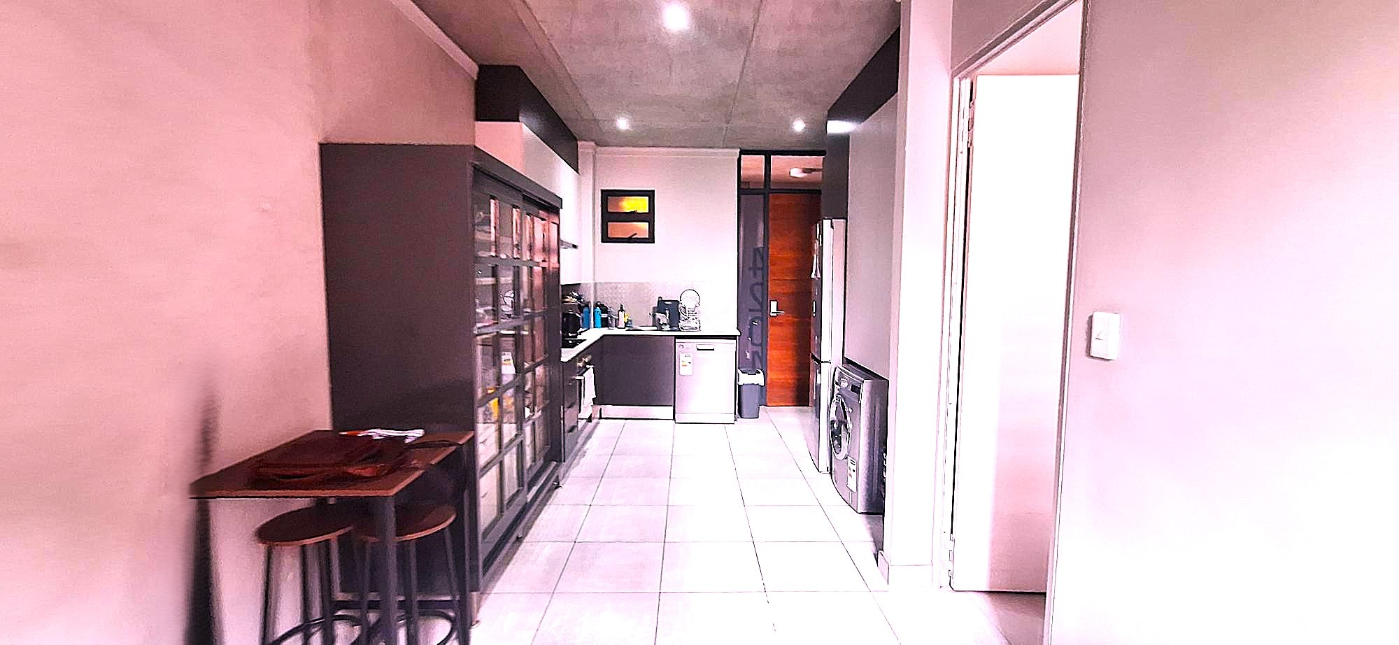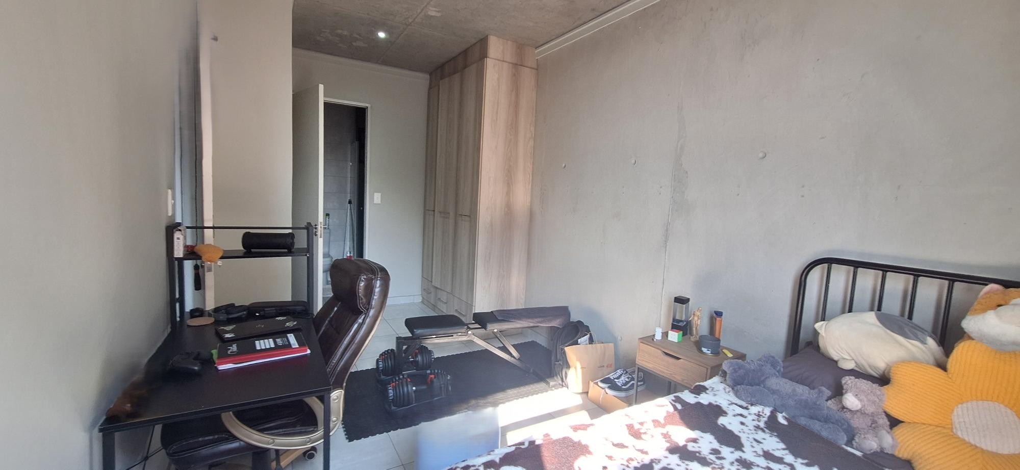 Discover modern living in this stylish 1-bedroom apartment, perfectly situated in the vibrant Brooklyn suburb of Pretoria. Spanning a comfortable 57 square meters, this residence offers a contemporary open-plan layout designed for convenience and urban appeal. The well-appointed kitchen features sleek grey and white cabinetry, integrated appliances including a hob, oven, and extractor fan, complemented by a modern tiled backsplash and durable tiled flooring. Natural light enhances the living space, creating an inviting atmosphere. The apartment comprises one spacious bedroom and a single ensuite bathroom, providing a private and comfortable retreat. The design prioritizes functionality and a clean aesthetic, ideal for a discerning individual or student. Residents benefit from an array of exceptional communal amenities. Enjoy leisurely days by the swimming pool, maintain an active lifestyle at the on-site gym, or relax in the various outdoor communal spaces, including a paved patio area with ambient string lights and modern industrial-style zones with artificial turf and integrated greenery. The property also includes one dedicated parking bay. Security is paramount, with 24-hour security services and a secure access gate ensuring peace of mind. The building boasts modern concrete architecture with integrated green elements, contributing to its kerb appeal. Fibre connectivity is available, catering to modern communication needs. Located in Brooklyn, this property is ideally suited for student accommodation, offering proximity to the university and college community. Key Features: * 1 Bedroom, 1 Bathroom (Ensuite) * 57 sqm Floor Size * Modern Open-Plan Kitchen * Communal Swimming Pool * On-site Gym Facilities * 1 Dedicated Parking Bay * 24-Hour Security & Access Gate * Fibre Ready