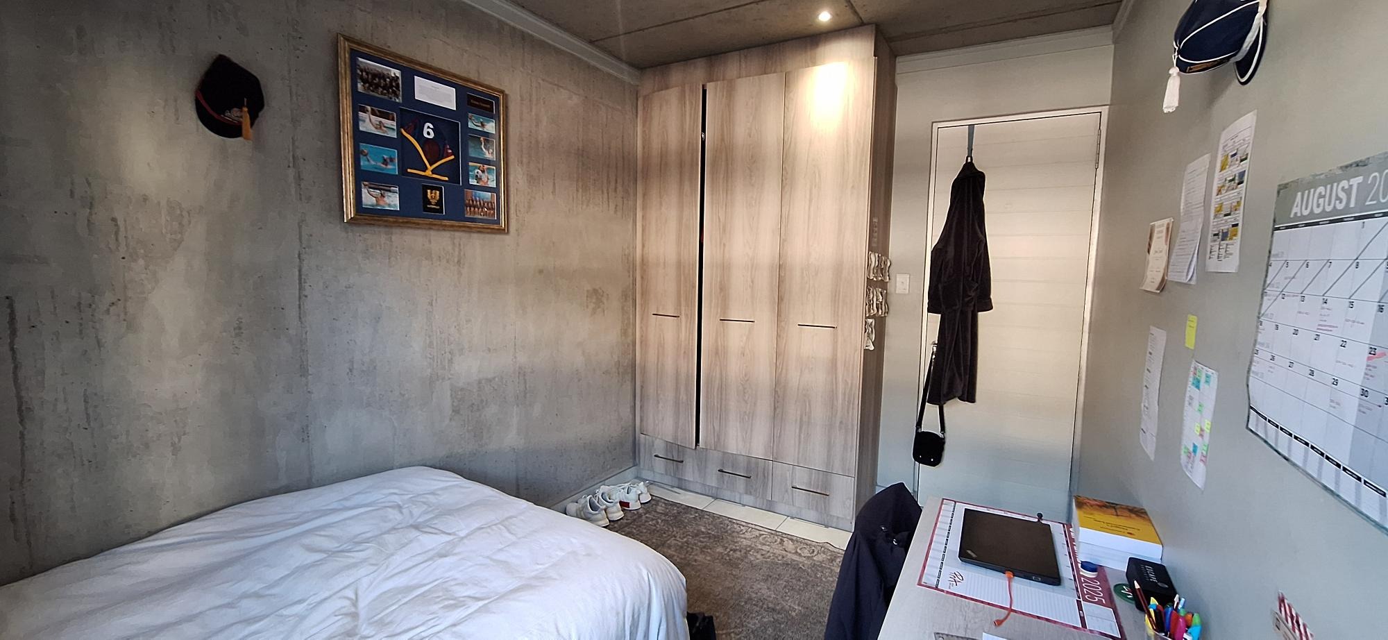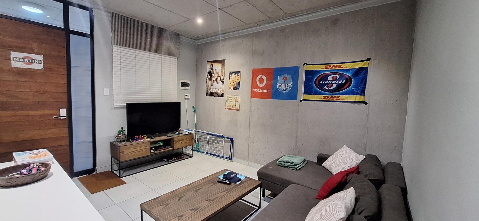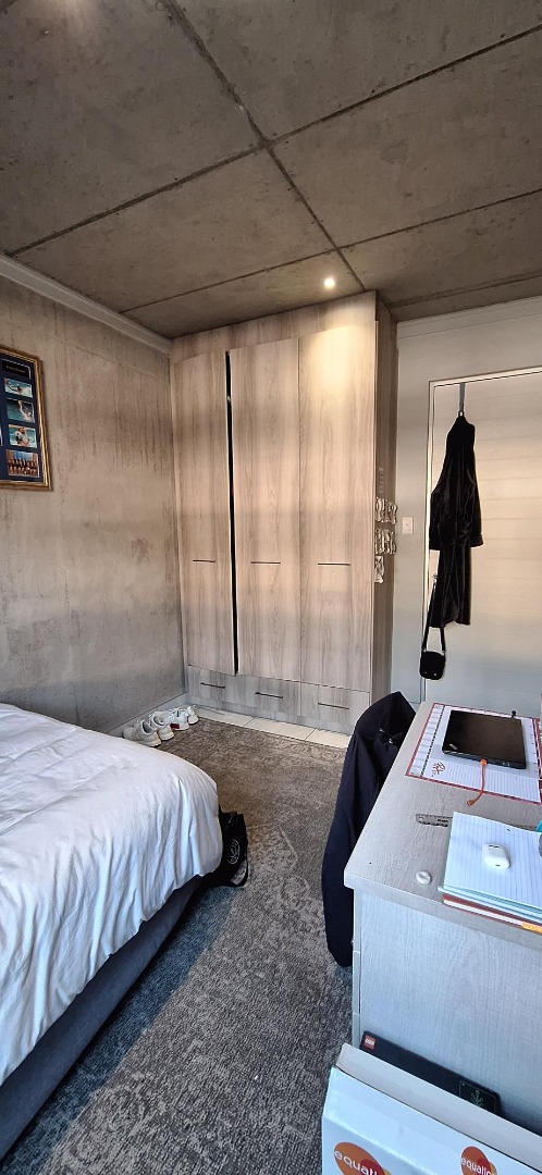 Discover modern living in this stylish 89 sqm apartment, ideally situated in the vibrant Brooklyn area of Pretoria. The building boasts a contemporary architectural design with individual balconies and a welcoming covered entrance, set on a pleasant, tree-lined street that enhances its kerb appeal. Step inside to an open-plan layout featuring a modern industrial aesthetic, characterized by exposed concrete walls and ceilings, complemented by sleek tiled flooring throughout. The functional living space includes a comfortable lounge and a well-appointed kitchen, perfect for both relaxation and entertaining. Recessed lighting provides ample illumination, creating an inviting atmosphere. This apartment offers two spacious bedrooms and two bathrooms, with one being an en-suite for added privacy and convenience. The design prioritizes comfort and practicality, making it suitable for a contemporary lifestyle. Two dedicated parking spaces are included, ensuring secure vehicle accommodation. Residents can enjoy a range of lifestyle amenities, including a refreshing swimming pool and a communal braai area, ideal for social gatherings. Security is paramount with 24-hour surveillance, controlled access via boom gates and a guard house, CCTV, and an electric fence, providing peace of mind. The property also benefits from fibre connectivity, catering to modern communication needs. Located in Brooklyn, this property is perfectly positioned within a dynamic university and college community, making it an excellent choice for student accommodation or those seeking a lively urban environment in South Africa. Key Features: * 89 sqm Modern Apartment * 2 Bedrooms, 2 Bathrooms (1 En-suite) * Open-Plan Living Area * Modern Industrial Aesthetic * Swimming Pool & Communal Braai Area * 2 Dedicated Parking Spaces * 24-Hour Security with Controlled Access * Fibre Ready * Located in a University/College Community
