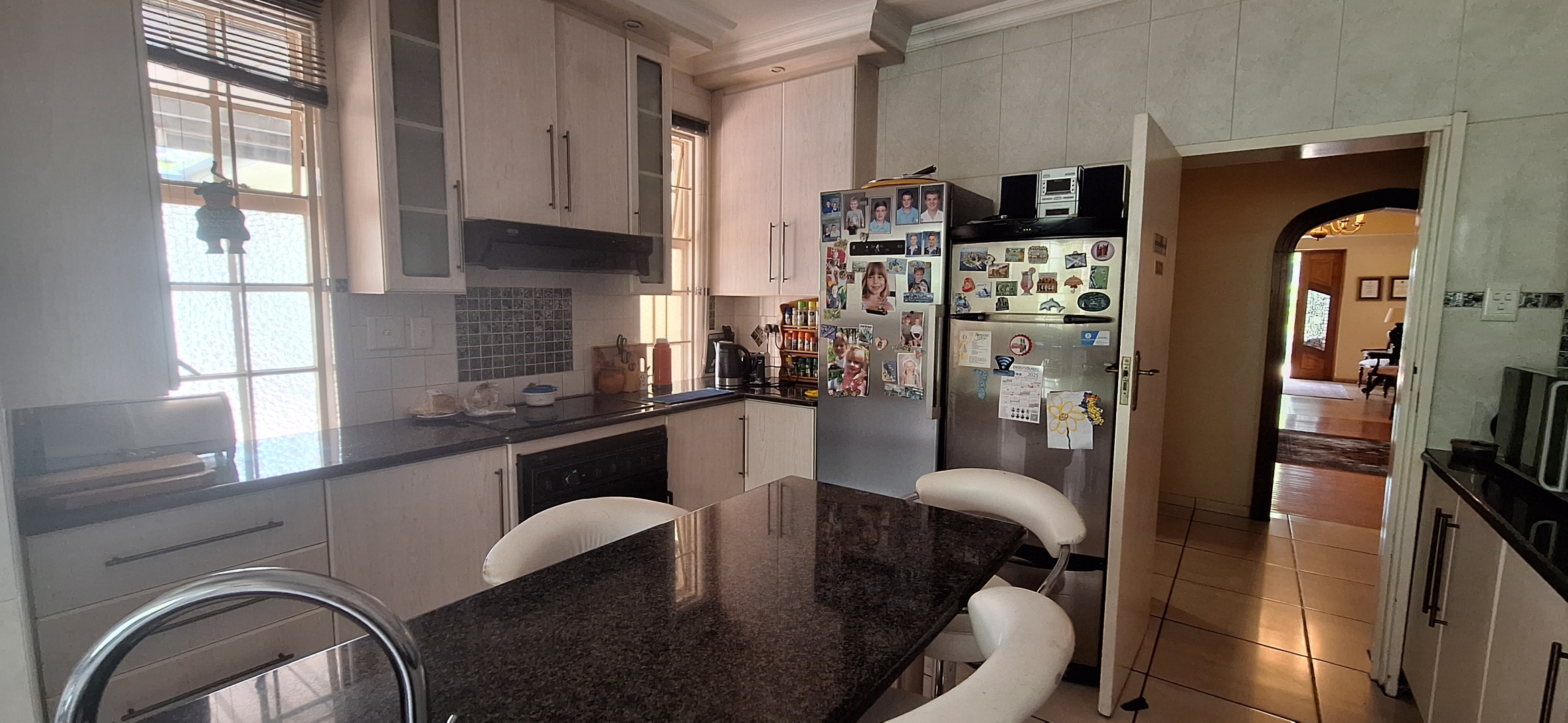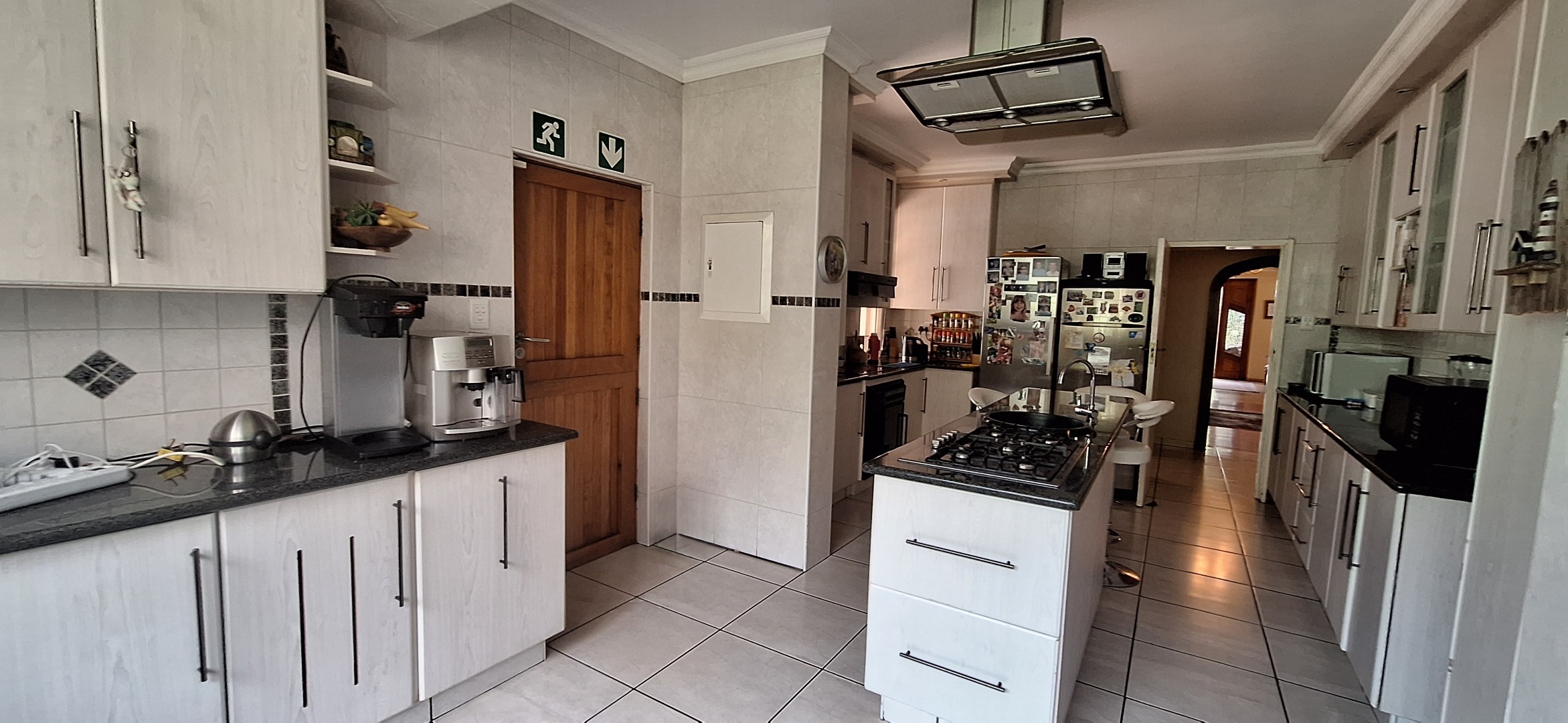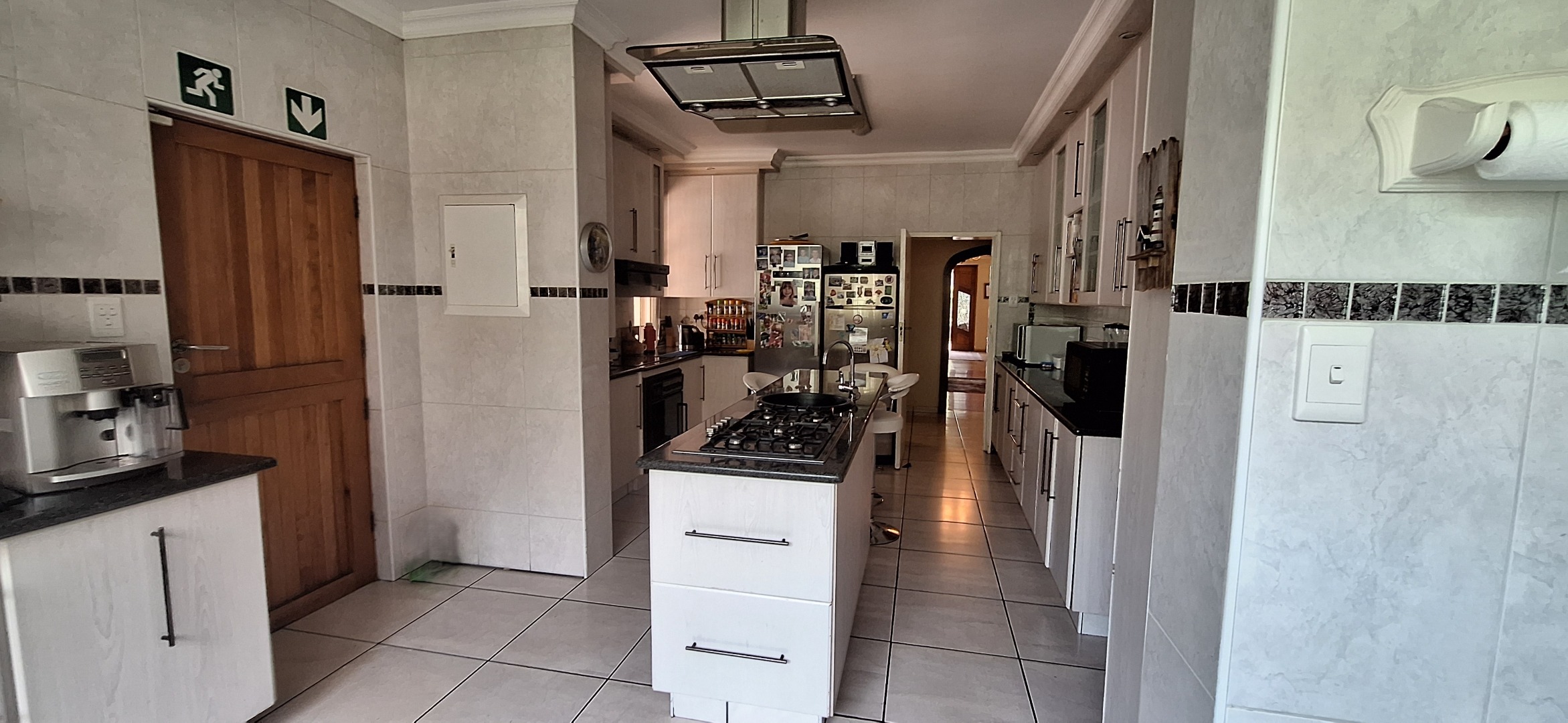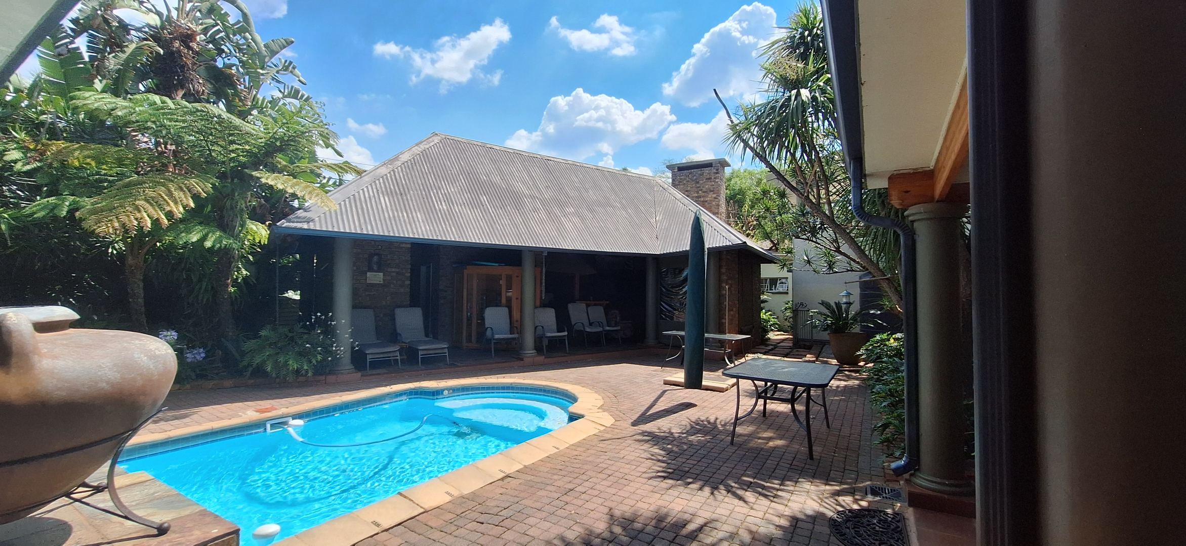 The generous 1317 sqm erf unfolds into a private oasis, featuring a sparkling swimming pool, a charming lapa, and a built-in braai for alfresco gatherings. Lush gardens, sustained by an irrigation system, create a serene backdrop, while a spacious patio and multiple balconies invite tranquil contemplation. Practical amenities include three garages, nine parking bays, staff quarters, outside toilets, and a dedicated laundry. Enhanced security is provided by electric fencing, an access gate, and an intercom system, while modern conveniences include fibre connectivity, a solar geyser, and water tank, ensuring sustainable and efficient living.