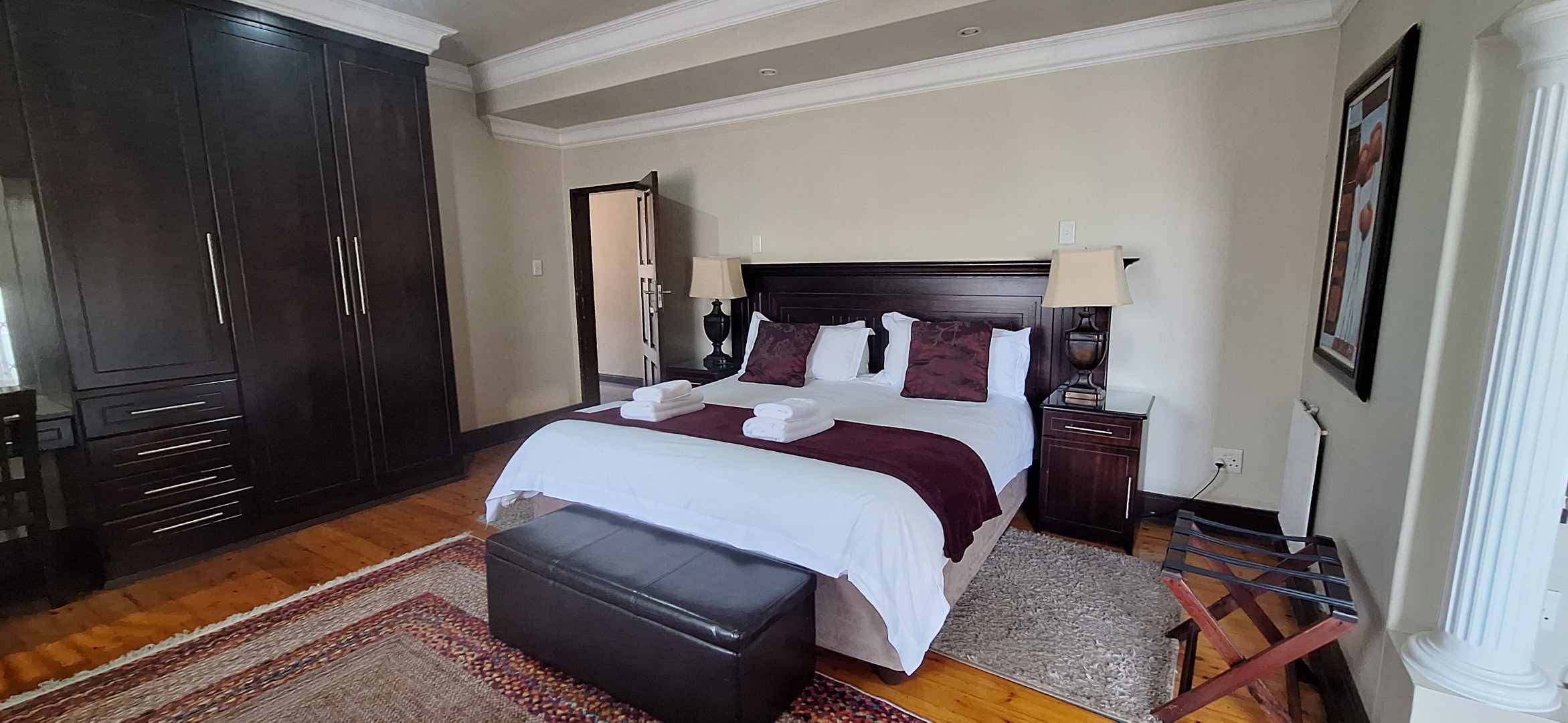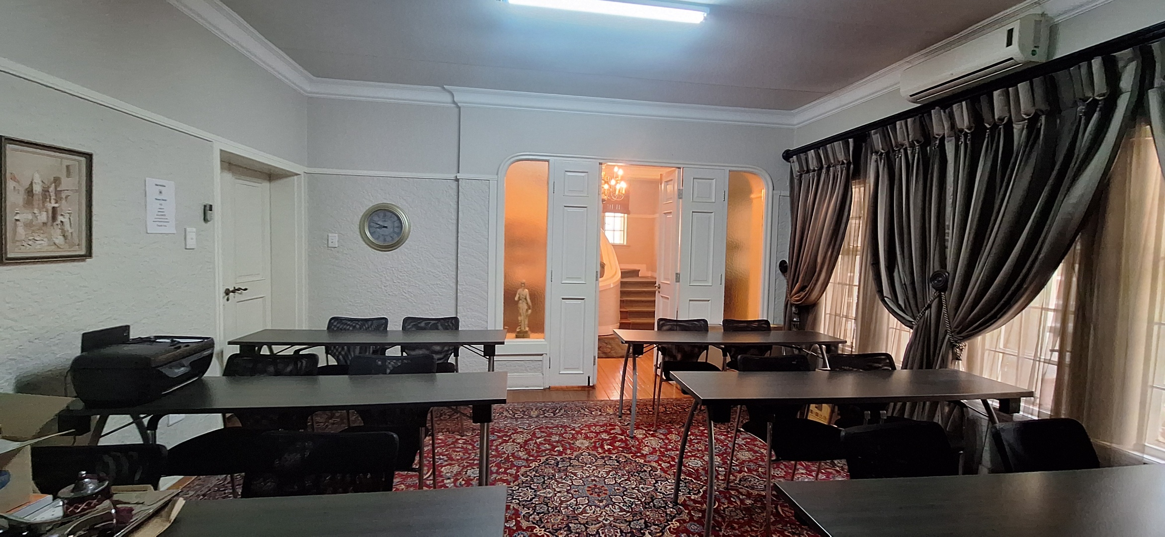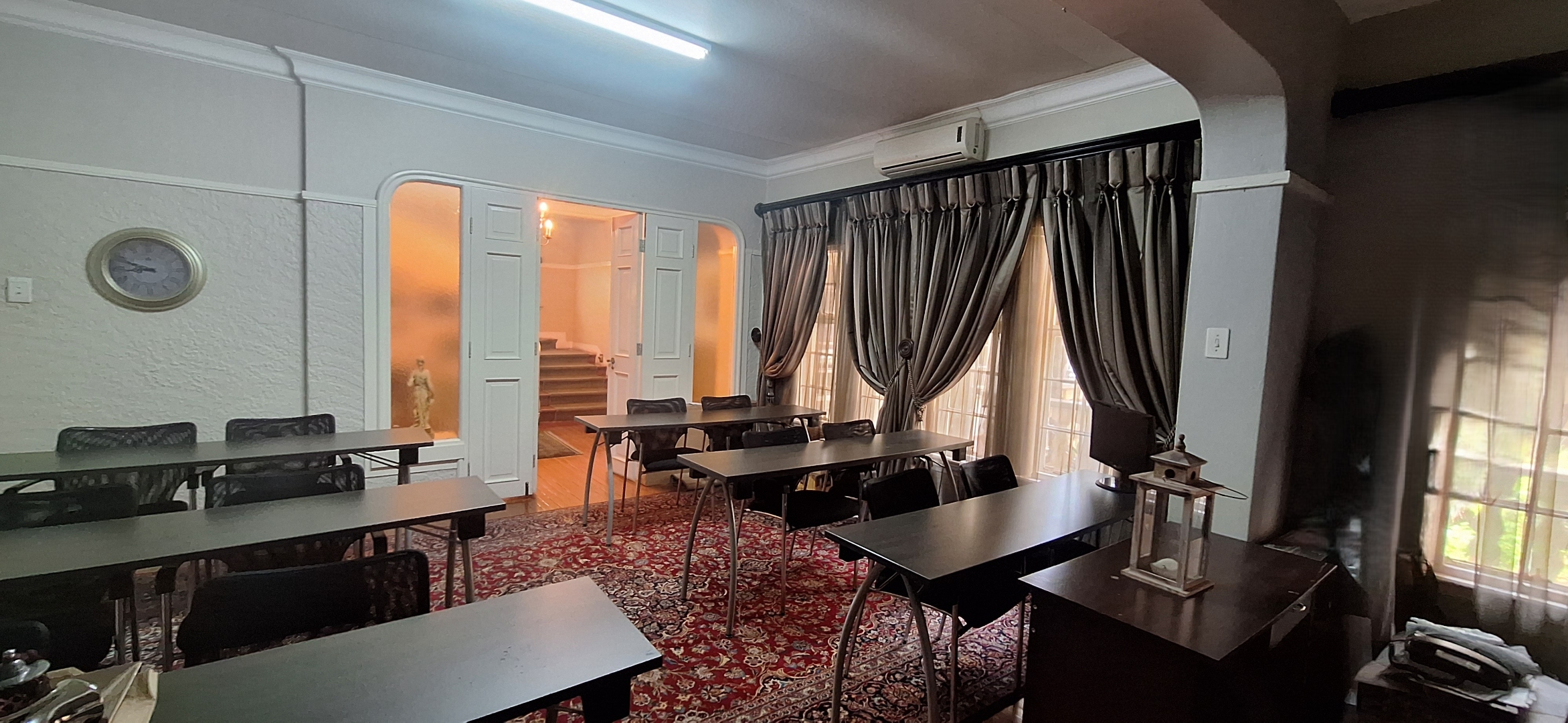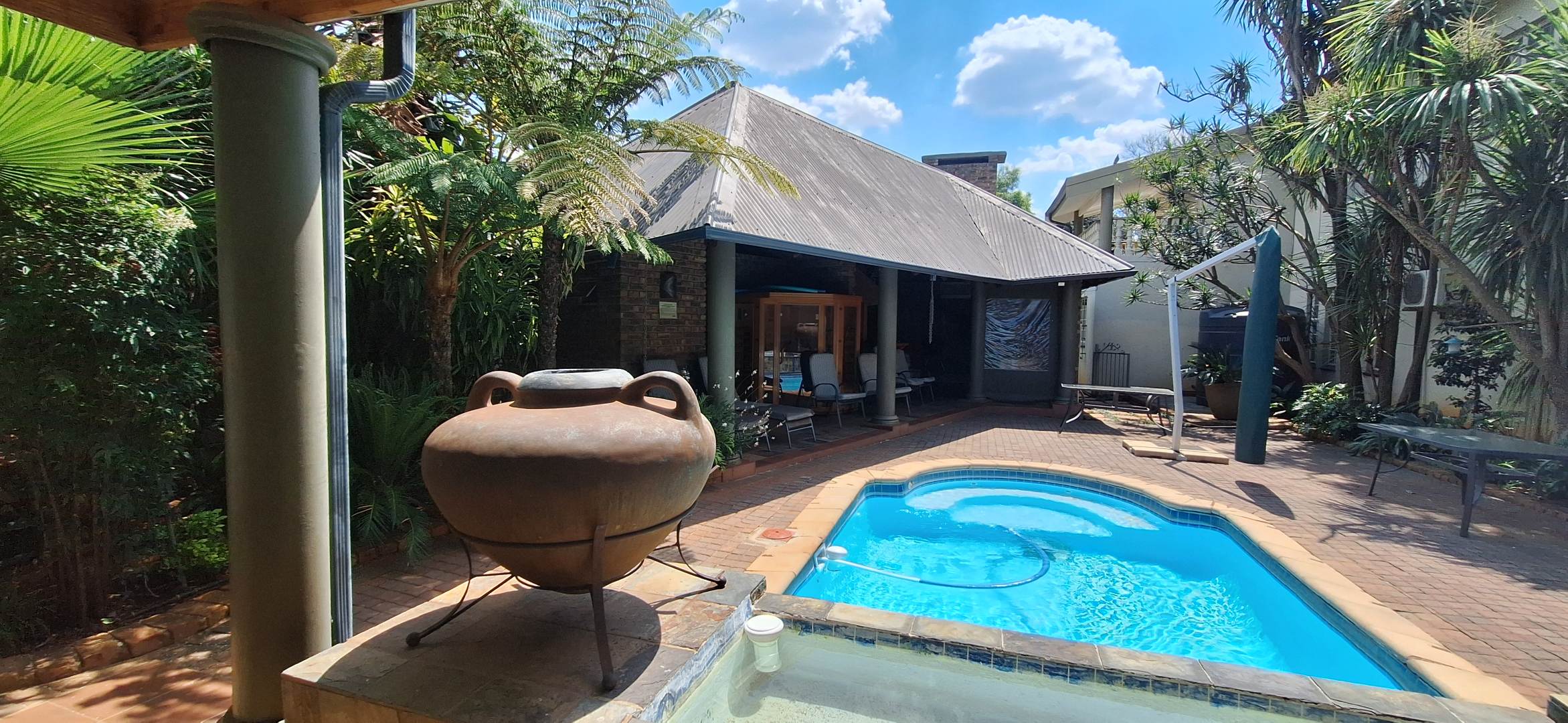 The generous 1317 sqm erf unfolds into a private oasis, featuring a sparkling swimming pool, a charming lapa, and a built-in braai for alfresco gatherings. Lush gardens, sustained by an irrigation system, create a serene backdrop, while a spacious patio and multiple balconies invite tranquil contemplation. Practical amenities include three garages, nine parking bays, staff quarters, outside toilets, and a dedicated laundry. Enhanced security is provided by electric fencing, an access gate, and an intercom system, while modern conveniences include fibre connectivity, a solar geyser, and water tank, ensuring sustainable and efficient living.