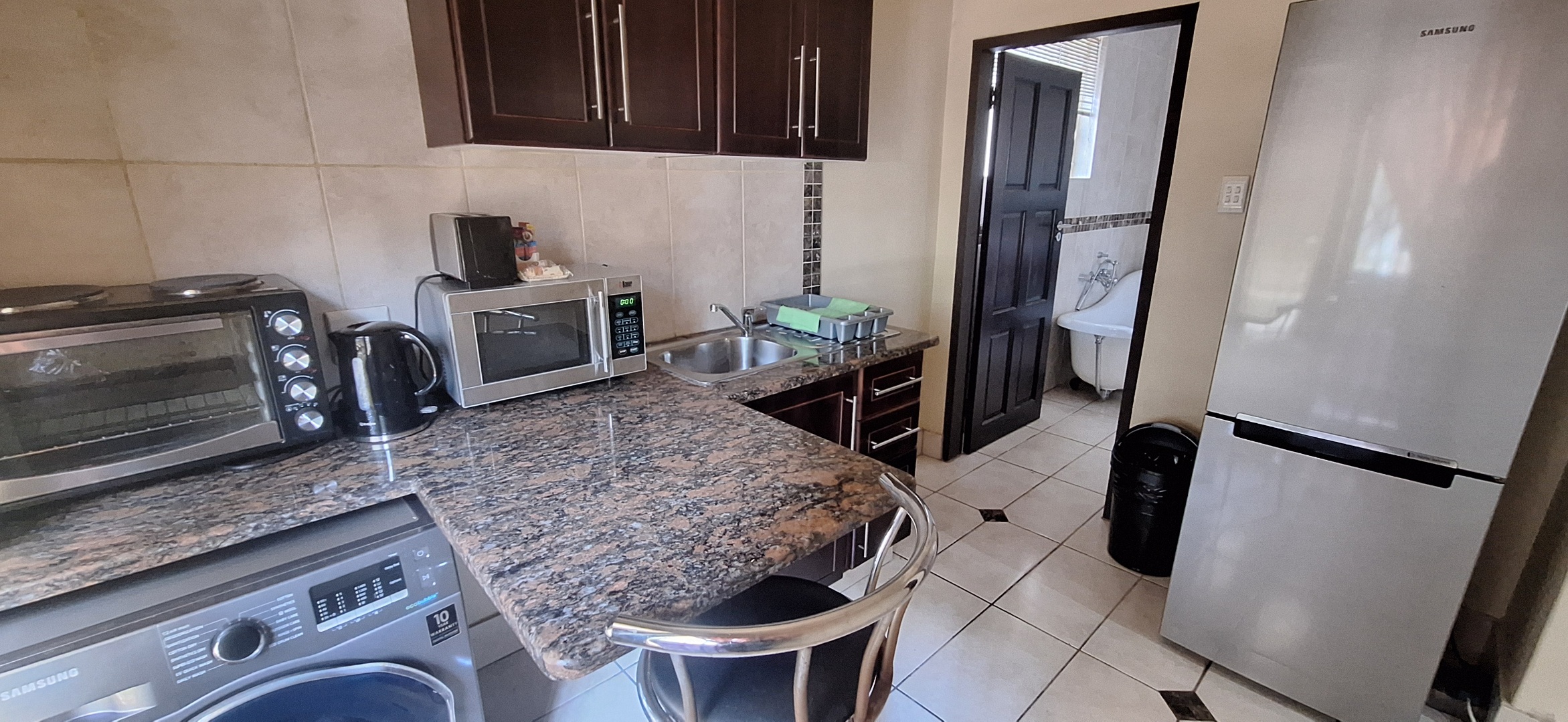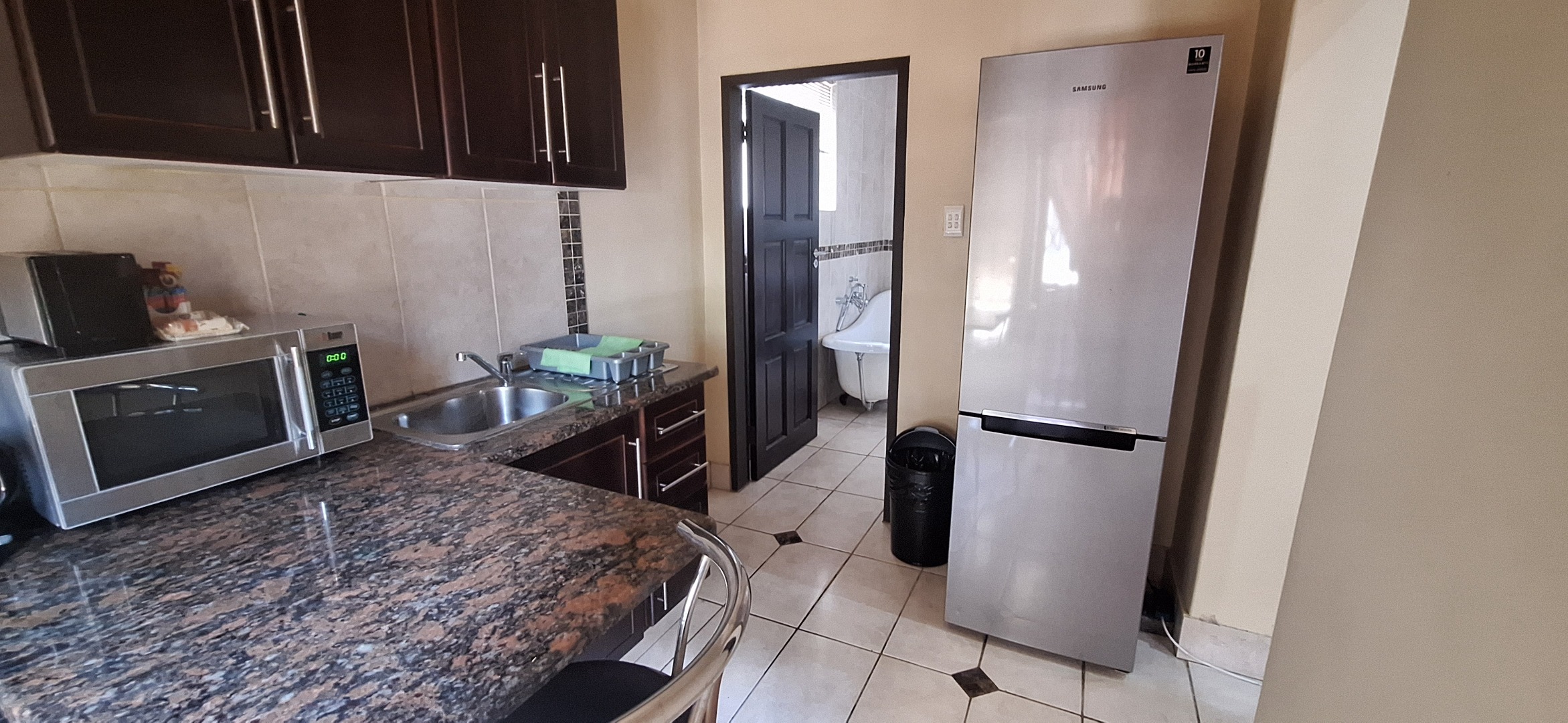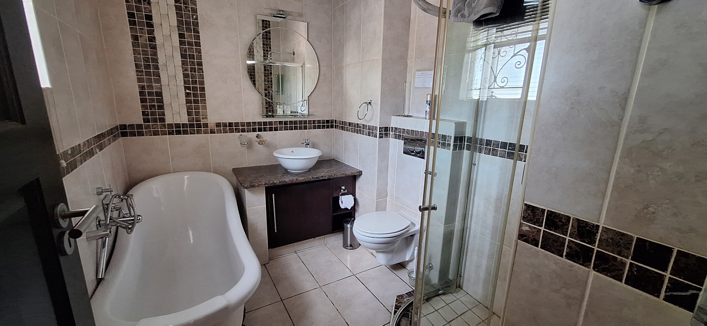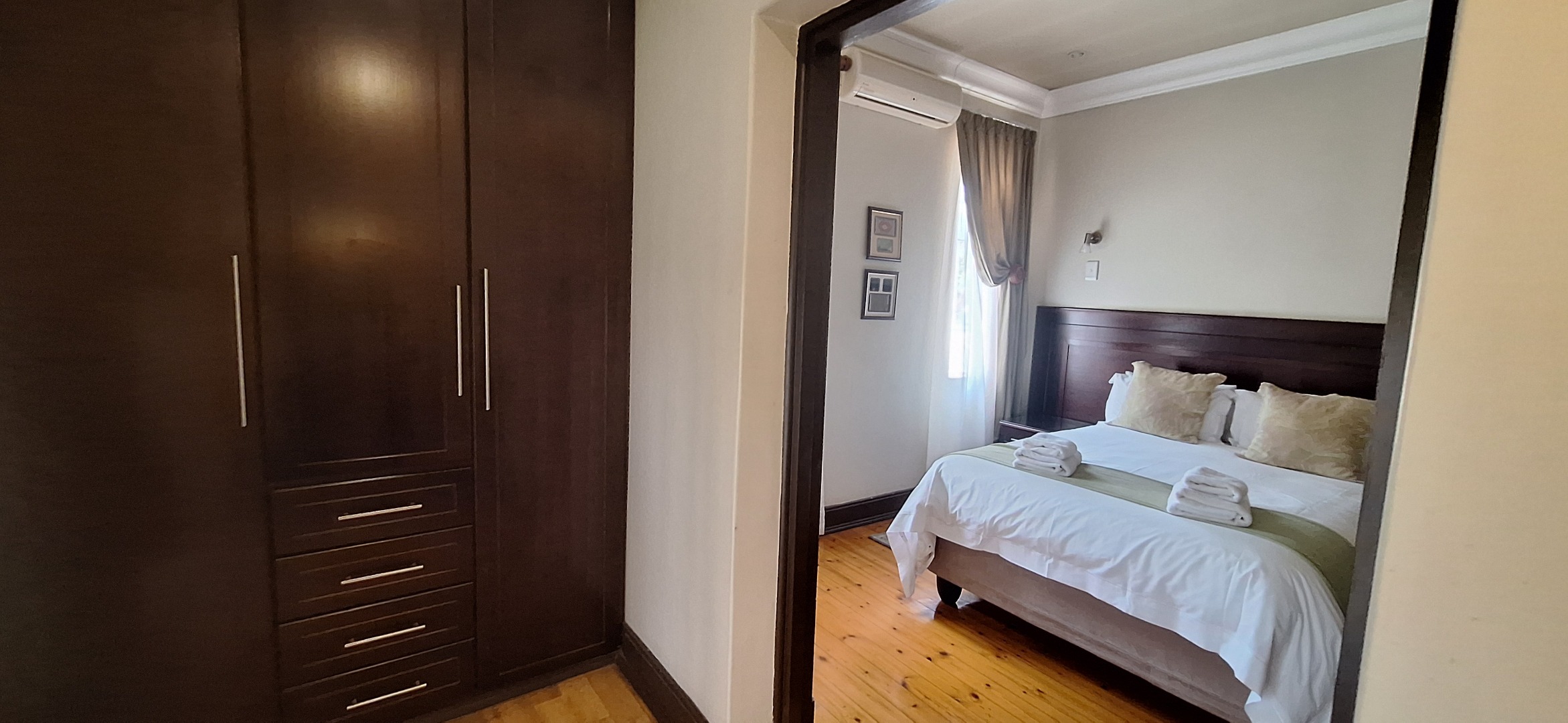 The generous 1317 sqm erf unfolds into a private oasis, featuring a sparkling swimming pool, a charming lapa, and a built-in braai for alfresco gatherings. Lush gardens, sustained by an irrigation system, create a serene backdrop, while a spacious patio and multiple balconies invite tranquil contemplation. Practical amenities include three garages, nine parking bays, staff quarters, outside toilets, and a dedicated laundry. Enhanced security is provided by electric fencing, an access gate, and an intercom system, while modern conveniences include fibre connectivity, a solar geyser, and water tank, ensuring sustainable and efficient living.