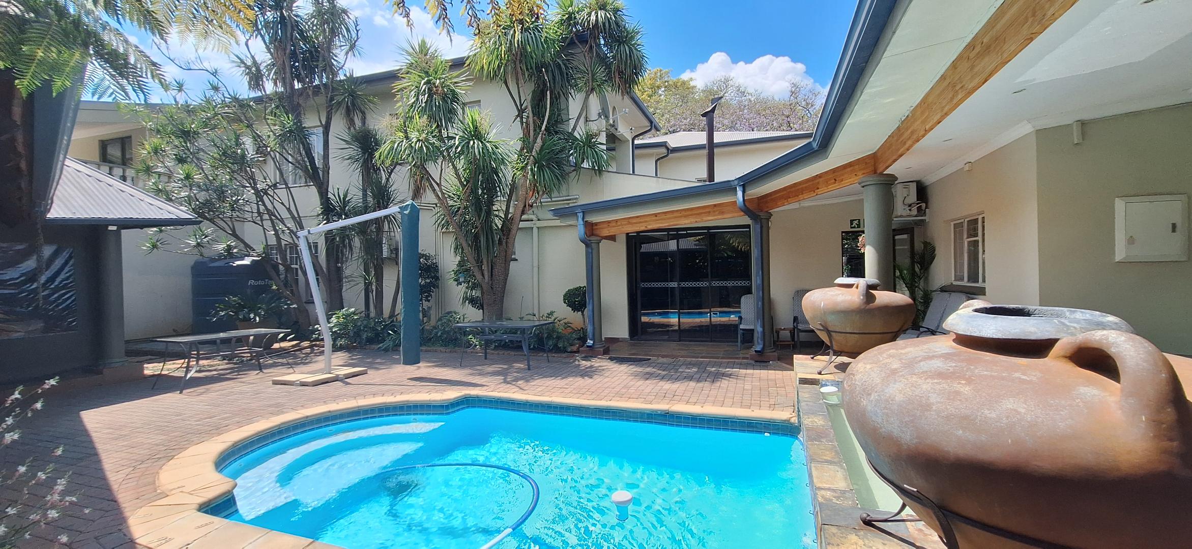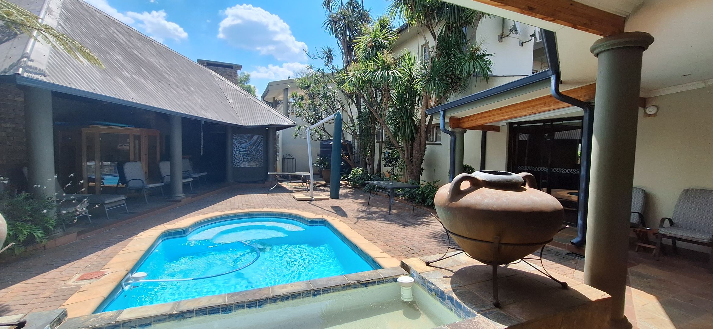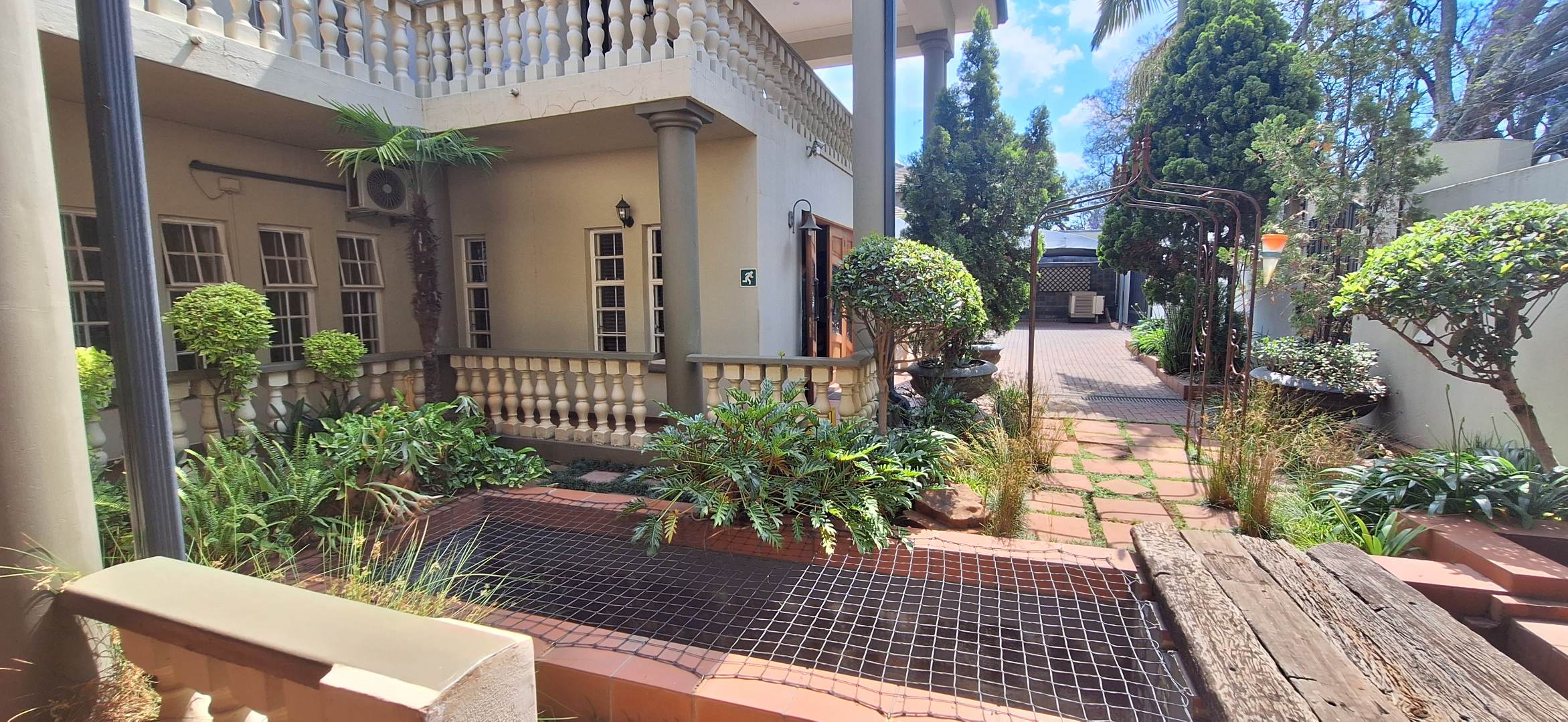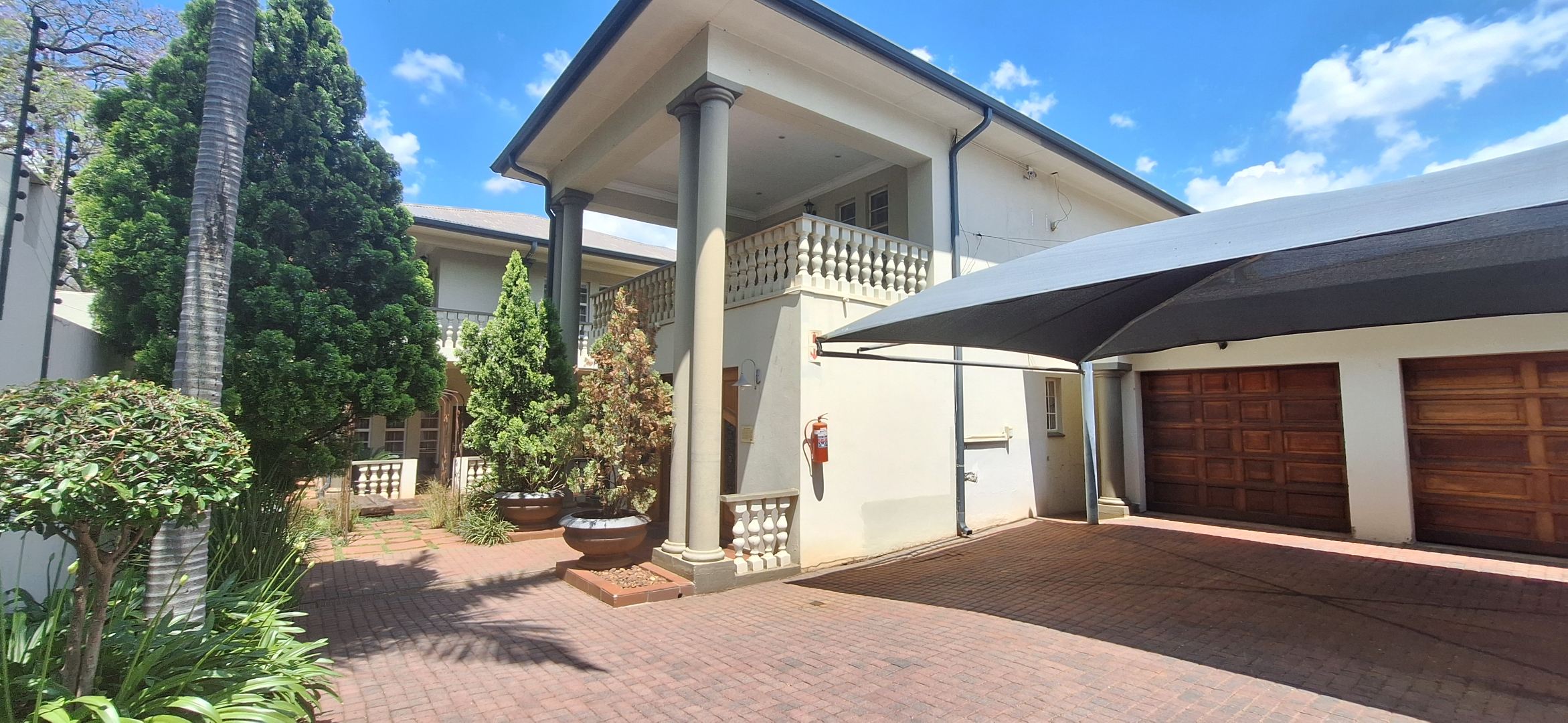 A majestic facade, adorned with classical columns and elegant balustrades, introduces this distinguished Colbyn residence, setting a tone of unparalleled grandeur. The Property is currently run as a Guest House. Mature jacaranda trees frame the secure perimeter, featuring robust electric fencing and an intercom-controlled access gate, ensuring utmost privacy and a commanding street presence. The meticulously paved driveway and lush, irrigated gardens enhance the property's exceptional kerb appeal, inviting discerning residents into a world of refined living.