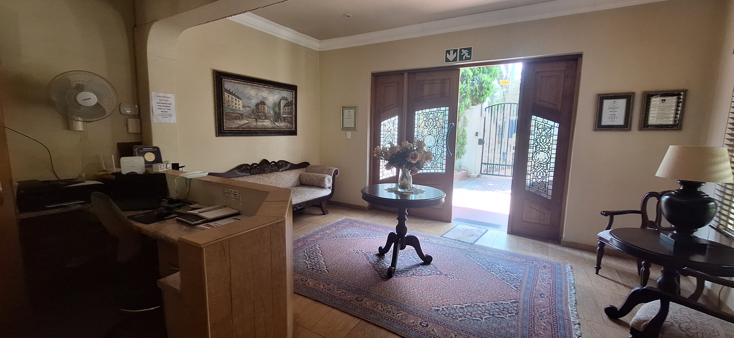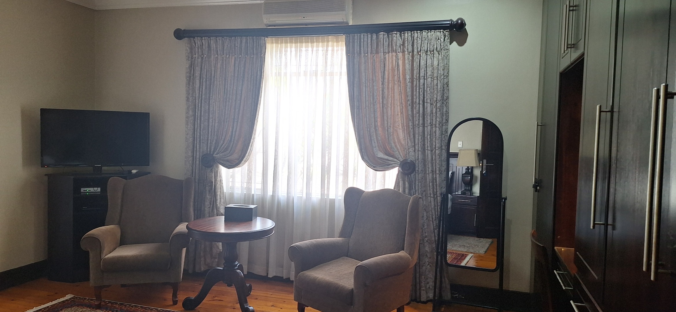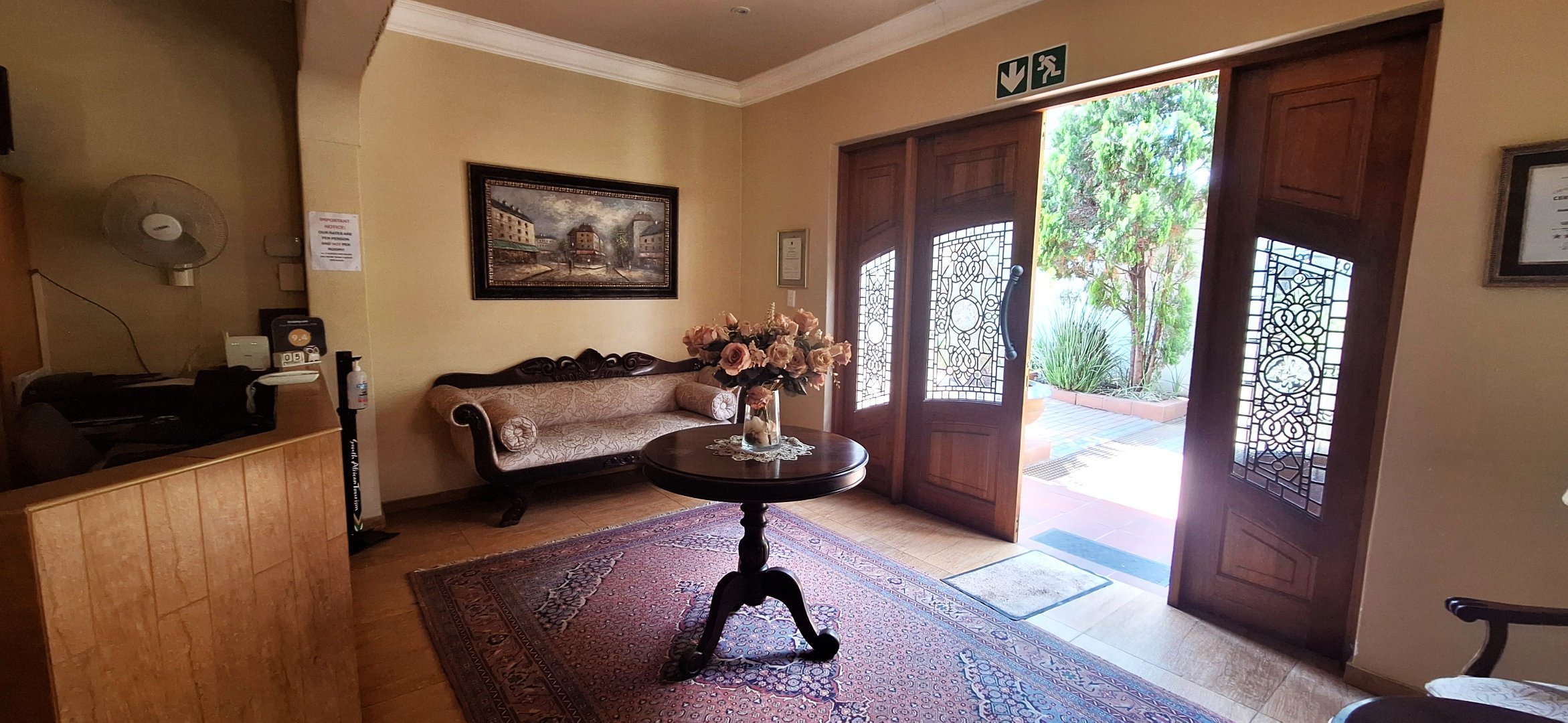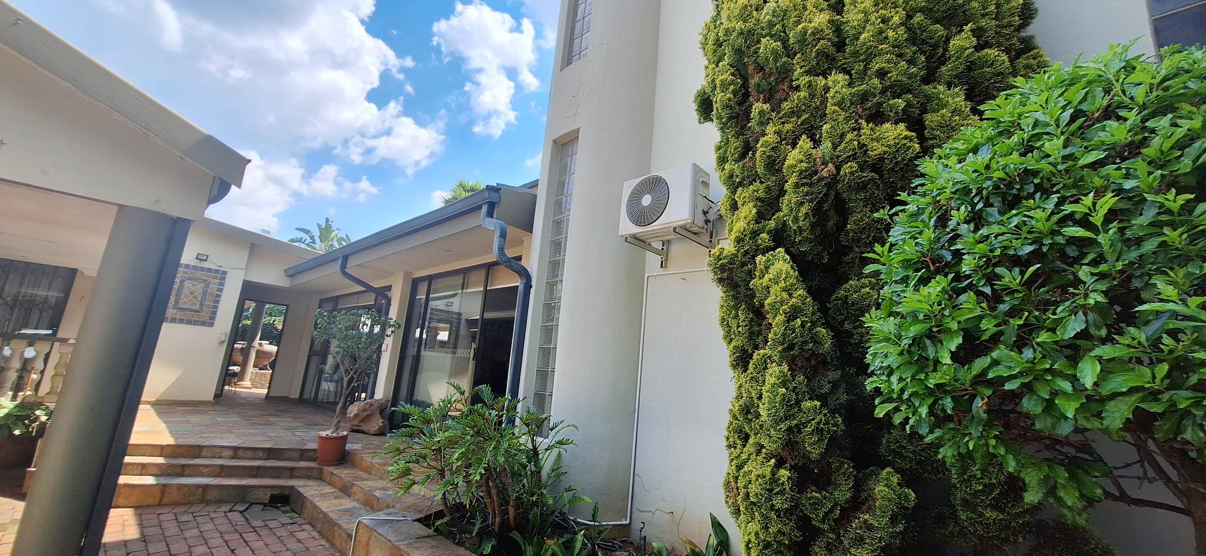 A majestic facade, adorned with classical columns and elegant balustrades, introduces this distinguished Colbyn residence, setting a tone of unparalleled grandeur. The Property is currently run as a Guest House. Mature jacaranda trees frame the secure perimeter, featuring robust electric fencing and an intercom-controlled access gate, ensuring utmost privacy and a commanding street presence. The meticulously paved driveway and lush, irrigated gardens enhance the property's exceptional kerb appeal, inviting discerning residents into a world of refined living.