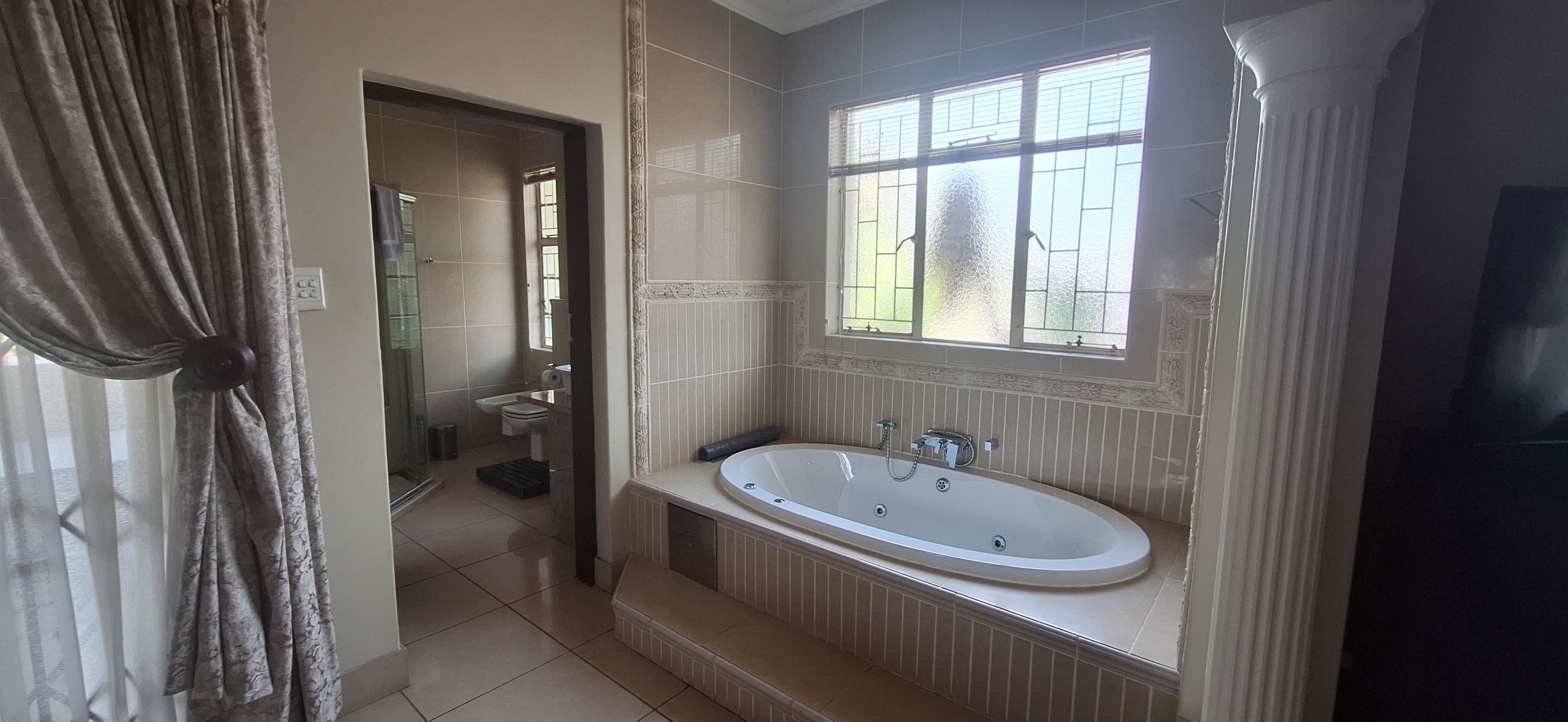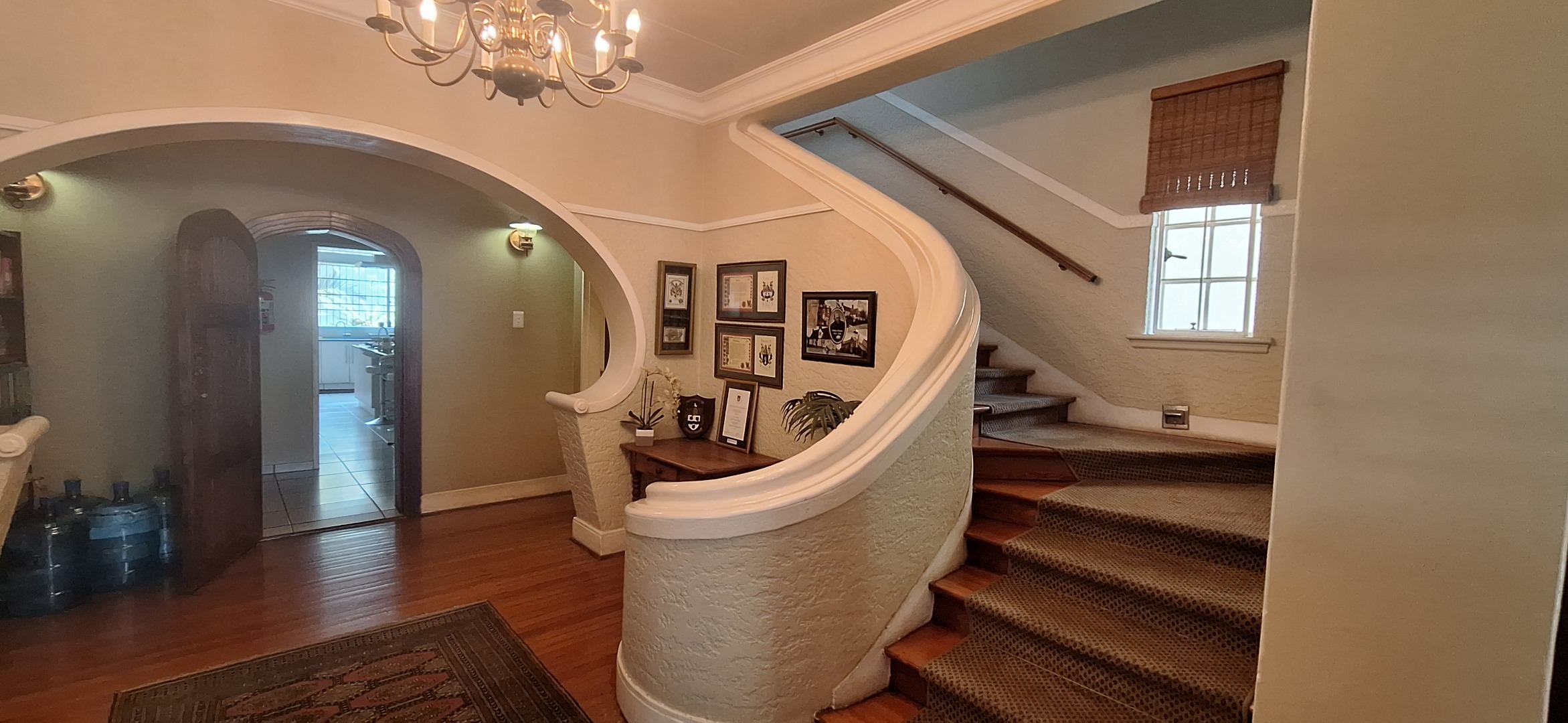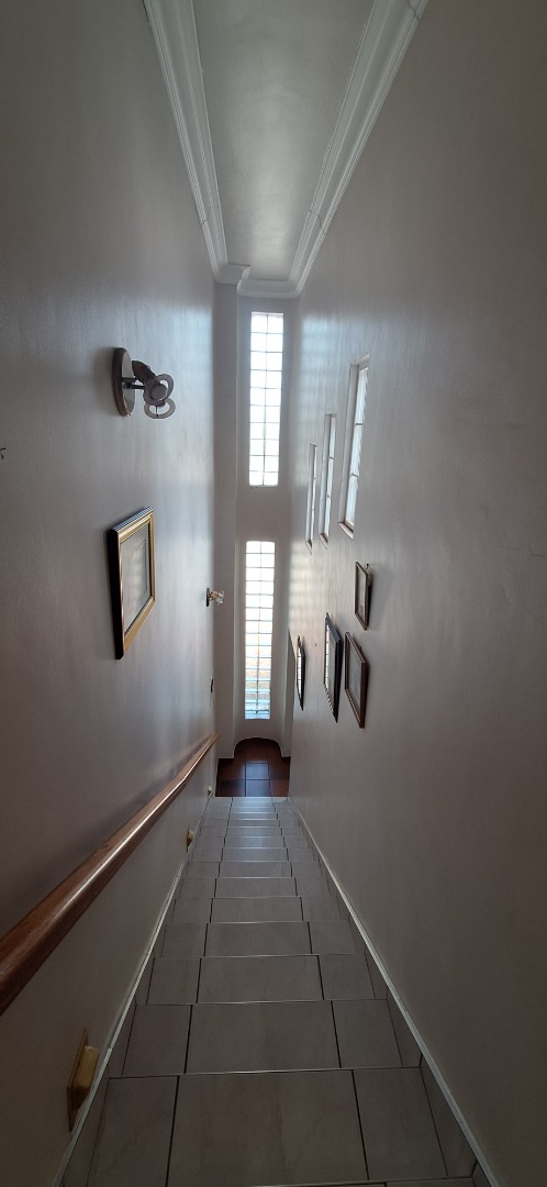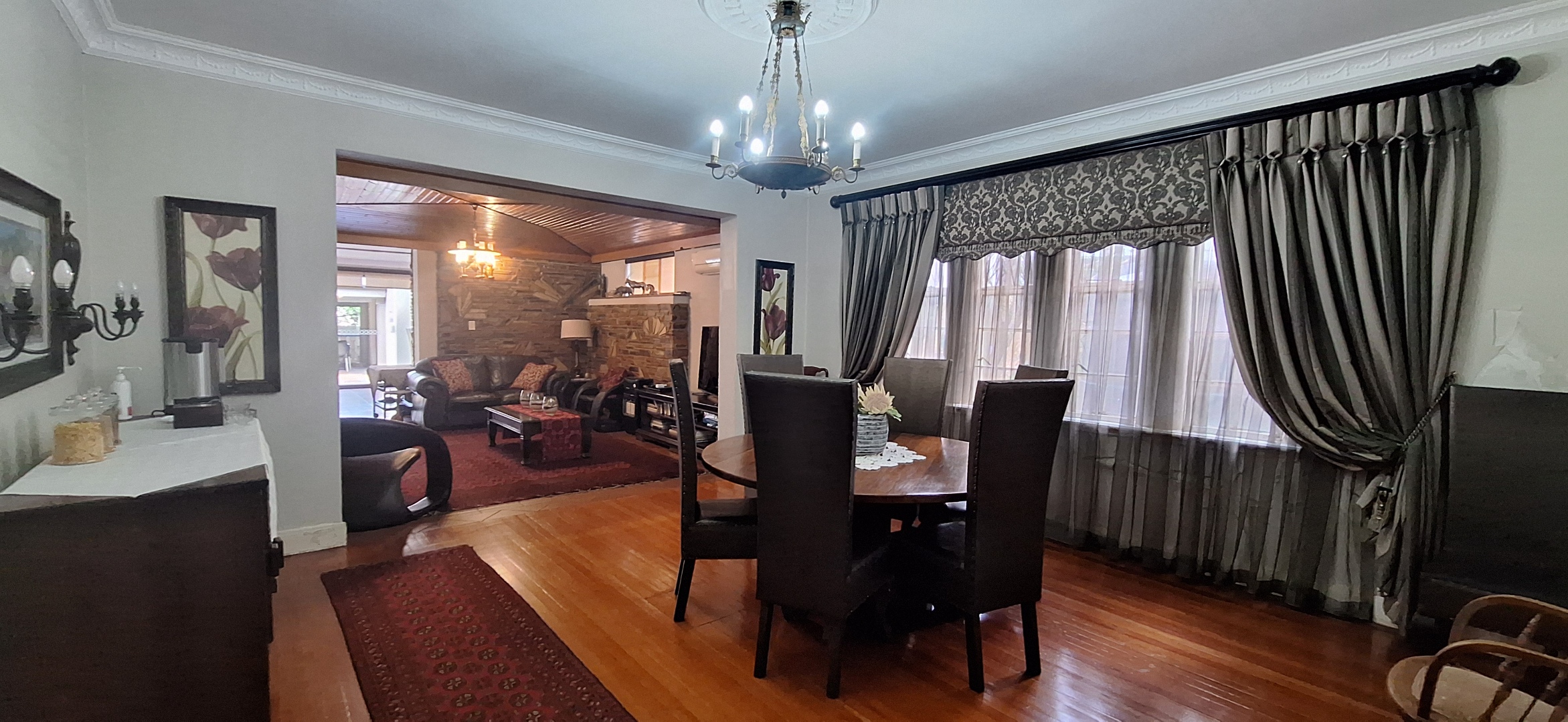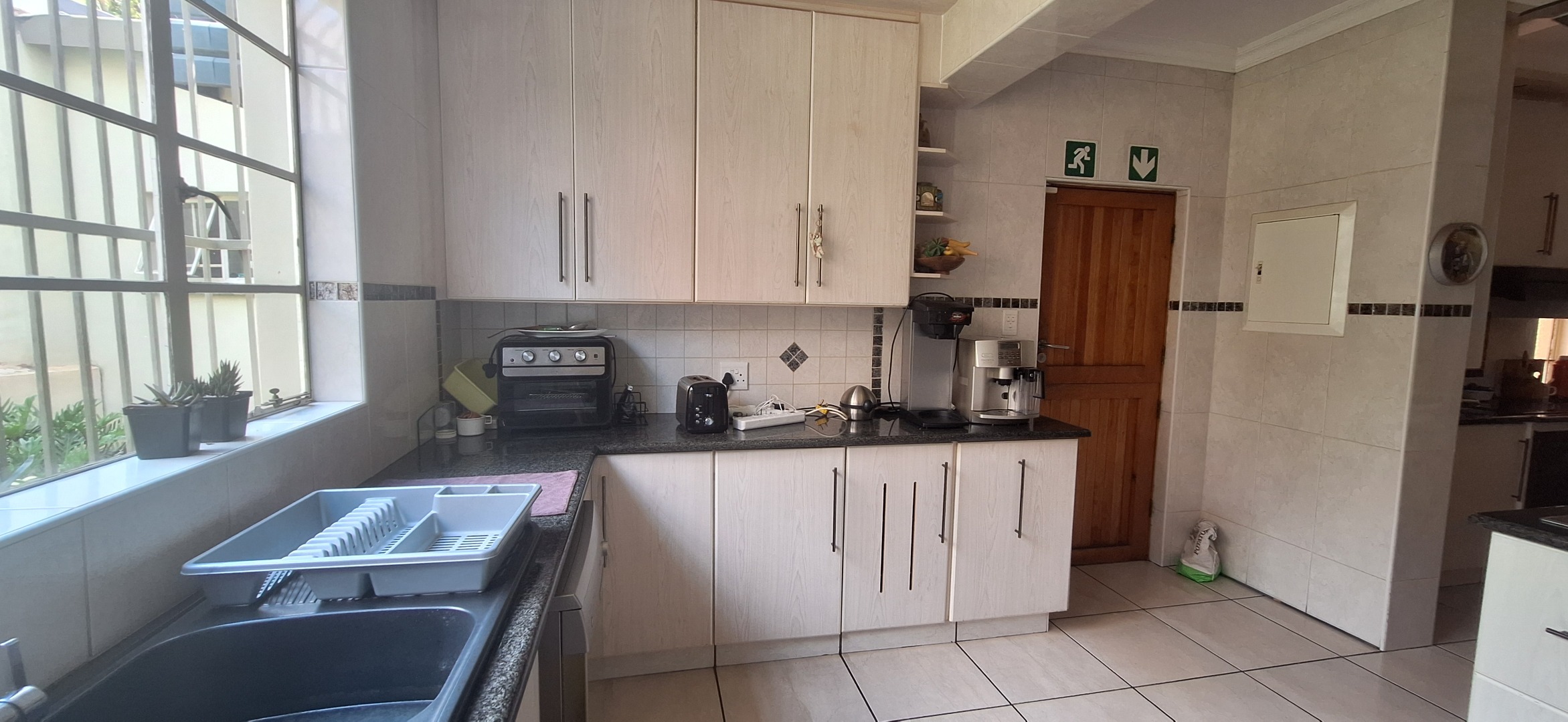 The generous 1317 sqm erf unfolds into a private oasis, featuring a sparkling swimming pool, a charming lapa, and a built-in braai for alfresco gatherings. Lush gardens, sustained by an irrigation system, create a serene backdrop, while a spacious patio and multiple balconies invite tranquil contemplation. Practical amenities include three garages, nine parking bays, staff quarters, outside toilets, and a dedicated laundry. Enhanced security is provided by electric fencing, an access gate, and an intercom system, while modern conveniences include fibre connectivity, a solar geyser, and water tank, ensuring sustainable and efficient living.