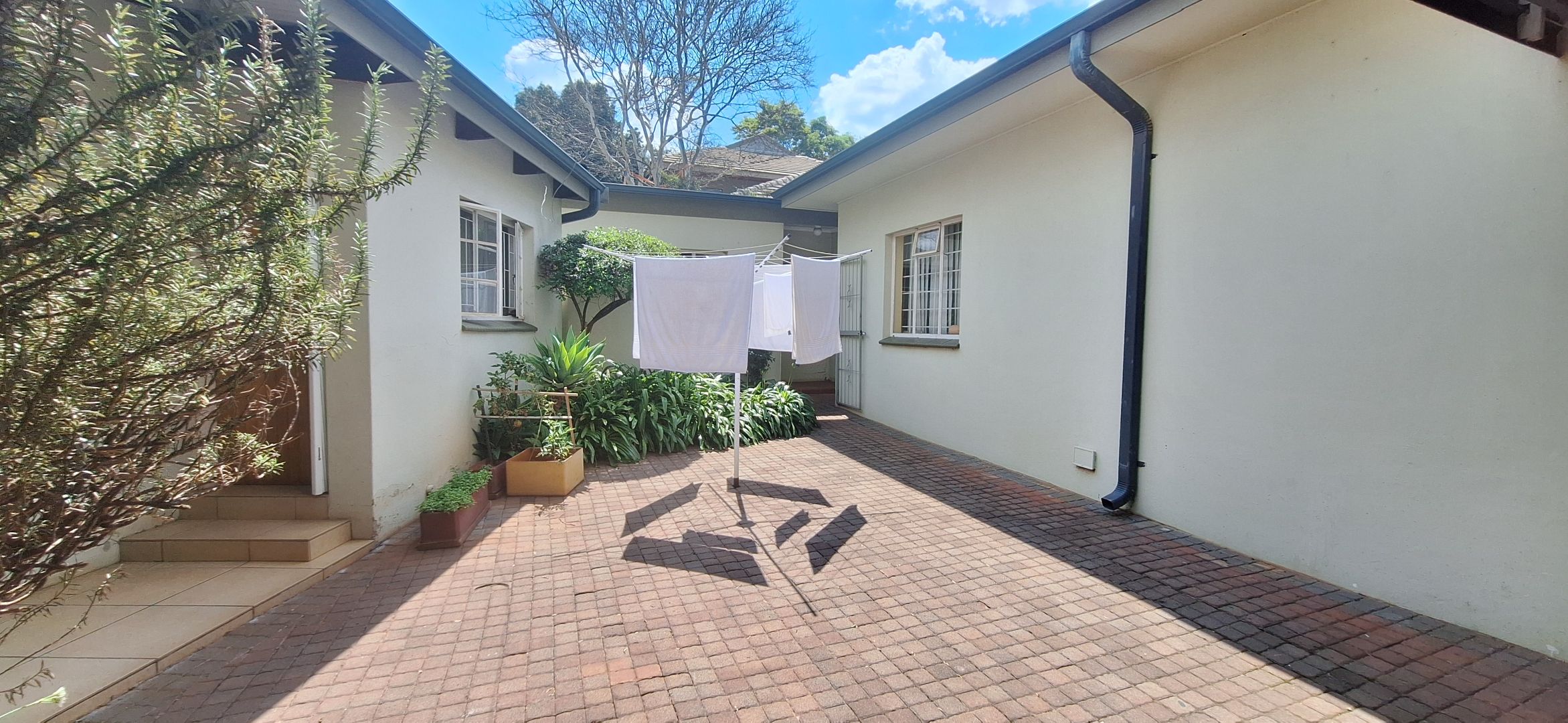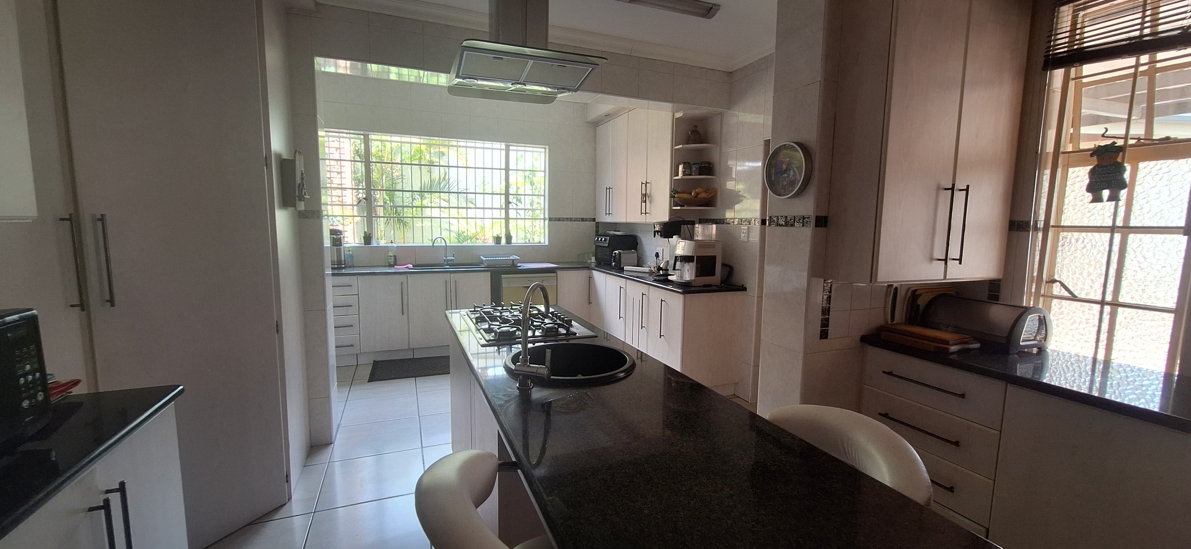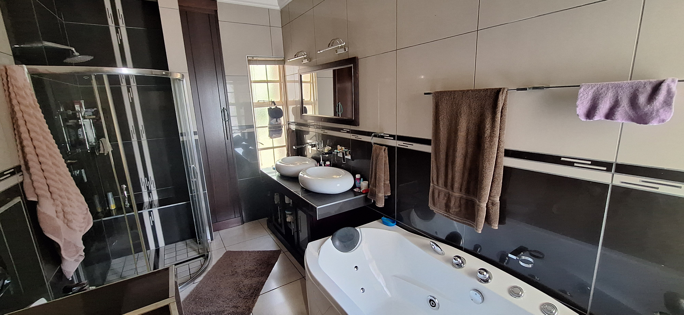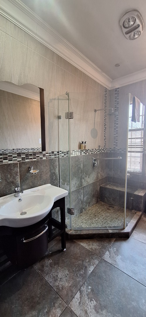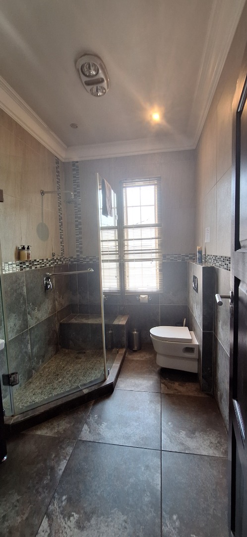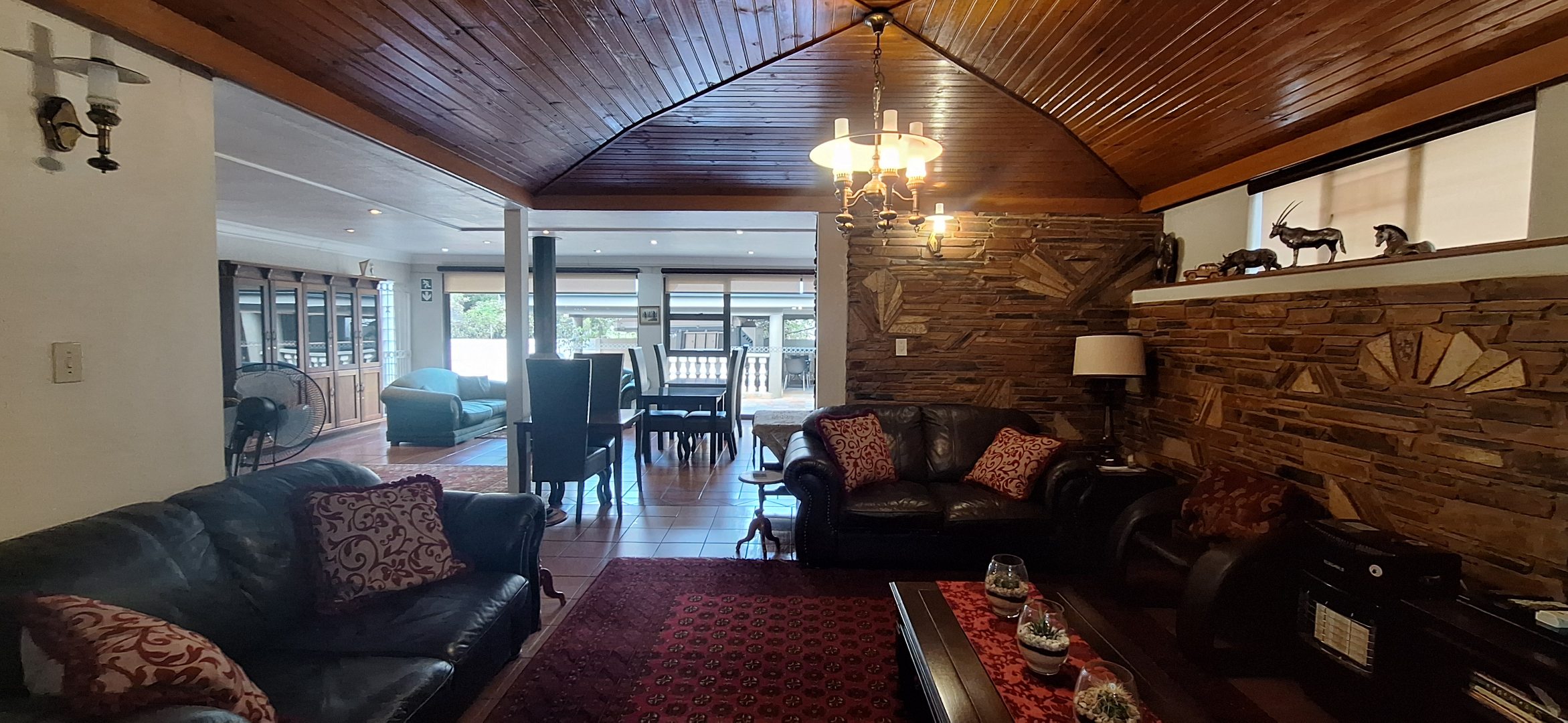The generous 1317 sqm erf unfolds into a private oasis, featuring a sparkling swimming pool, a charming lapa, and a built-in braai for alfresco gatherings. Lush gardens, sustained by an irrigation system, create a serene backdrop, while a spacious patio and multiple balconies invite tranquil contemplation. Practical amenities include three garages, nine parking bays, staff quarters, outside toilets, and a dedicated laundry. Enhanced security is provided by electric fencing, an access gate, and an intercom system, while modern conveniences include fibre connectivity, a solar geyser, and water tank, ensuring sustainable and efficient living.