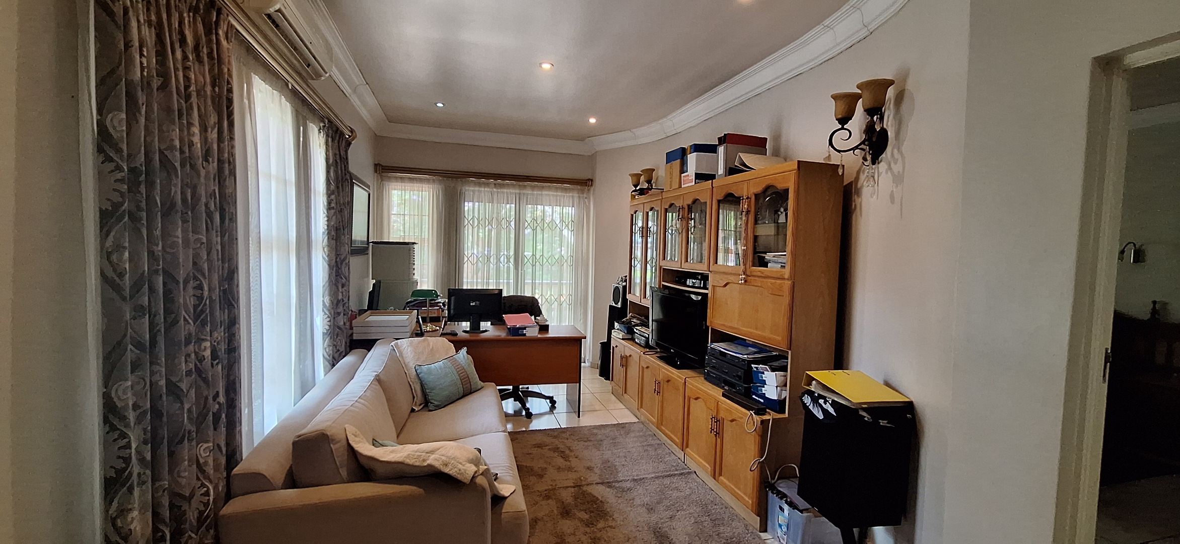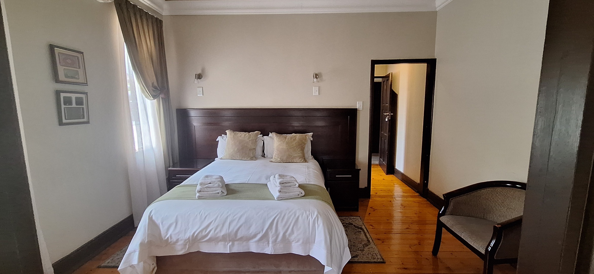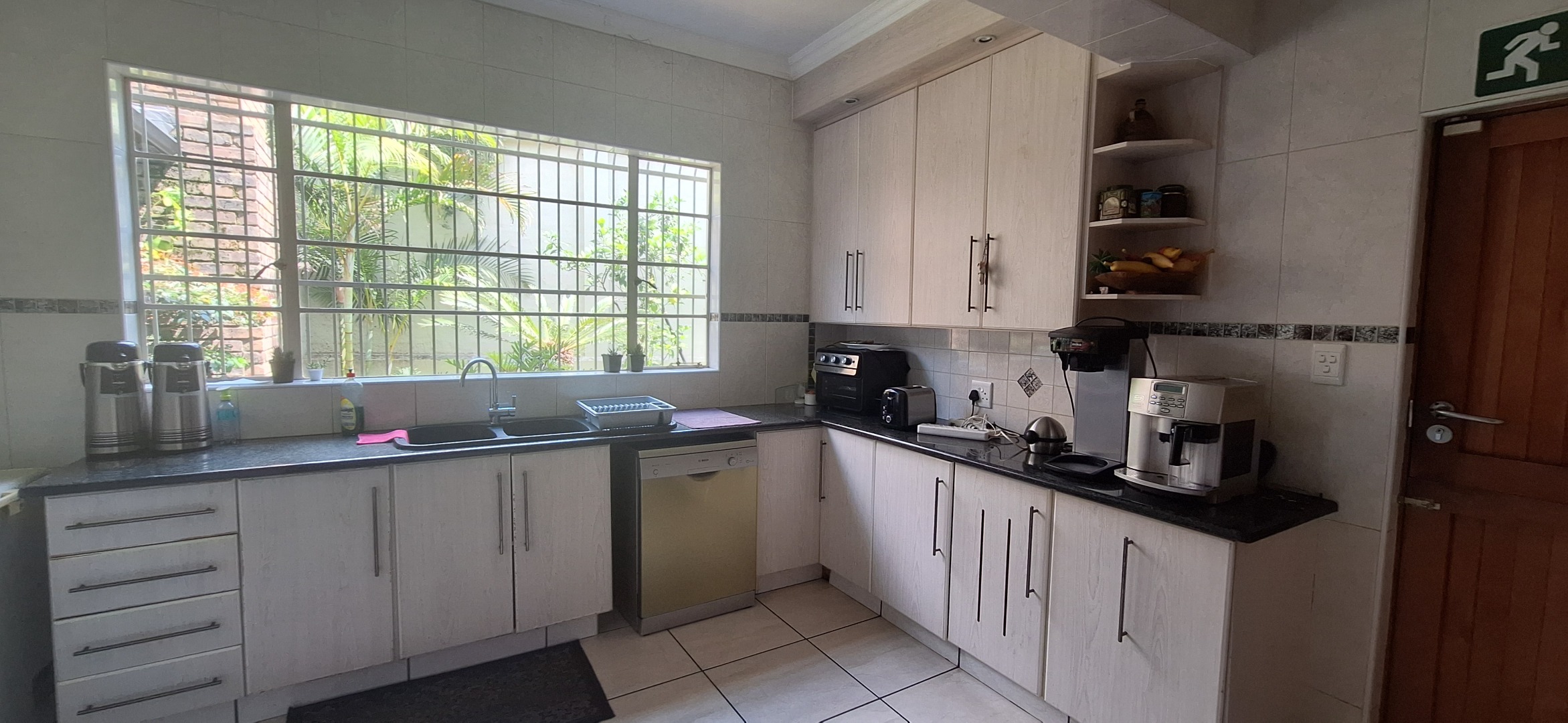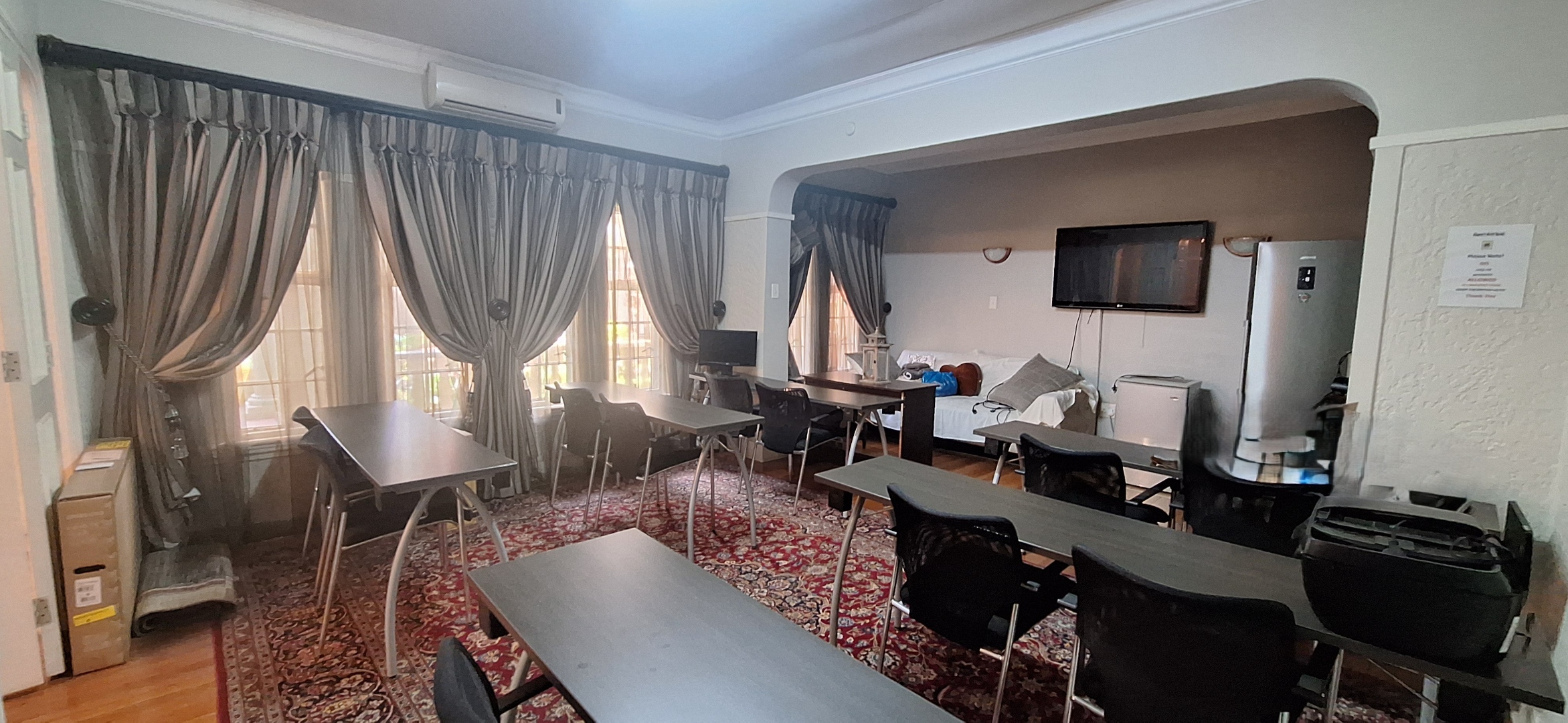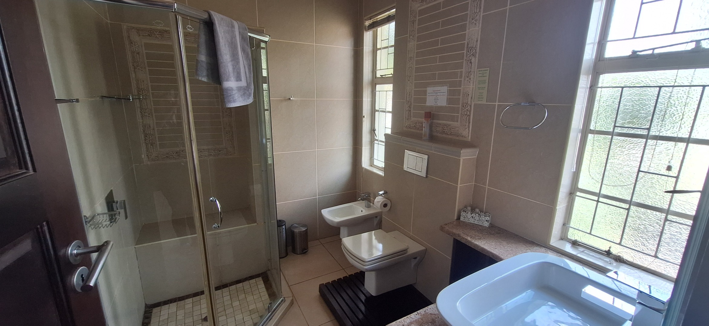 The generous 1317 sqm erf unfolds into a private oasis, featuring a sparkling swimming pool, a charming lapa, and a built-in braai for alfresco gatherings. Lush gardens, sustained by an irrigation system, create a serene backdrop, while a spacious patio and multiple balconies invite tranquil contemplation. Practical amenities include three garages, nine parking bays, staff quarters, outside toilets, and a dedicated laundry. Enhanced security is provided by electric fencing, an access gate, and an intercom system, while modern conveniences include fibre connectivity, a solar geyser, and water tank, ensuring sustainable and efficient living.