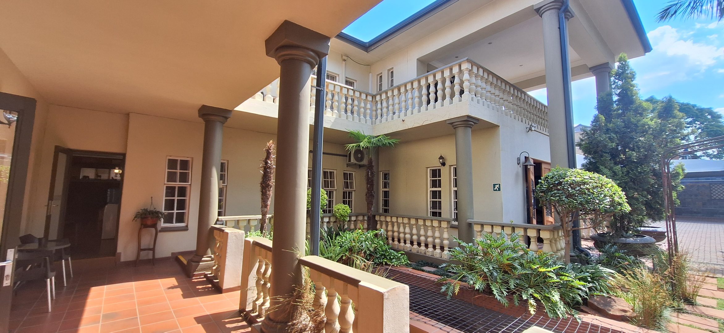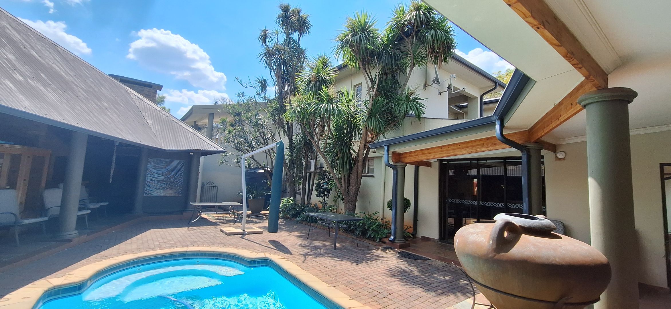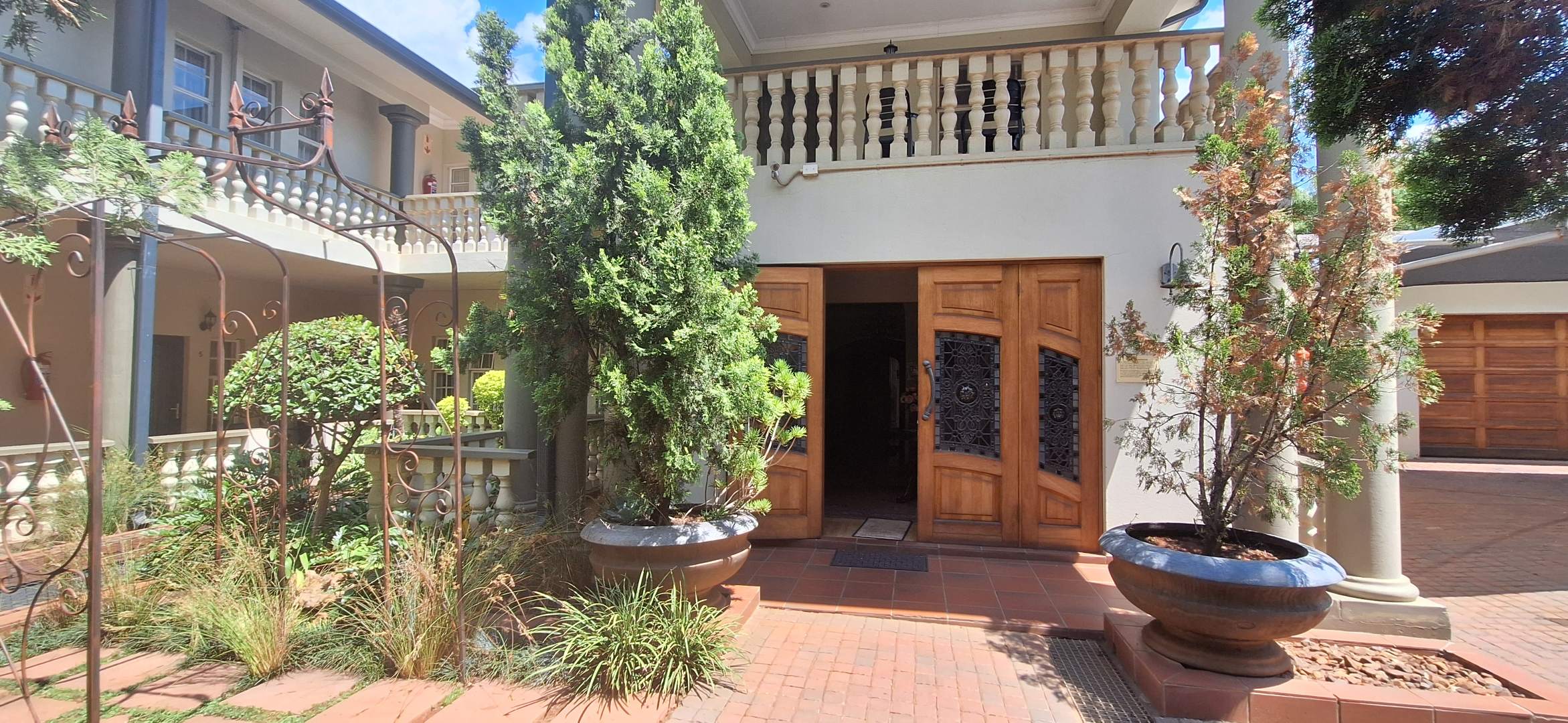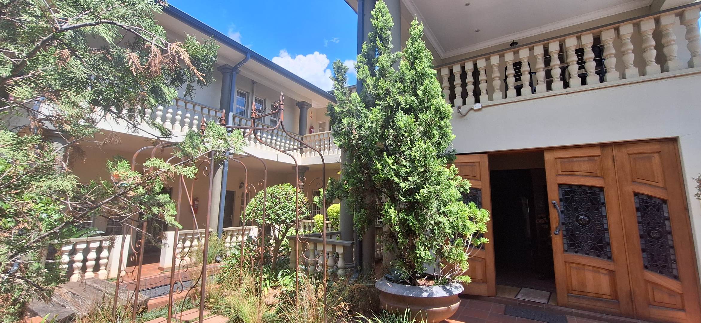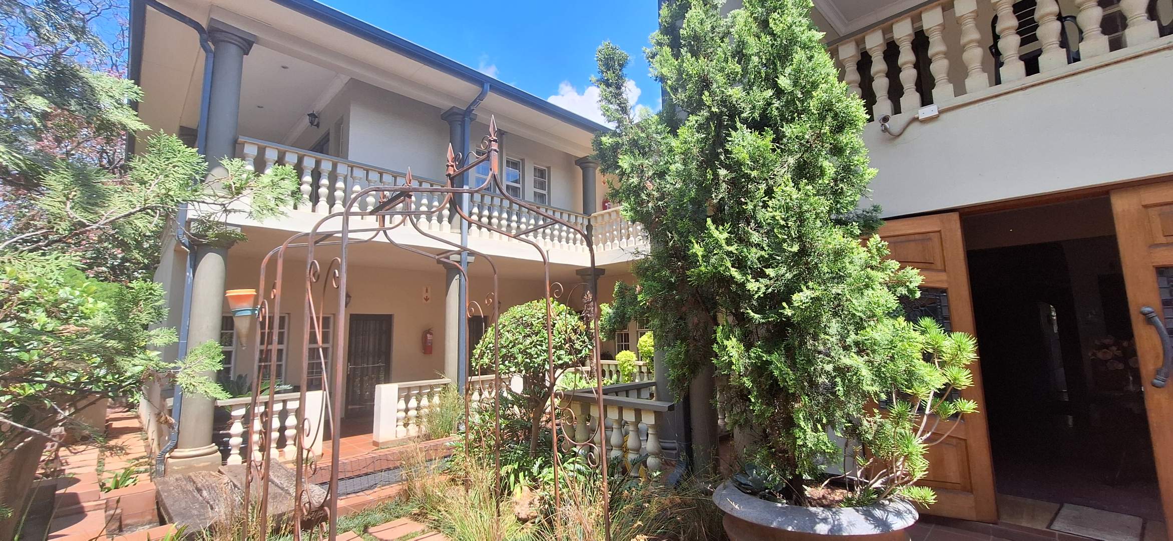 A majestic facade, adorned with classical columns and elegant balustrades, introduces this distinguished Colbyn residence, setting a tone of unparalleled grandeur. The Property is currently run as a Guest House. Mature jacaranda trees frame the secure perimeter, featuring robust electric fencing and an intercom-controlled access gate, ensuring utmost privacy and a commanding street presence. The meticulously paved driveway and lush, irrigated gardens enhance the property's exceptional kerb appeal, inviting discerning residents into a world of refined living.