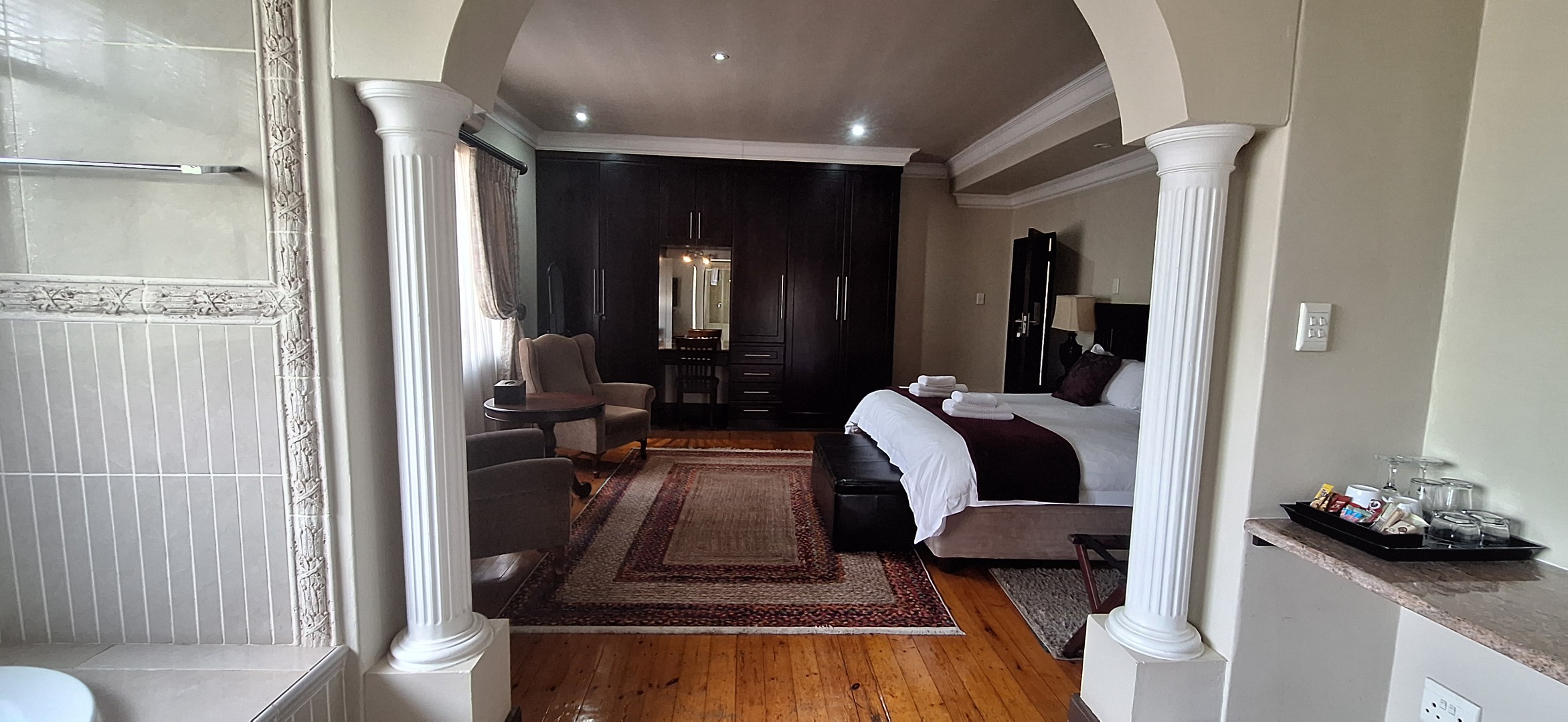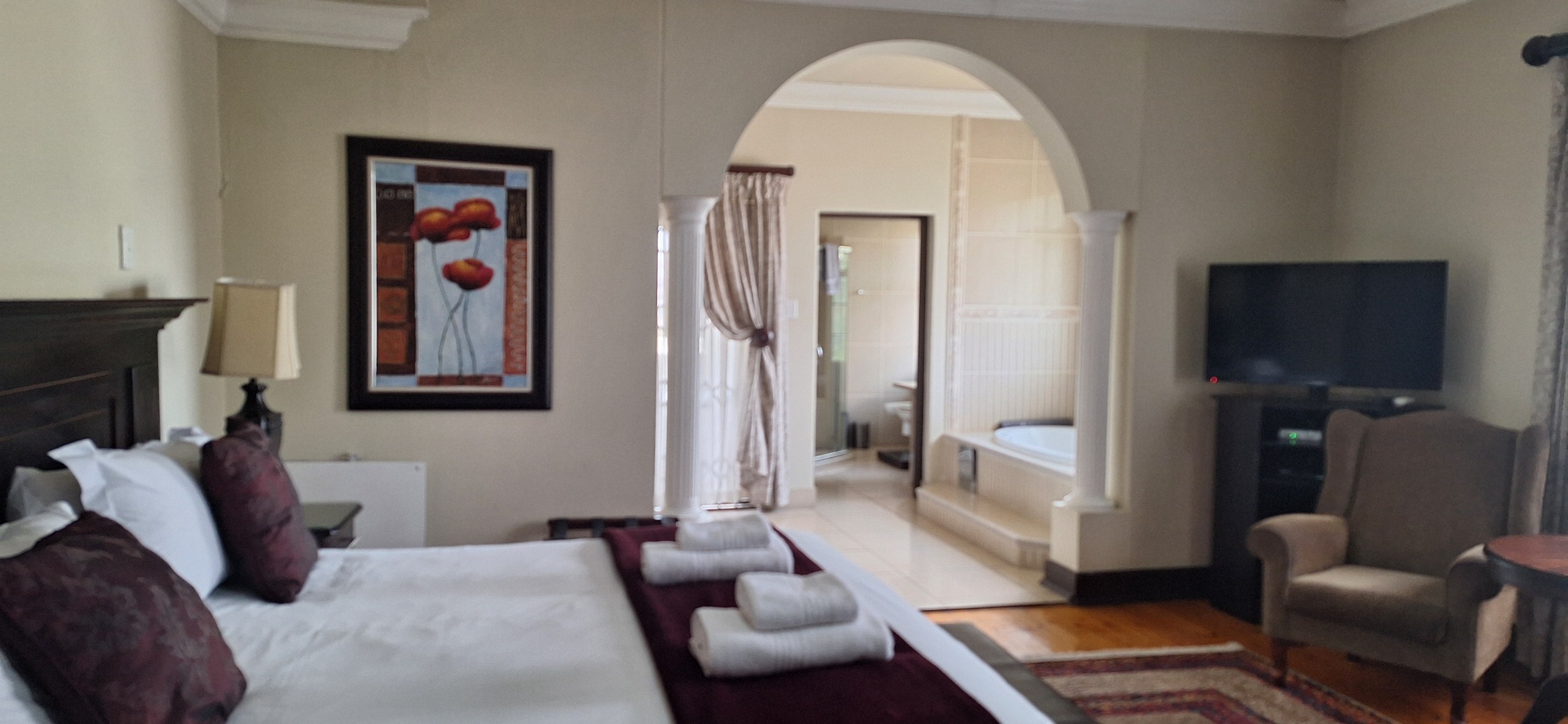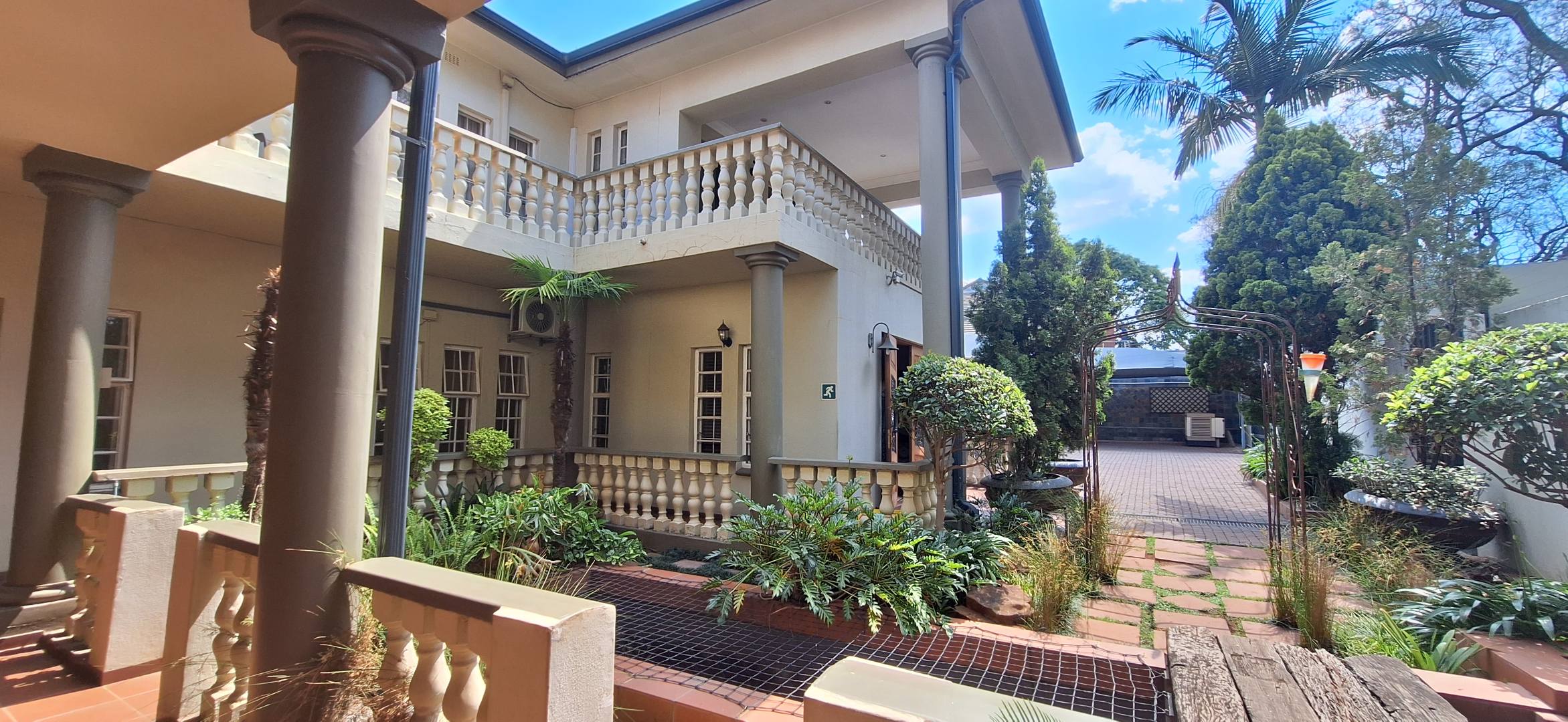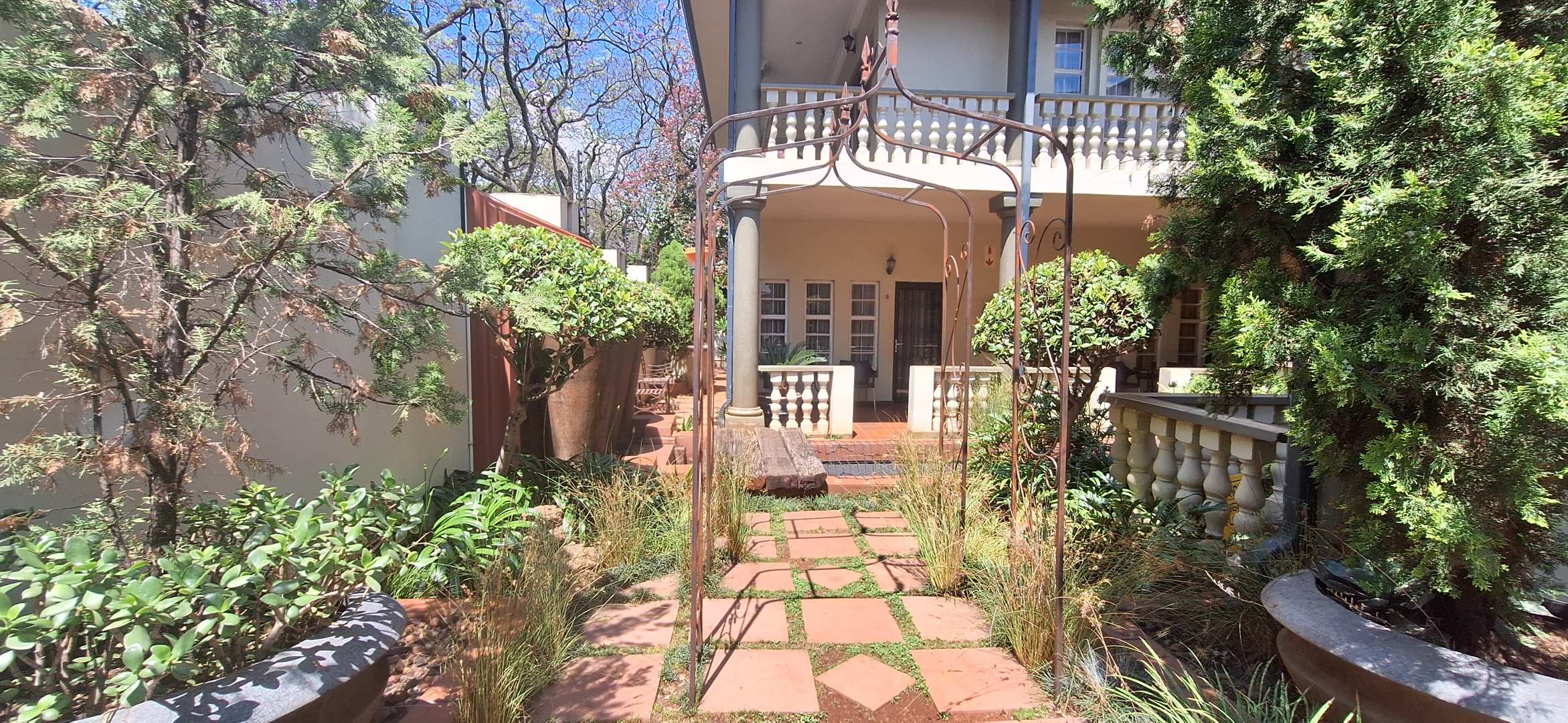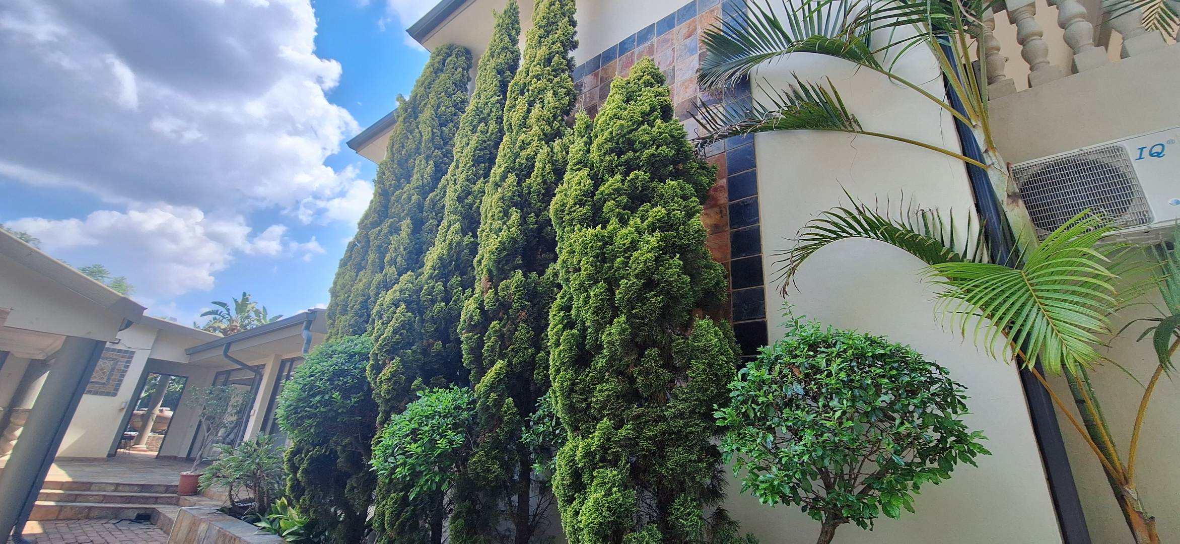 A majestic facade, adorned with classical columns and elegant balustrades, introduces this distinguished Colbyn residence, setting a tone of unparalleled grandeur. The Property is currently run as a Guest House. Mature jacaranda trees frame the secure perimeter, featuring robust electric fencing and an intercom-controlled access gate, ensuring utmost privacy and a commanding street presence. The meticulously paved driveway and lush, irrigated gardens enhance the property's exceptional kerb appeal, inviting discerning residents into a world of refined living.