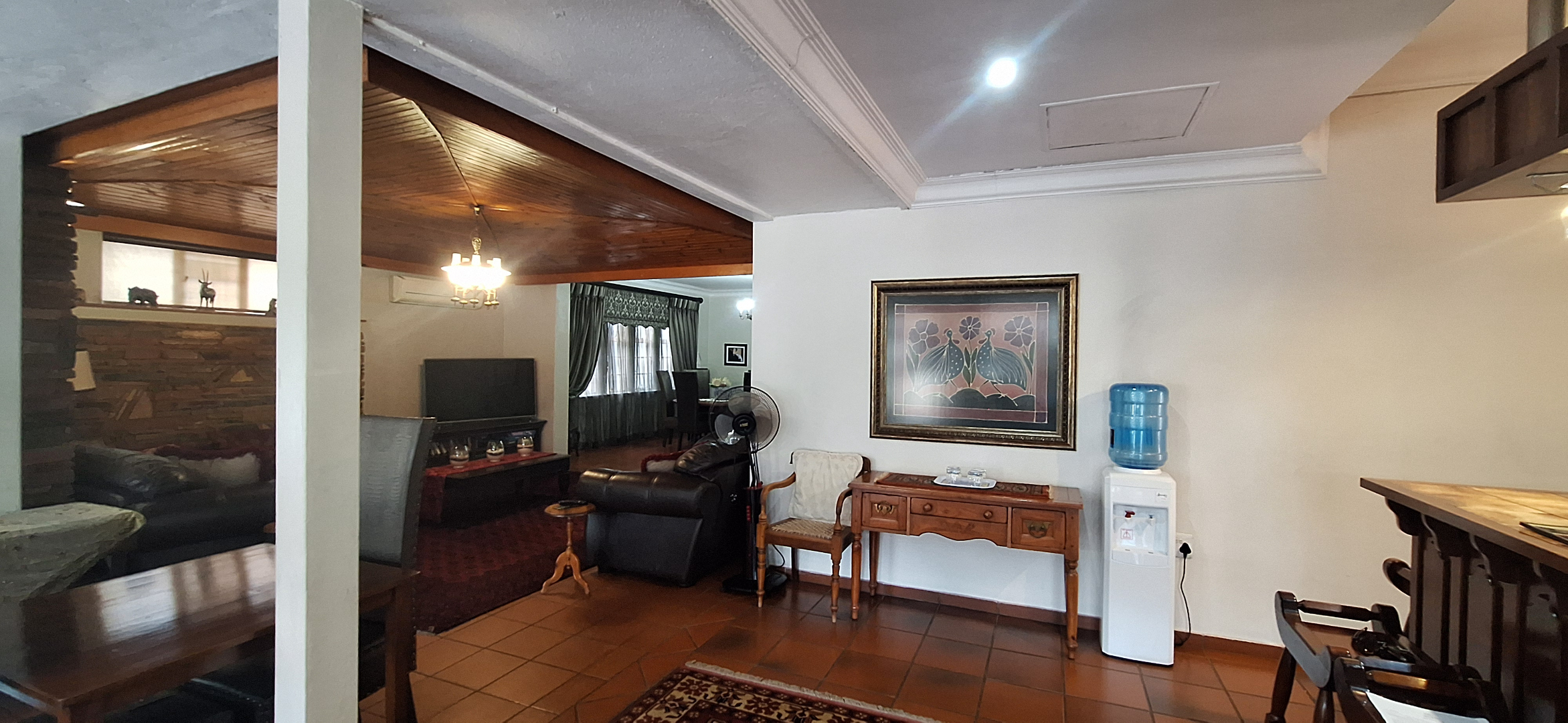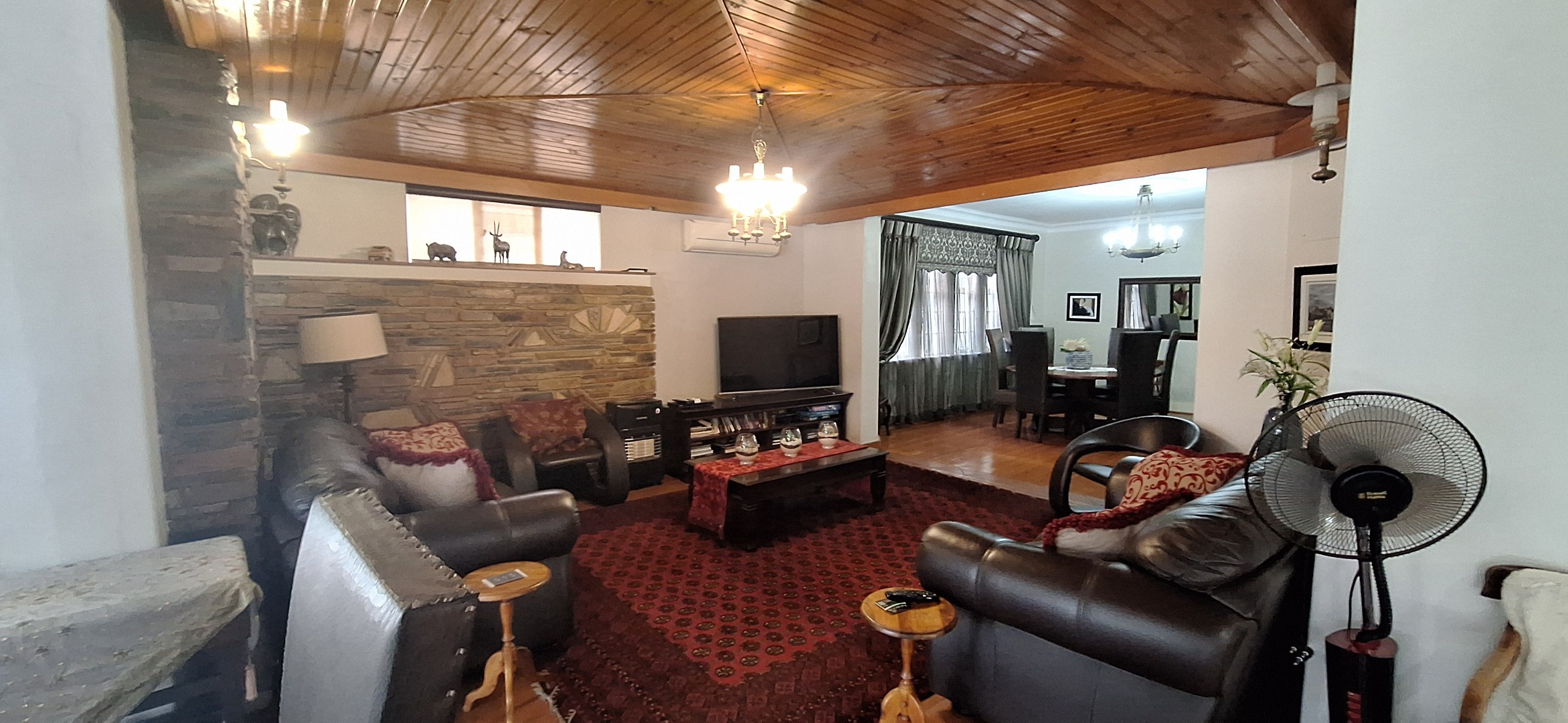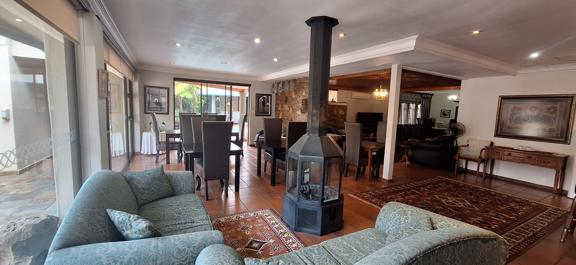 Step inside to discover an expansive interior, meticulously furnished and designed for opulent living. This magnificent home boasts three lavish lounges, two sophisticated dining rooms, and five fully-equipped kitchens, catering to grand entertaining and intimate family moments alike. The open-plan design seamlessly connects these magnificent spaces, complemented by a welcoming reception area, a cozy fireplace, and a dedicated braai room for year-round enjoyment. A convenient pantry and guest toilet further enhance the home's functionality.