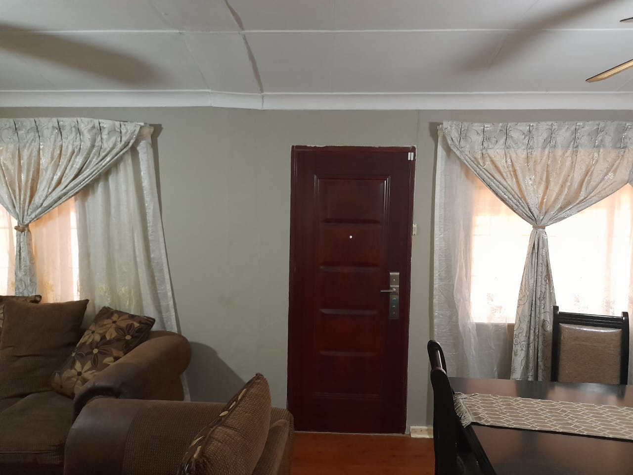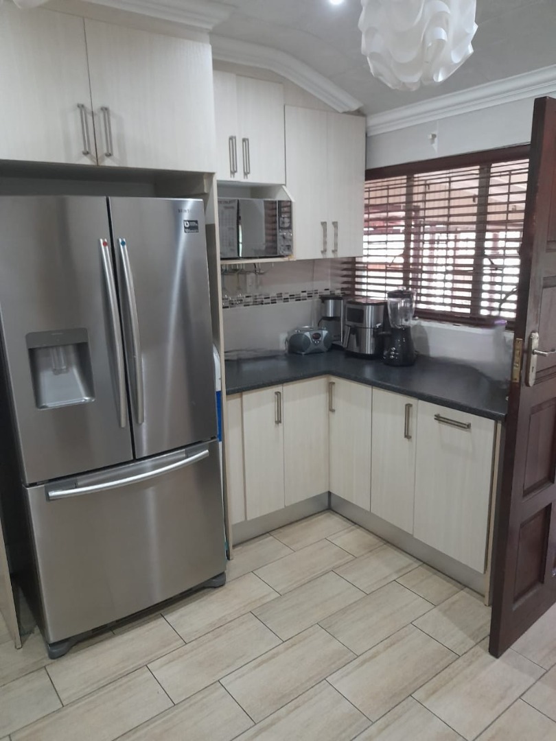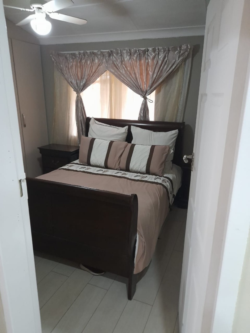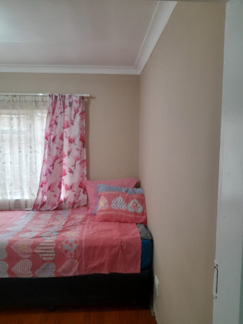 Accommodation consists of three bedrooms, each offering a private retreat with built-in cupboard. The bedrooms feature tiled flooring and neutral walls with paneled ceilings. The single bathroom serves the household efficiently. For peace of mind, the property is equipped with an alarm system. Additionally, a flatlet offers potential for extended family living or rental income. making this a truly family-friendly home.