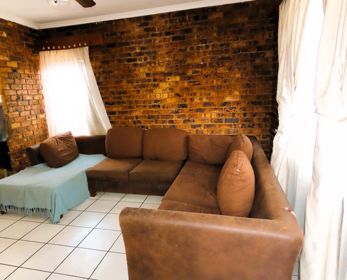 Step inside to a comfortable layout featuring a spacious lounge with distinctive exposed brick accent walls, creating a warm and inviting atmosphere. Natural light fills the living areas through large windows, complemented by a ceiling fan for comfort. A dedicated dining room is perfect for family meals. The kitchen, equipped with wooden cabinetry, a red countertop, and a built-in oven, offers potential for modern updates to suit your taste. The property includes a prepaid electricity meter, giving tenants full control over monthly energy usage and spending. Simply top up as needed.