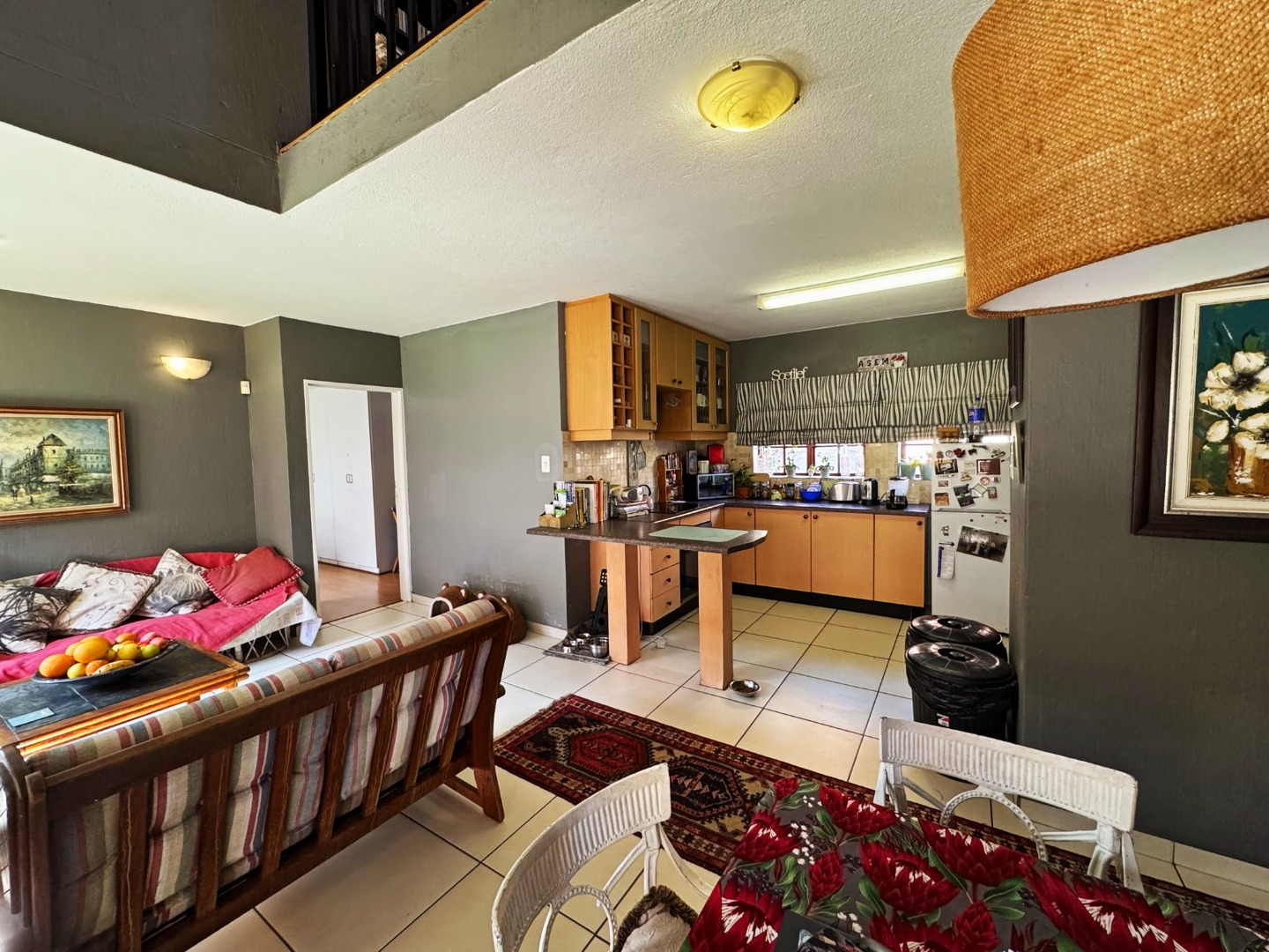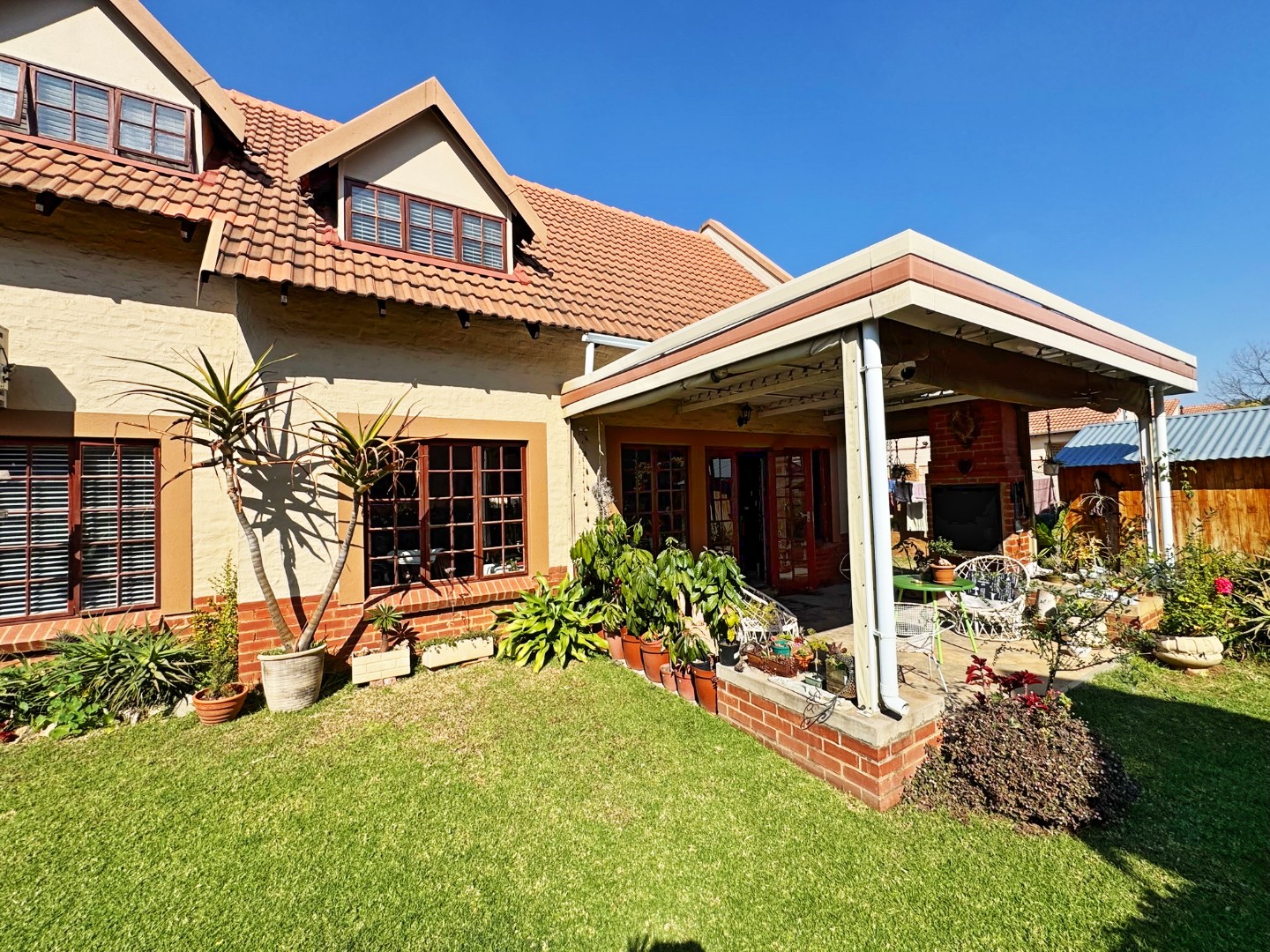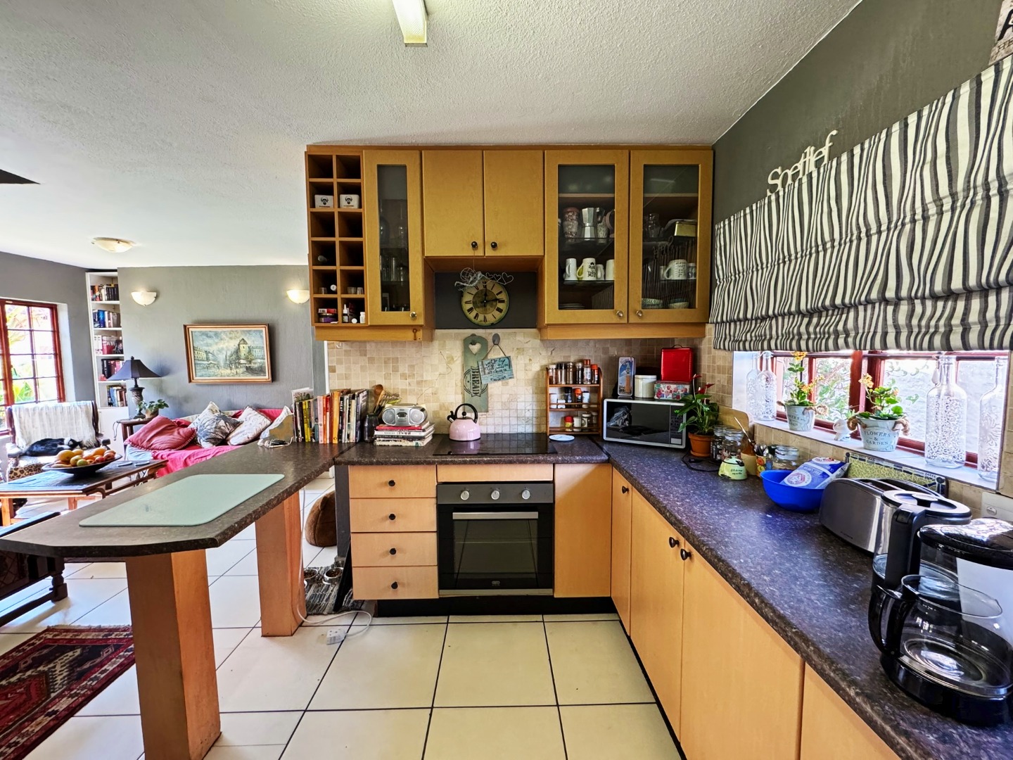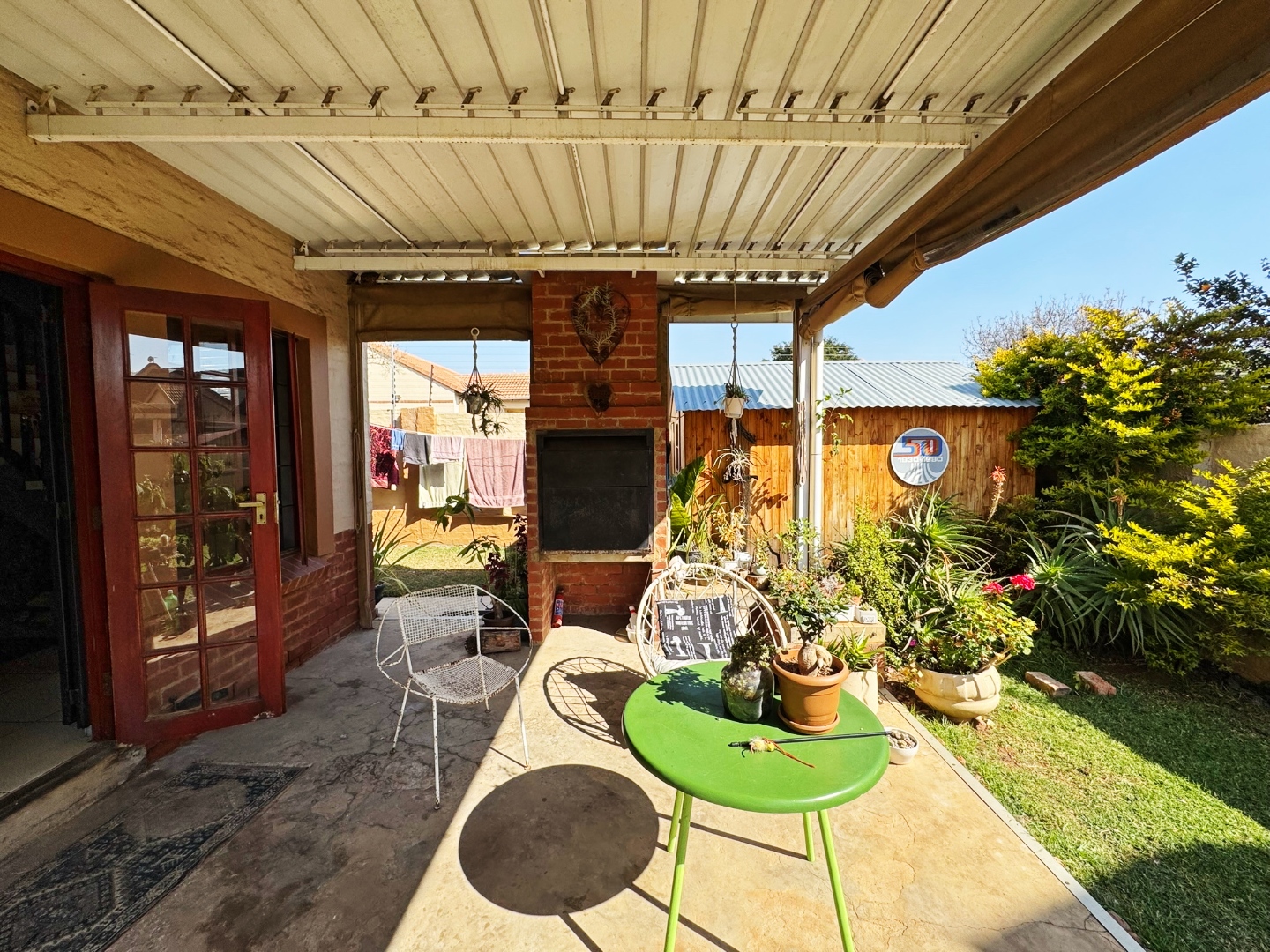 The living area extends to a covered braai area, overlooking a beautifully maintained garden — perfect for outdoor relaxation or entertaining guests.
