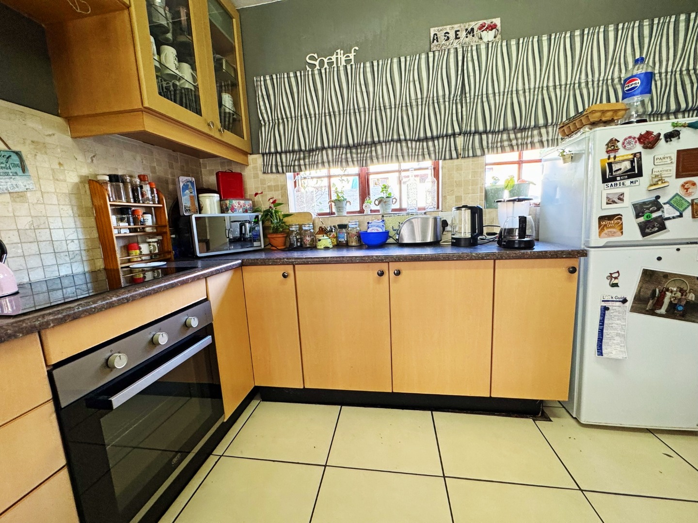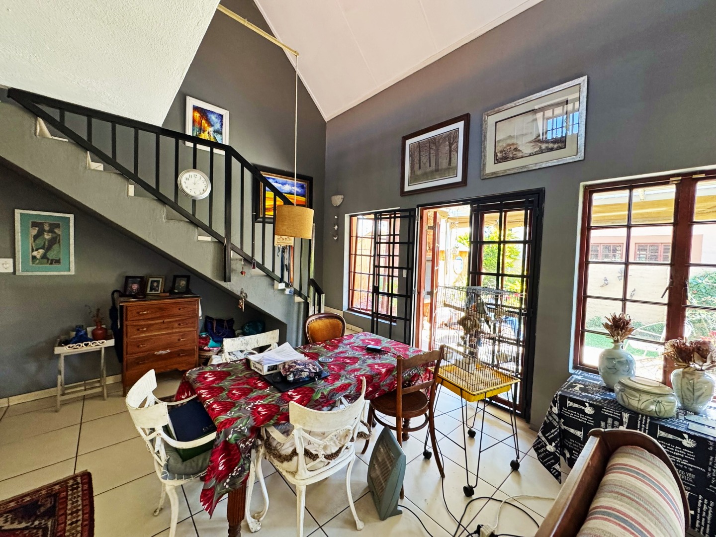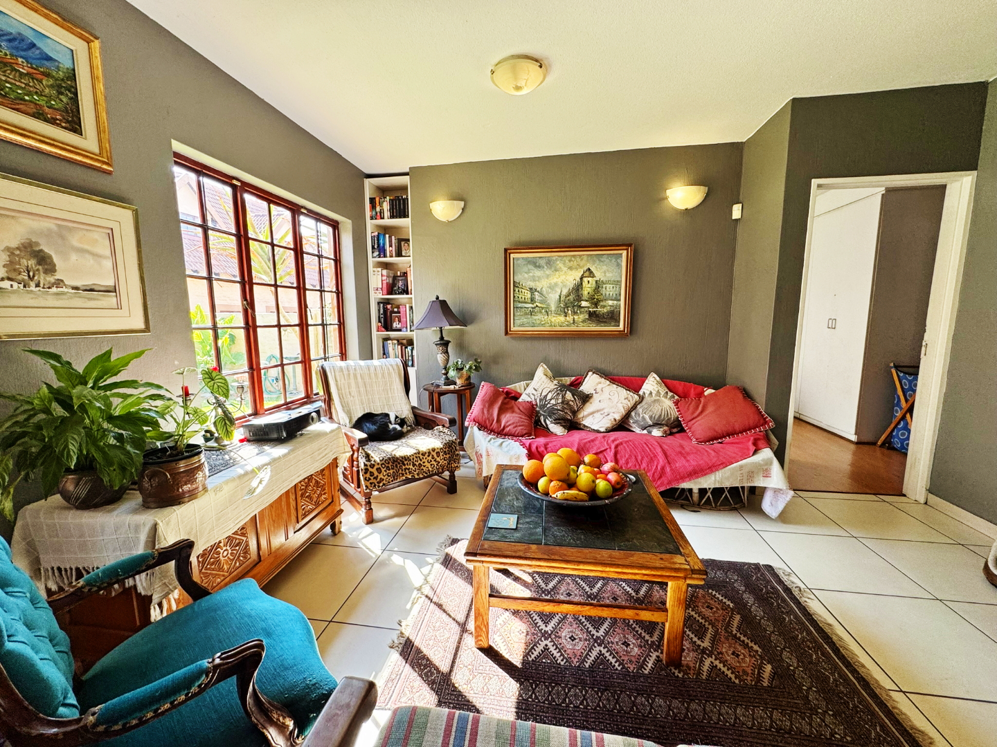 The living area extends to a covered braai area, overlooking a beautifully maintained garden — perfect for outdoor relaxation or entertaining guests.