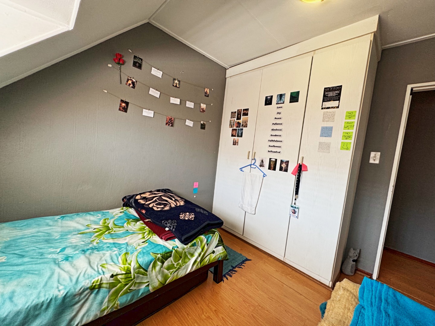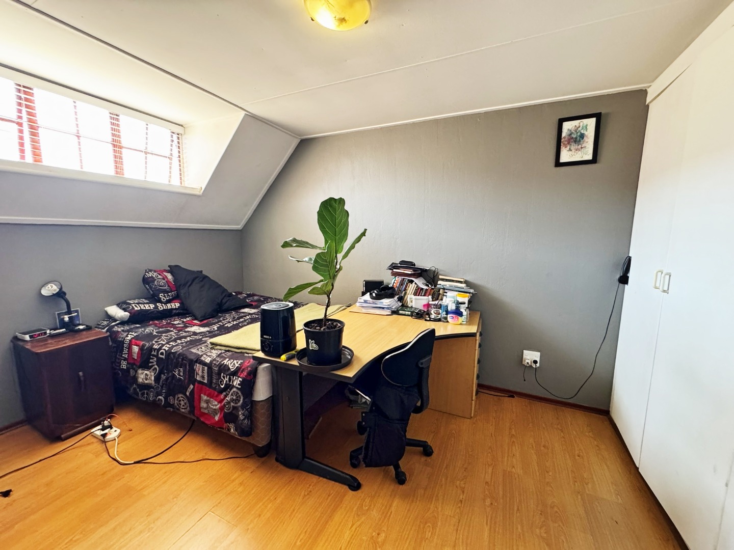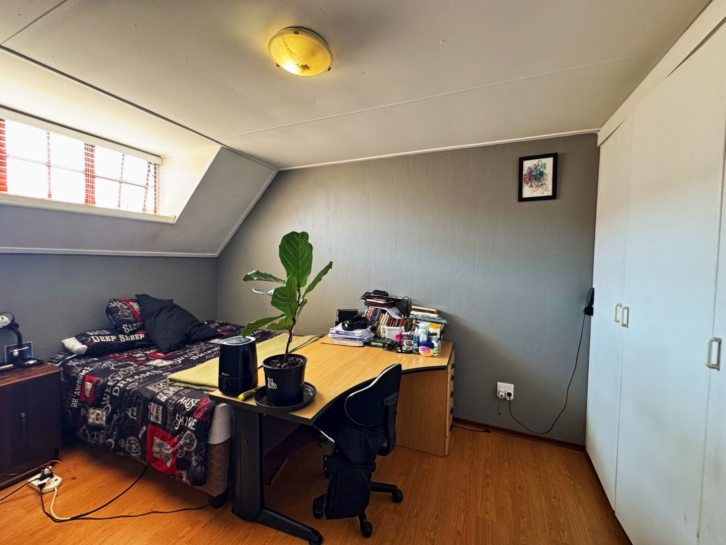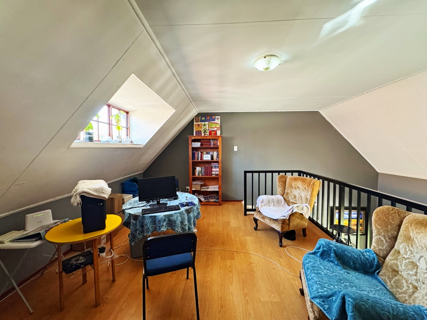The living area extends to a covered braai area, overlooking a beautifully maintained garden — perfect for outdoor relaxation or entertaining guests.