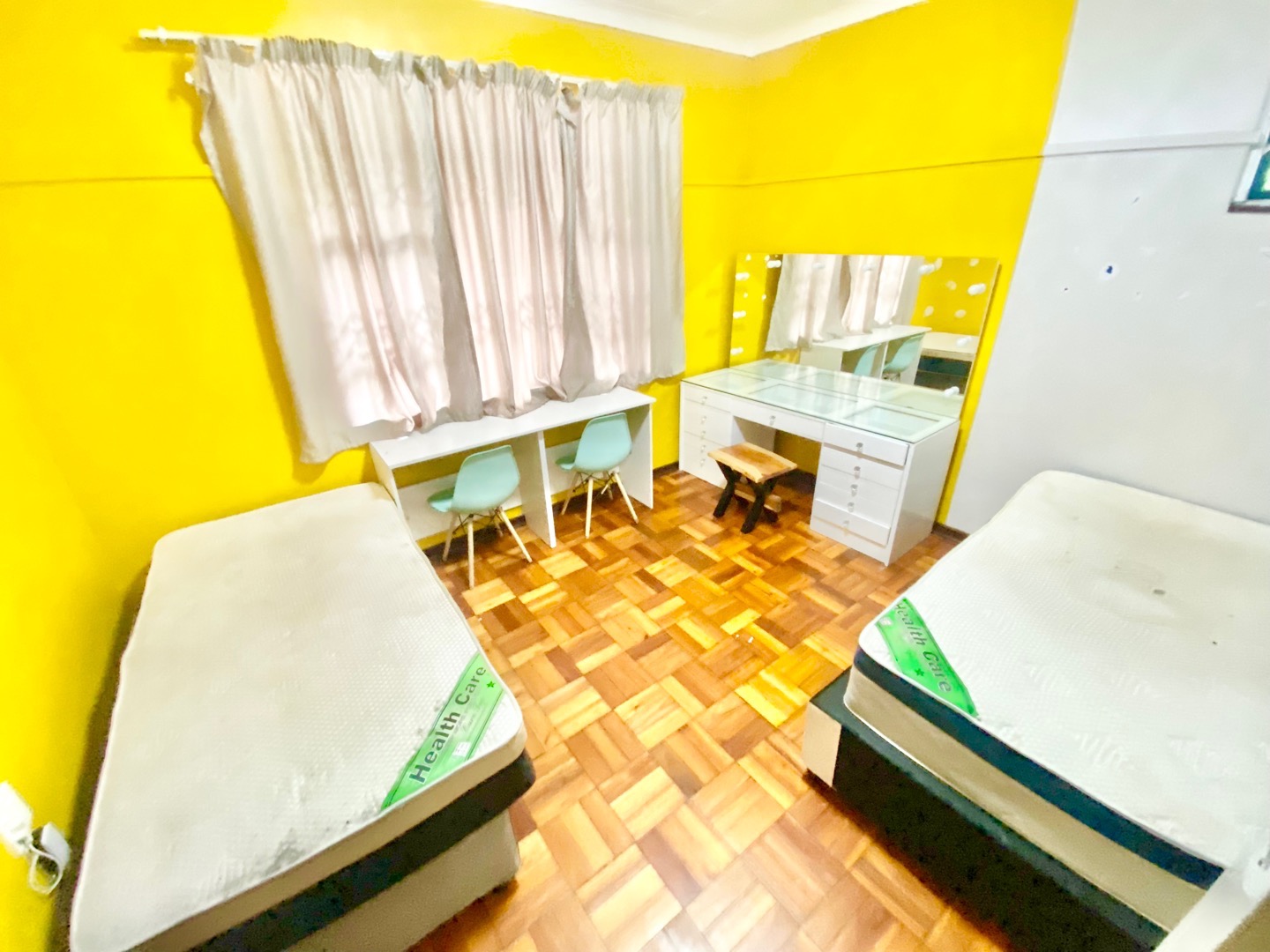 Designed with both comfort and operational efficiency in mind, the property is fully furnished and meticulously equipped throughout. The rooms are stylishly appointed and include beds, curtains, study desks, and chairs, while two well-appointed kitchens provide generous cupboard space and are fitted with gas stoves to promote energy efficiency and reduced operating costs. Tenant convenience is further enhanced by the inclusion of two fridges and two washing machines, elegant wooden flooring throughout the home, and a dedicated communal study area.