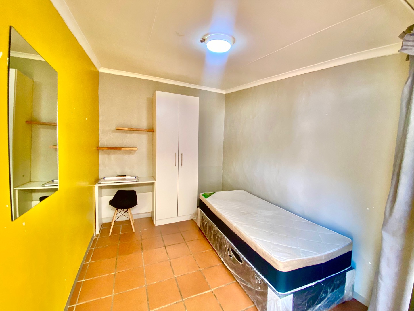 Stylishly appointed rooms complete with beds, curtains, study desks, and chairs