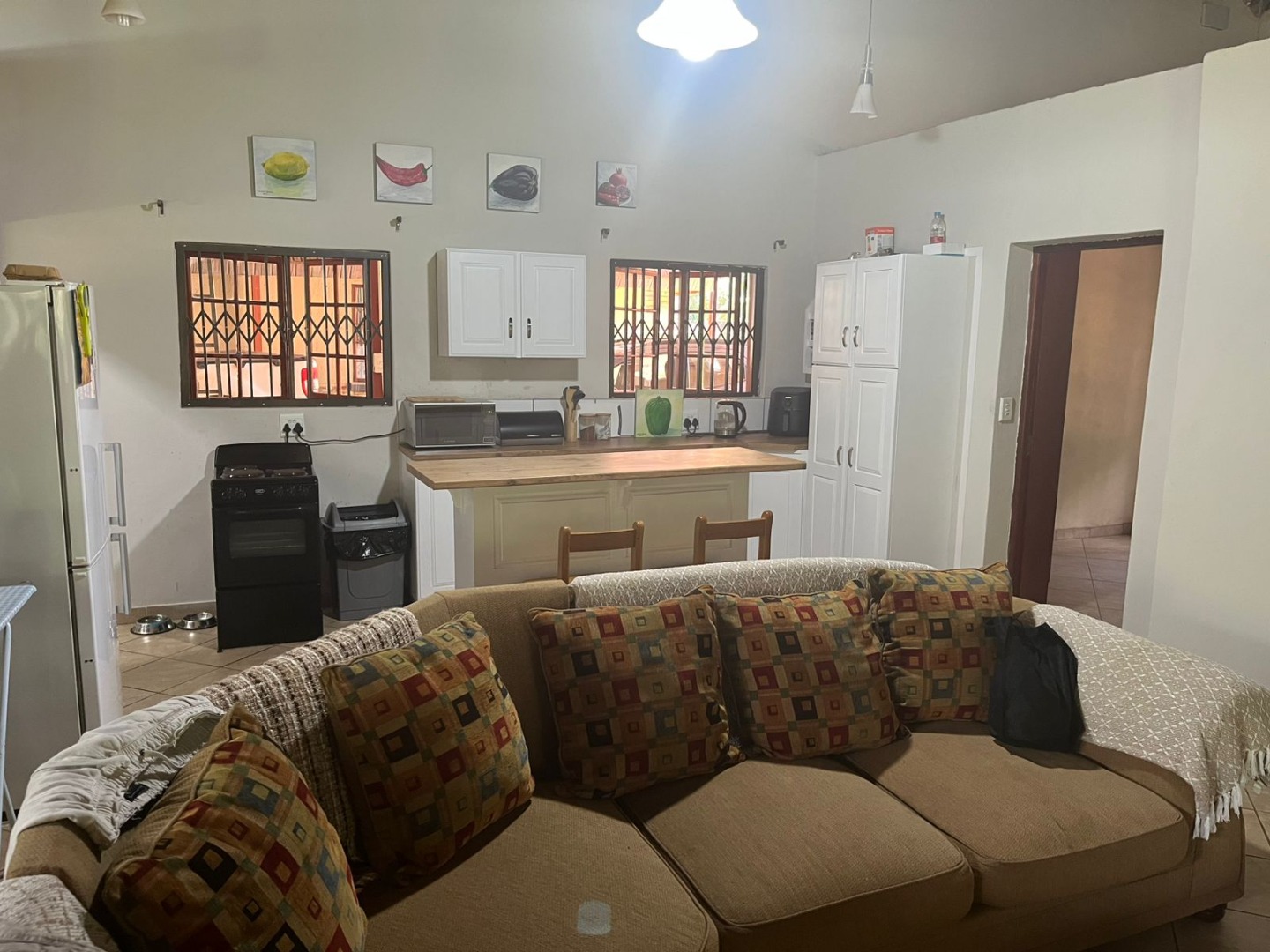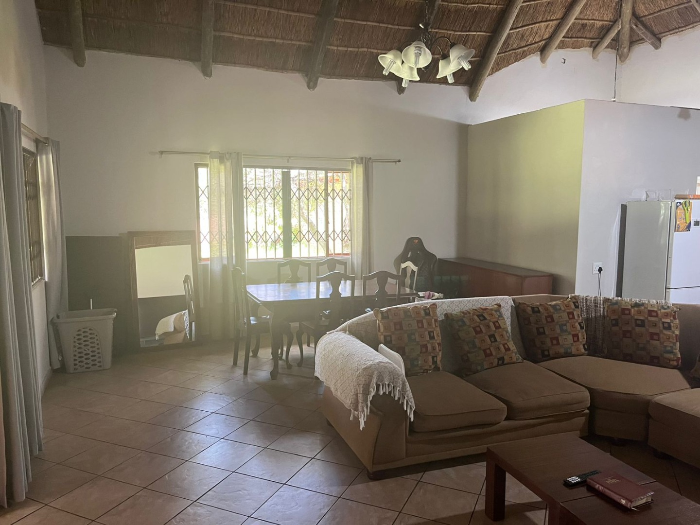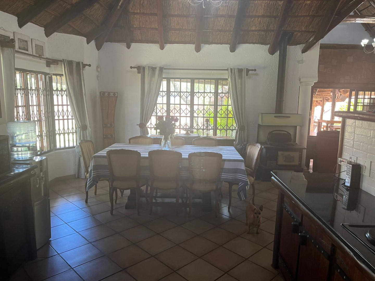Discover a unique property in Kameeldrift East, Pretoria, South Africa, offering a blend of rustic charm and comfortable living. The exterior immediately captivates with its distinctive thatched and tiled roofs, stone cladding, and lush, well-maintained gardens featuring mature trees and paved pathways. A standout feature is the charming treehouse, providing a whimsical retreat and enhancing the property's kerb appeal. Inside, the home presents a spacious, open-plan layout with a lounge, kitchen, and an inviting dining area. The interior boasts characterful thatched ceilings and exposed wooden beams, complemented by a mix of durable tiled and warm wooden flooring. Large windows, fitted with security bars, ensure ample natural light throughout the living spaces. This residence offers five comfortable bedrooms and four bathrooms, providing ample accommodation for a family. Built-in wardrobes in the bedrooms offer practical storage solutions. For outdoor enjoyment, the property features a refreshing pool, a lapa, a patio, and a built-in braai, perfect for entertaining. The expansive garden provides a serene environment, while a large carport accommodates multiple vehicles. Adding to its versatility, the property includes a flatlet and staff quarters, catering to various needs. The presence of security bars on windows underscores a focus on safety. Located in Kameeldrift East, this home offers a tranquil lifestyle within reach of Pretoria amenities. Key Features: * 5 Bedrooms, 4 Bathrooms * Unique Thatched and Tiled Roofs * Spacious Open-Plan Living * Inviting Pool and Lapa * Built-in Braai and Patio * Charming Treehouse Feature * Flatlet and Staff Quarters * Ample Parking (6 bays, 1 garage)