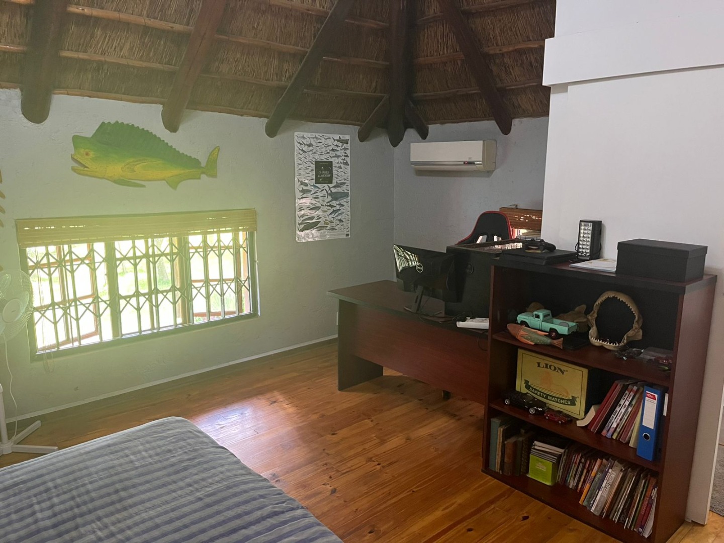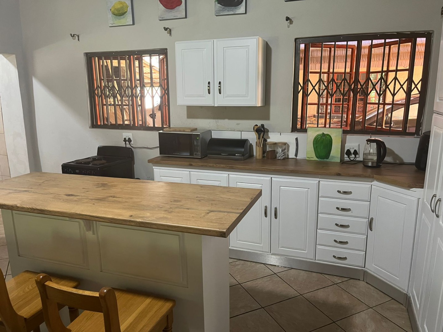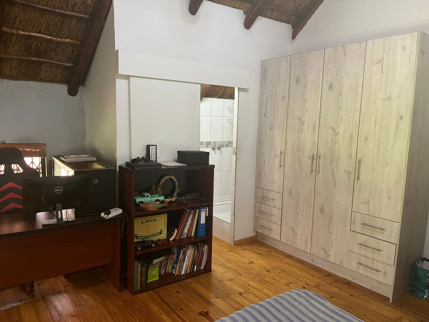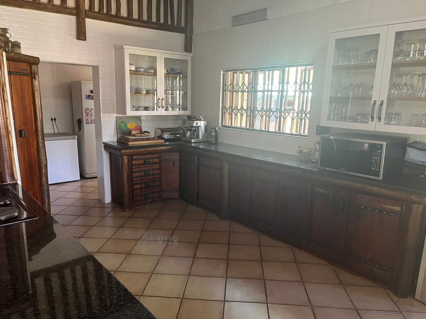 Discover a unique property in Kameeldrift East, Pretoria, South Africa, offering a blend of rustic charm and comfortable living. The exterior immediately captivates with its distinctive thatched and tiled roofs, stone cladding, and lush, well-maintained gardens featuring mature trees and paved pathways. A standout feature is the charming treehouse, providing a whimsical retreat and enhancing the property's kerb appeal. Inside, the home presents a spacious, open-plan layout with a lounge, kitchen, and an inviting dining area. The interior boasts characterful thatched ceilings and exposed wooden beams, complemented by a mix of durable tiled and warm wooden flooring. Large windows, fitted with security bars, ensure ample natural light throughout the living spaces. This residence offers five comfortable bedrooms and four bathrooms, providing ample accommodation for a family. Built-in wardrobes in the bedrooms offer practical storage solutions. For outdoor enjoyment, the property features a refreshing pool, a lapa, a patio, and a built-in braai, perfect for entertaining. The expansive garden provides a serene environment, while a large carport accommodates multiple vehicles. Adding to its versatility, the property includes a flatlet and staff quarters, catering to various needs. The presence of security bars on windows underscores a focus on safety. Located in Kameeldrift East, this home offers a tranquil lifestyle within reach of Pretoria amenities. Key Features: * 5 Bedrooms, 4 Bathrooms * Unique Thatched and Tiled Roofs * Spacious Open-Plan Living * Inviting Pool and Lapa * Built-in Braai and Patio * Charming Treehouse Feature * Flatlet and Staff Quarters * Ample Parking (6 bays, 1 garage)