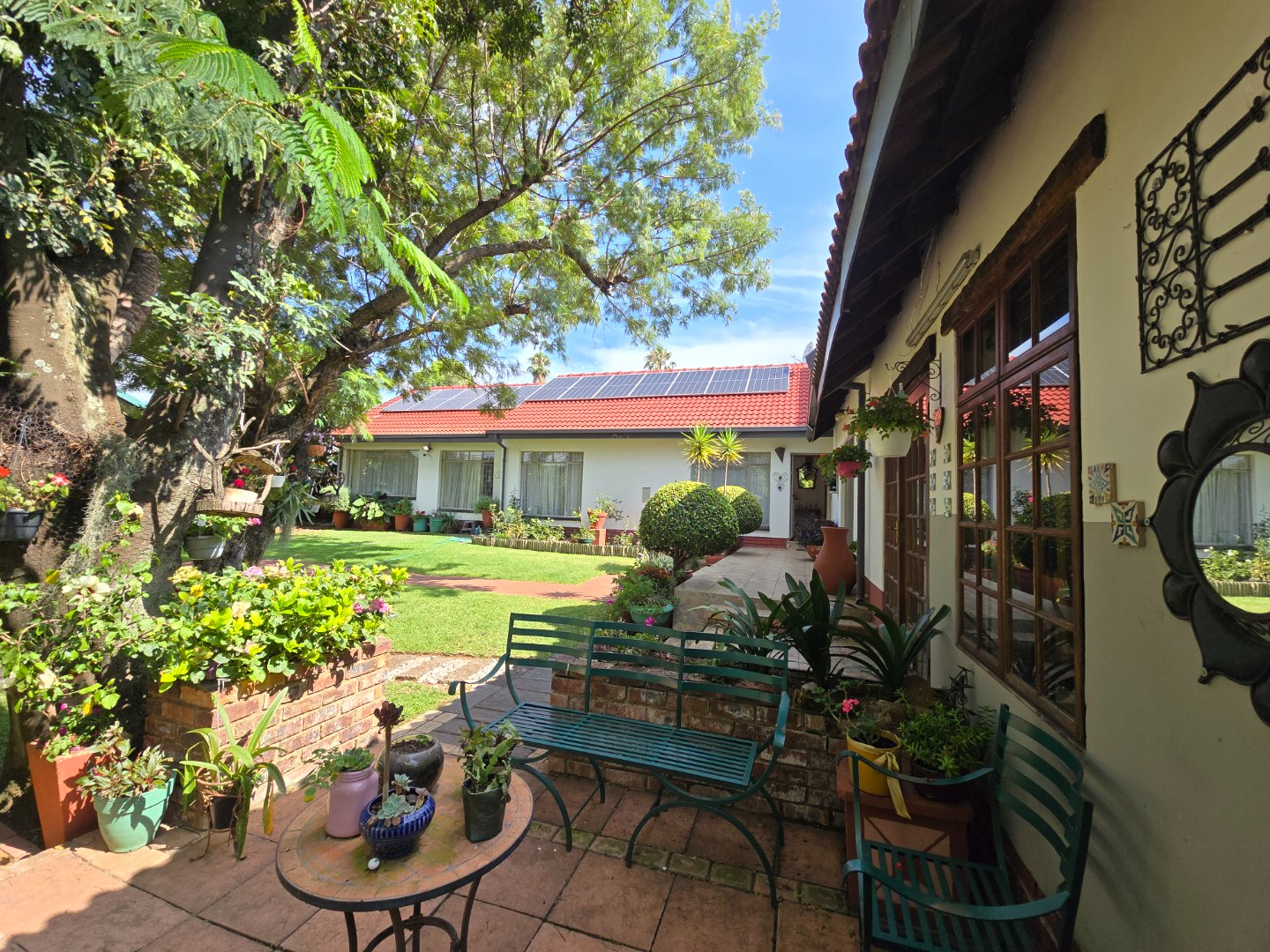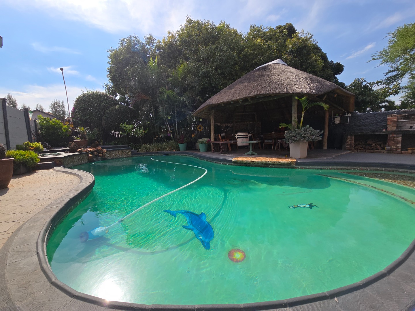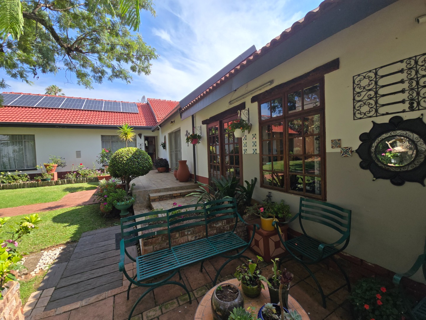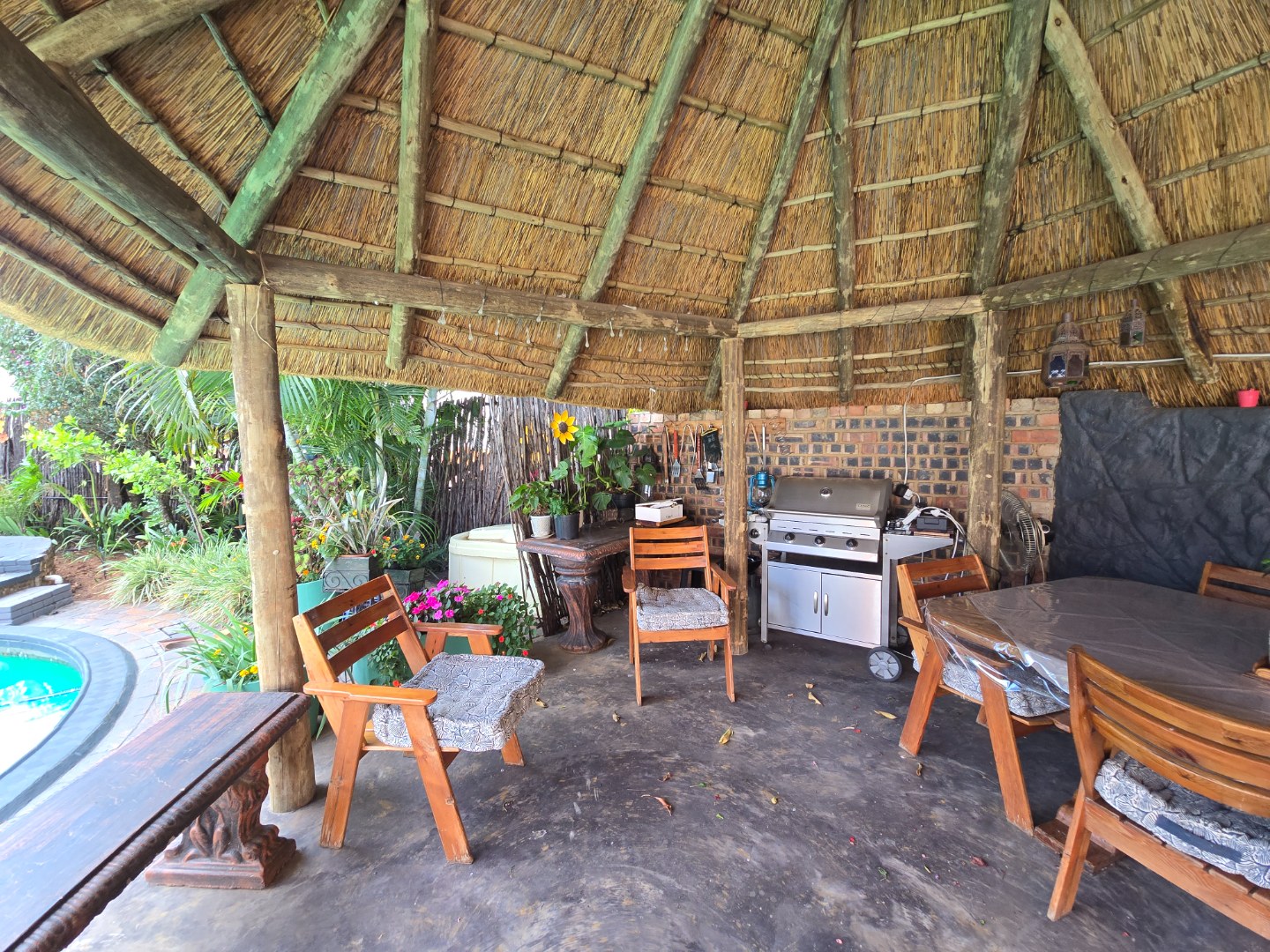 Outdoor living is a major feature of this home. Enjoy a large swimming pool, a lapa, and two braai areas, creating the perfect setting for hosting family gatherings, weekend braais, and relaxed social occasions. The beautifully landscaped garden adds to the charm, featuring a unique Moroccan-style seating area tucked into a quiet corner — a tranquil space to unwind and enjoy the outdoors.