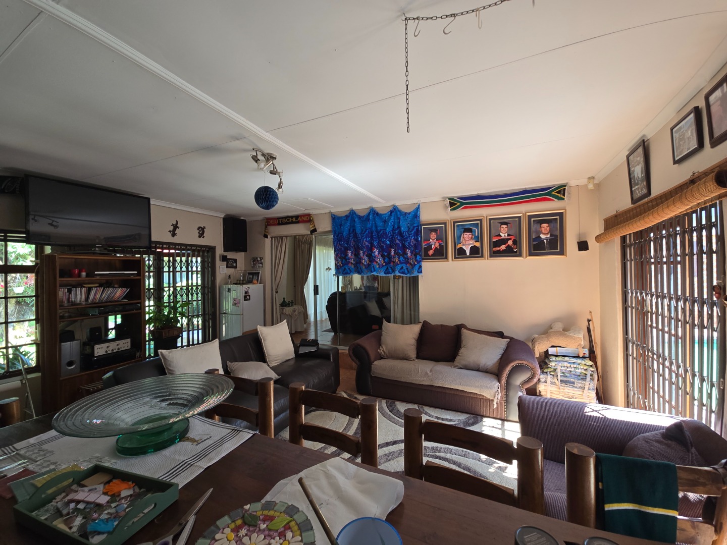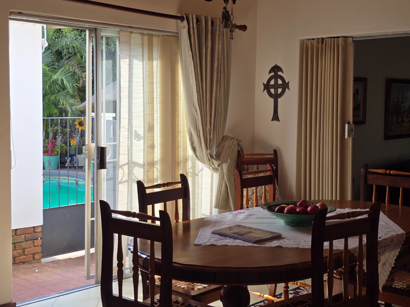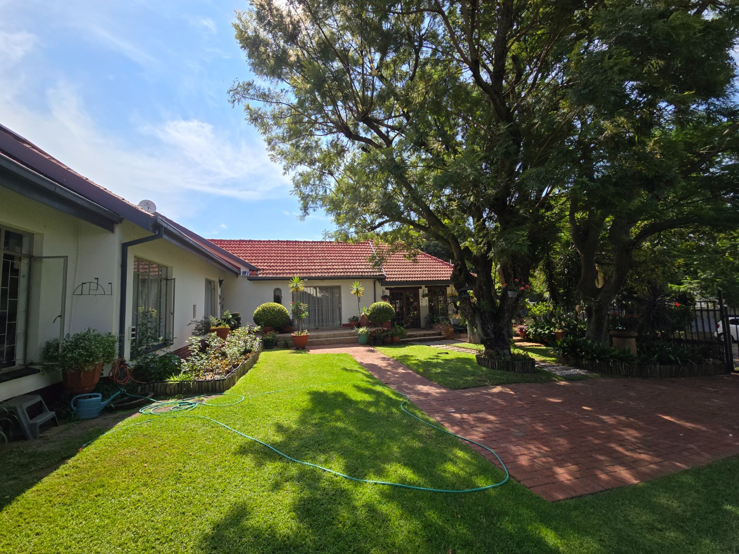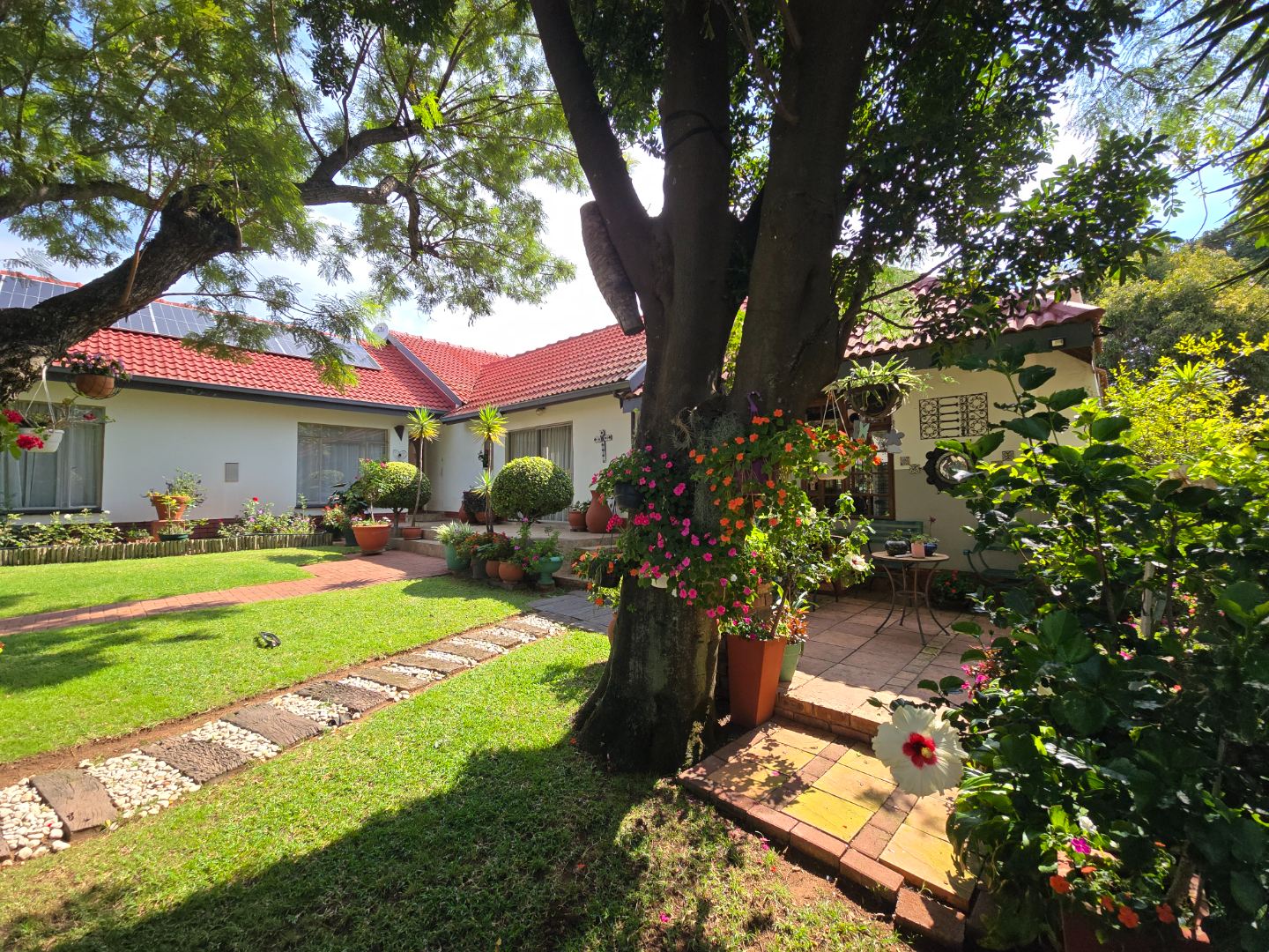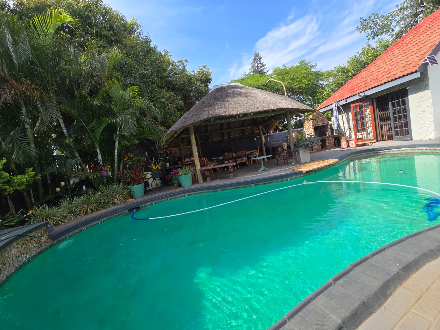 Outdoor living is a major feature of this home. Enjoy a large swimming pool, a lapa, and two braai areas, creating the perfect setting for hosting family gatherings, weekend braais, and relaxed social occasions. The beautifully landscaped garden adds to the charm, featuring a unique Moroccan-style seating area tucked into a quiet corner — a tranquil space to unwind and enjoy the outdoors.