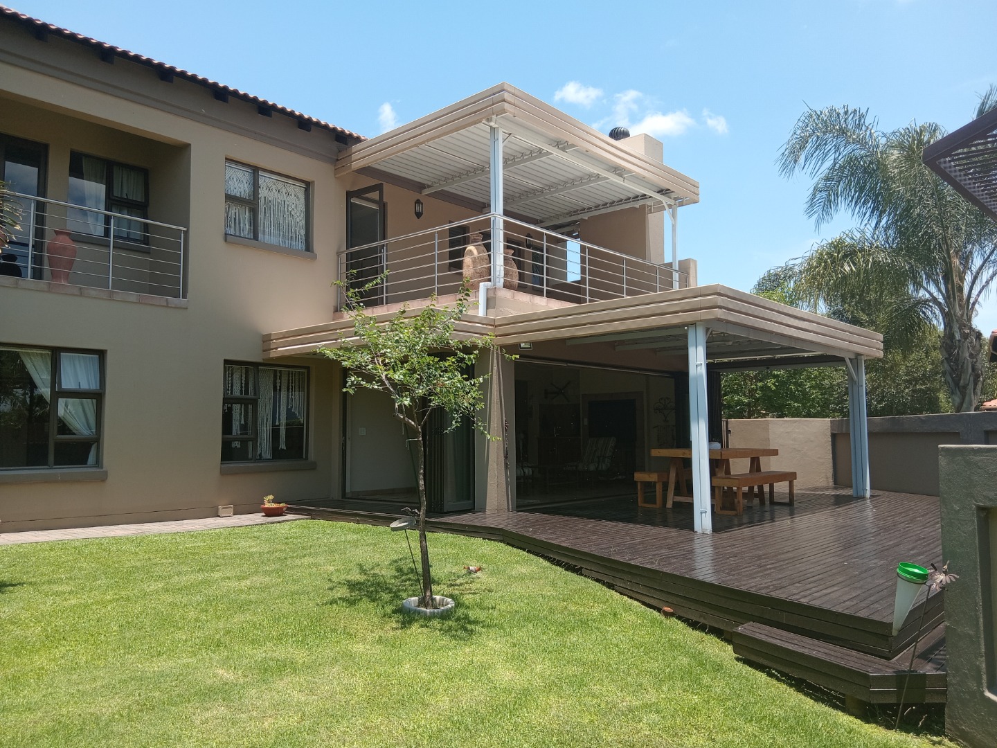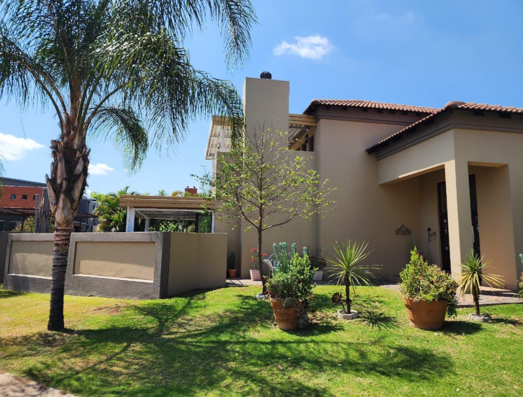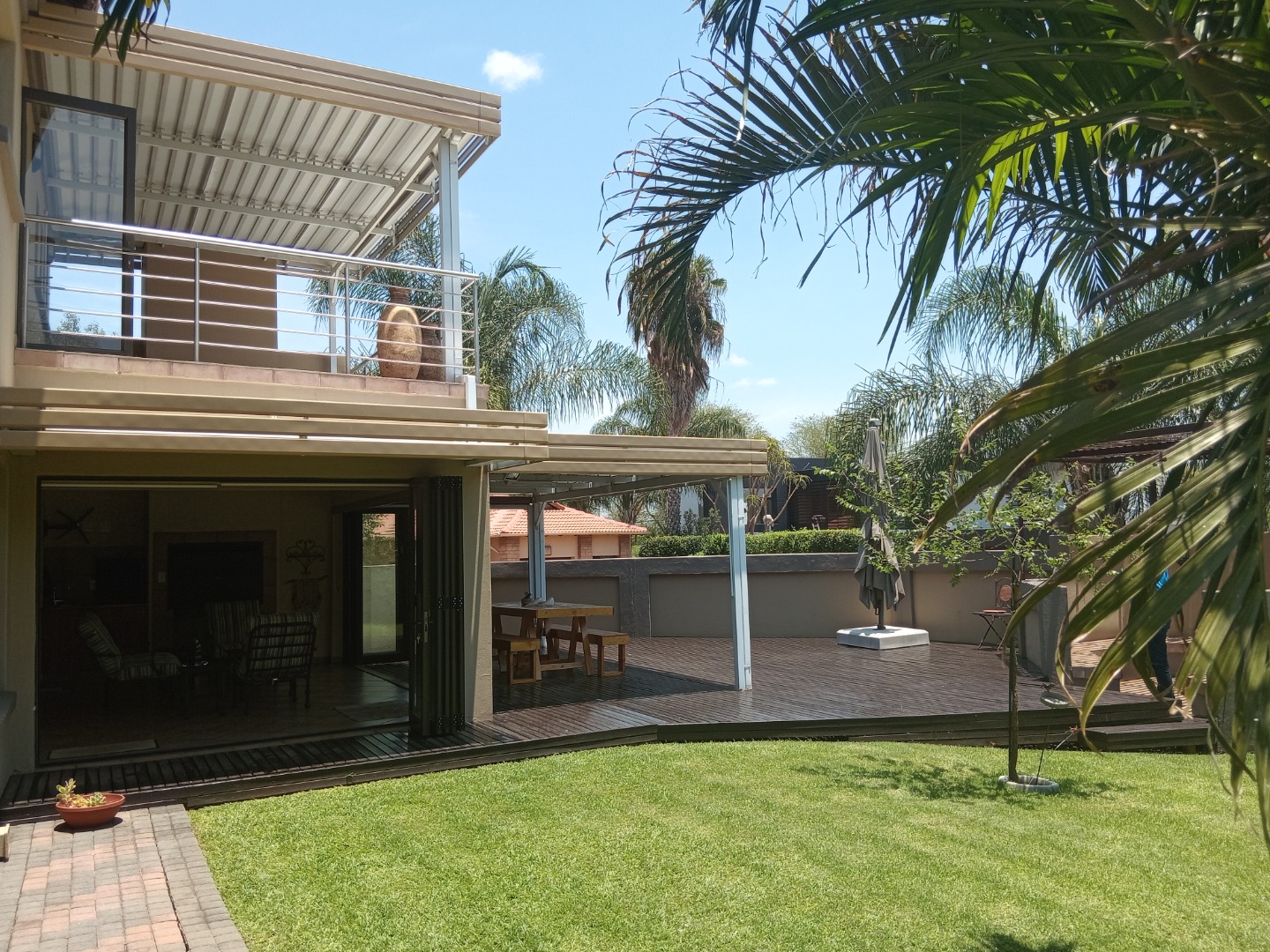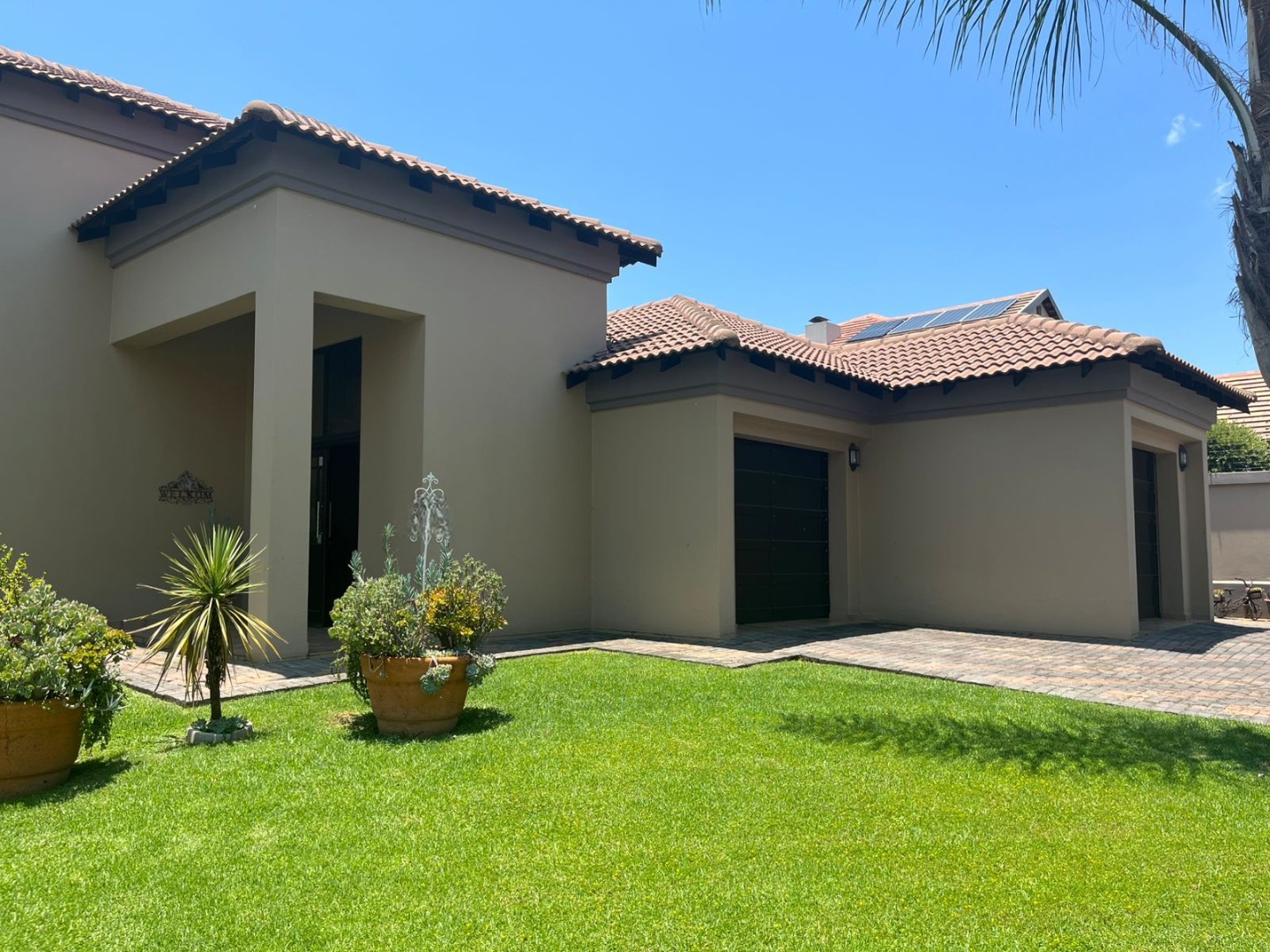 The enclosed entertainment patio connects seamlessly to an outdoor fire-pit boma, perfect for hosting friends and family. With three garages, ample extra parking, and a guest toilet, this home’s well-designed layout is finished off with beautifully manicured gardens, creating a tranquil escape in one of the area’s most sought-after estates.