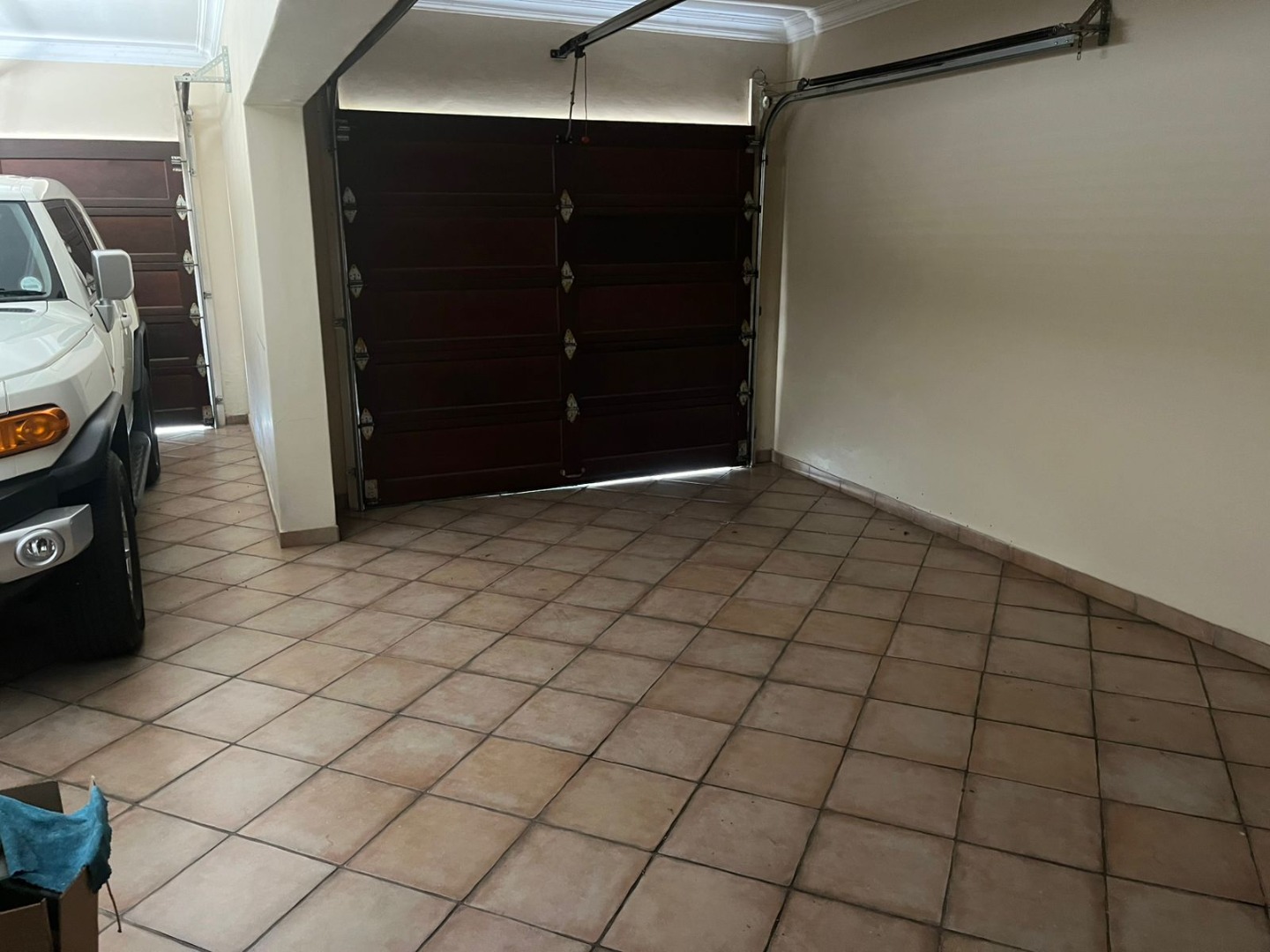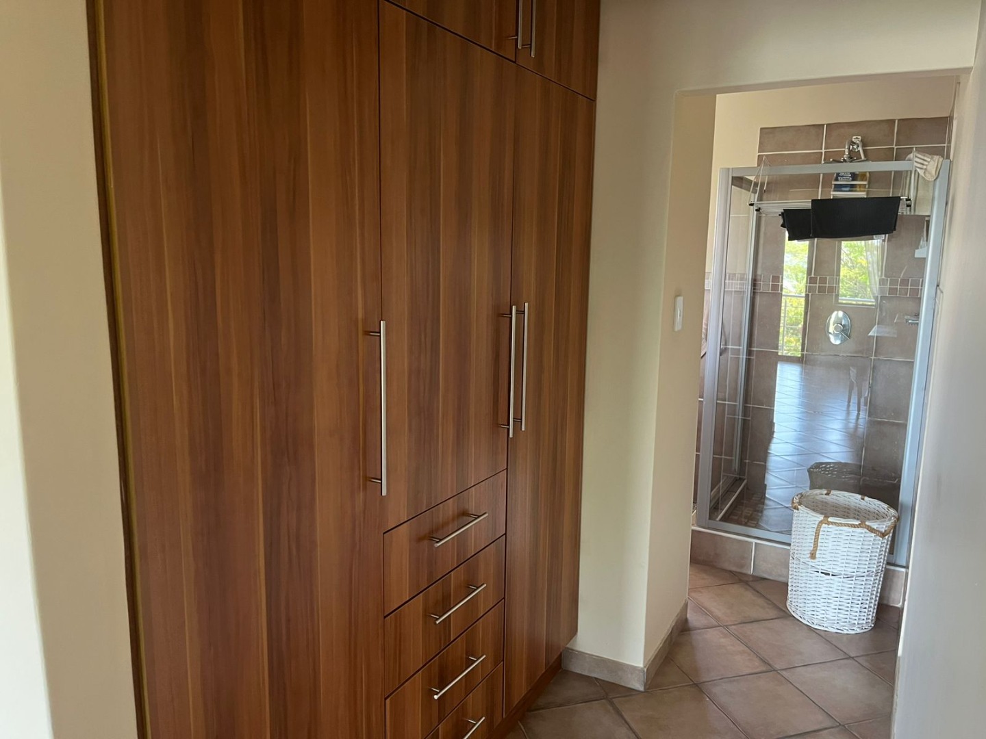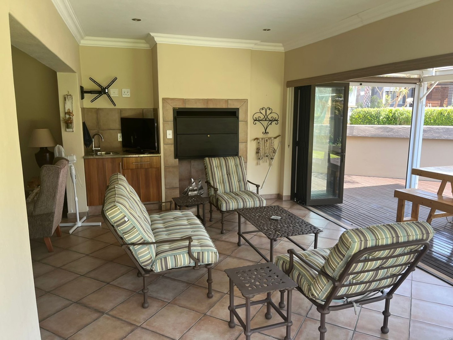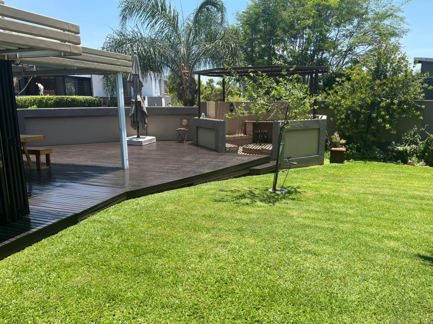 The enclosed entertainment patio connects seamlessly to an outdoor fire-pit boma, perfect for hosting friends and family. With three garages, ample extra parking, and a guest toilet, this home’s well-designed layout is finished off with beautifully manicured gardens, creating a tranquil escape in one of the area’s most sought-after estates.