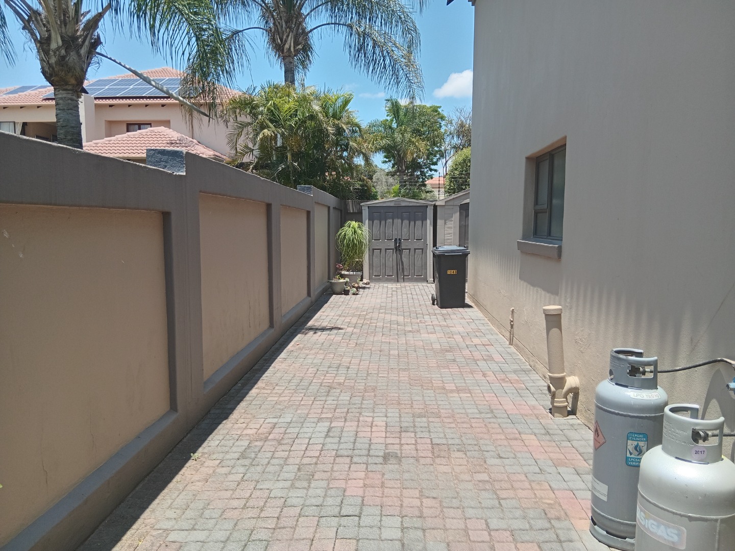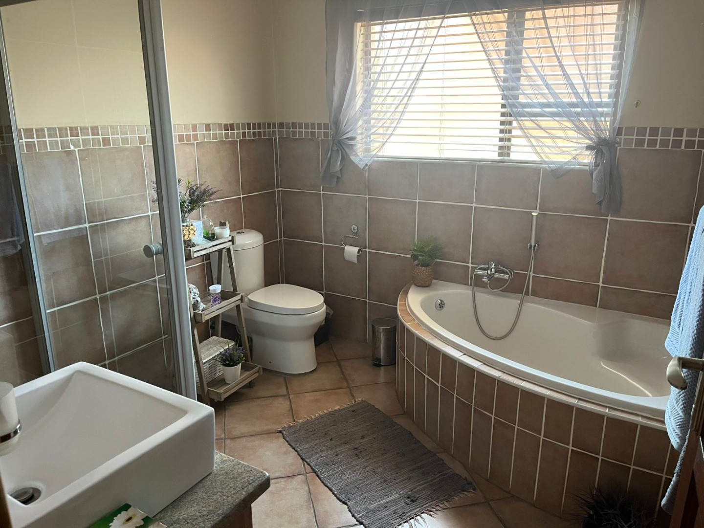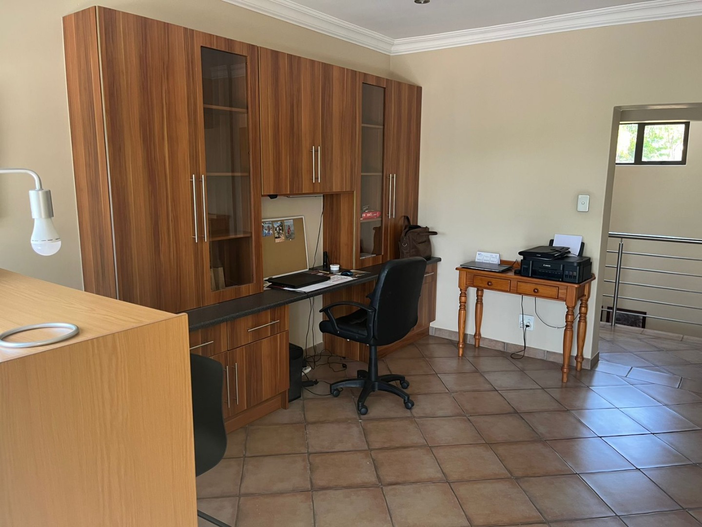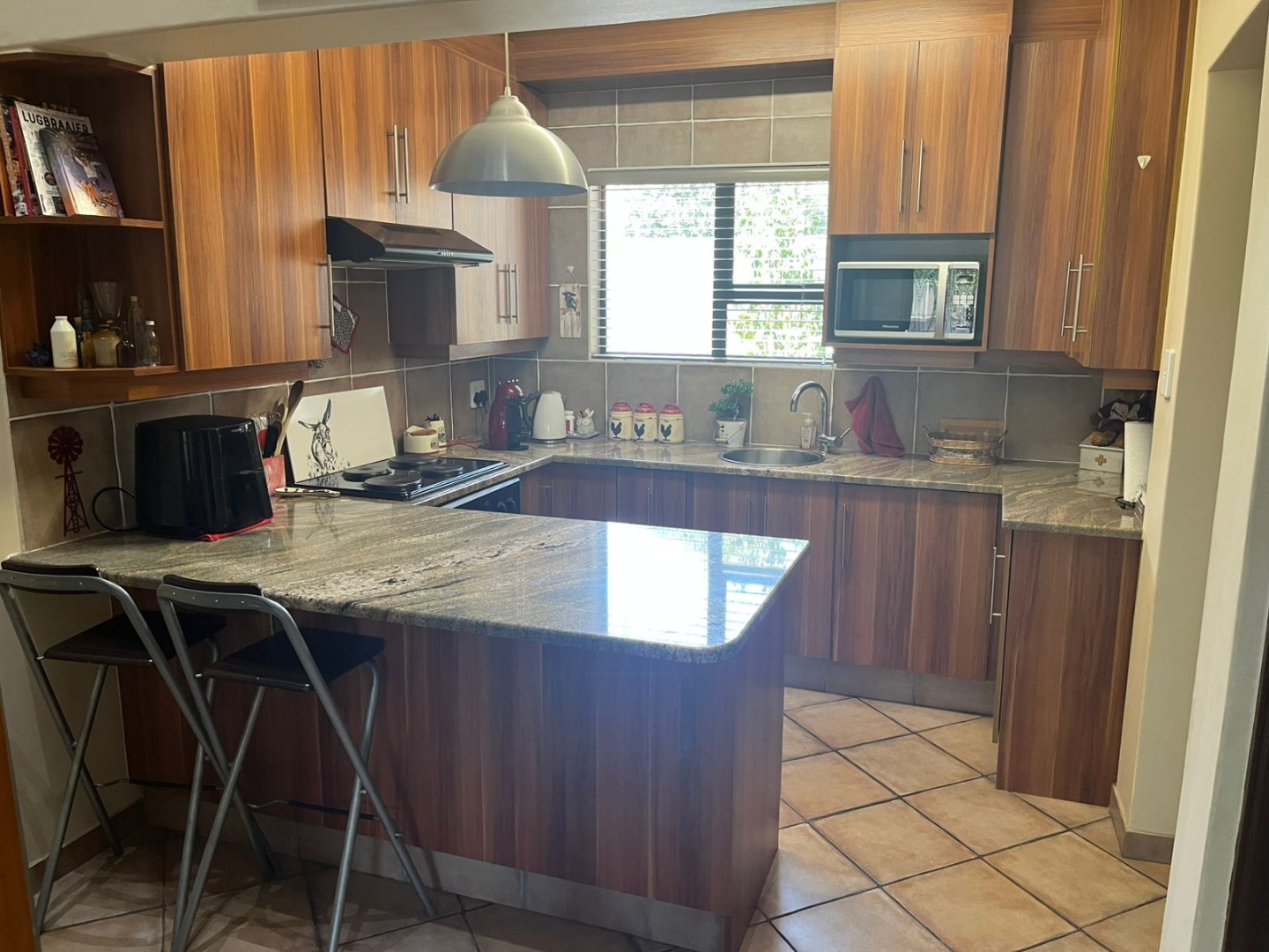 The enclosed entertainment patio connects seamlessly to an outdoor fire-pit boma, perfect for hosting friends and family. With three garages, ample extra parking, and a guest toilet, this home’s well-designed layout is finished off with beautifully manicured gardens, creating a tranquil escape in one of the area’s most sought-after estates.