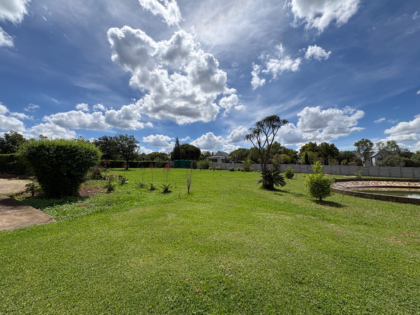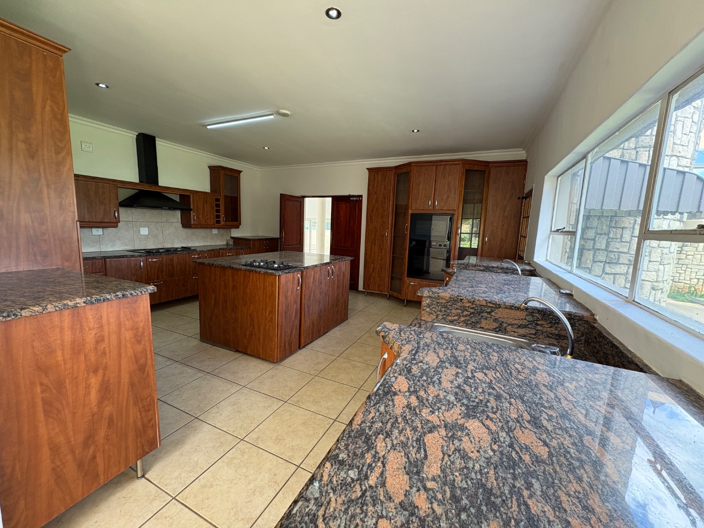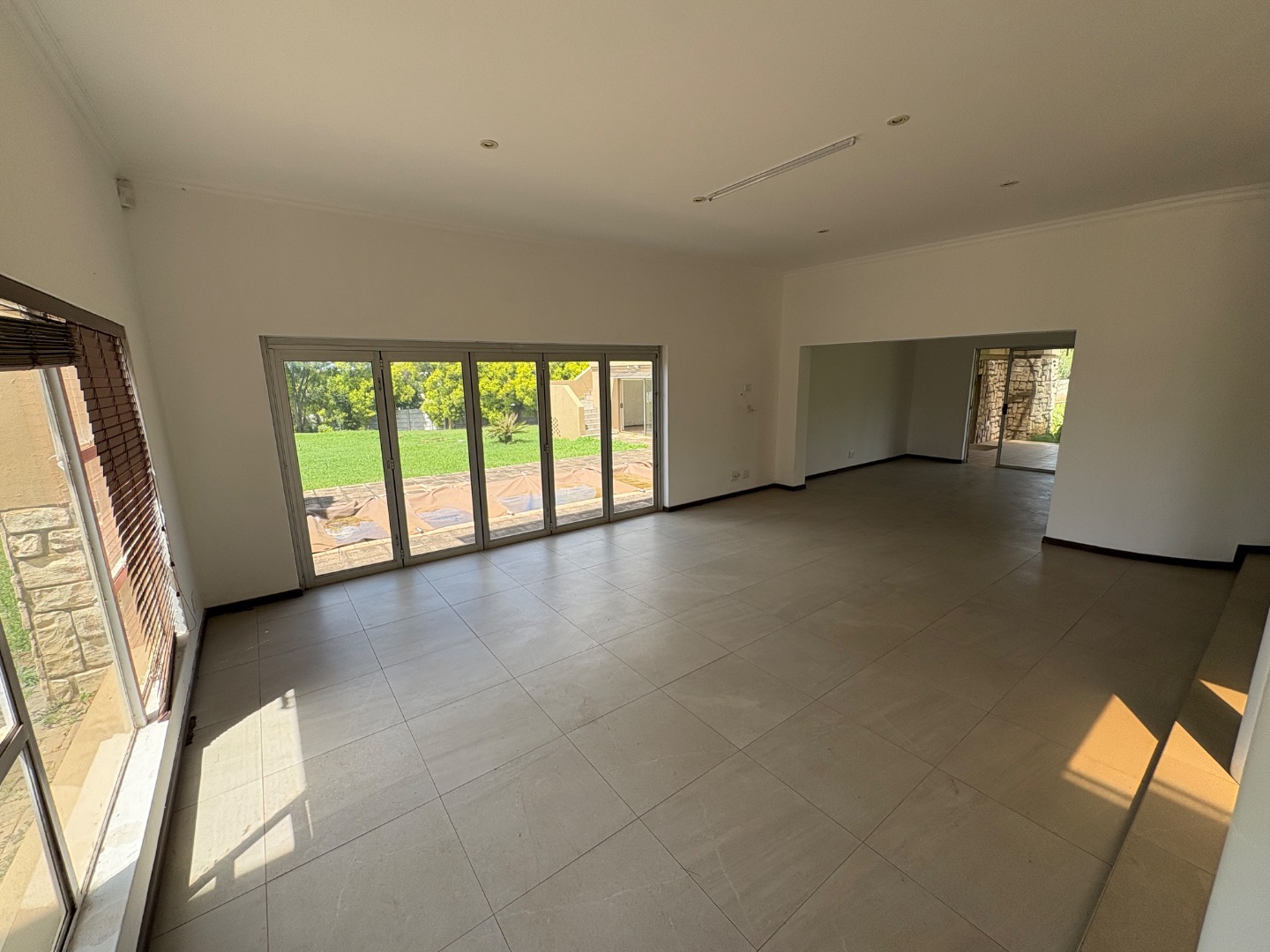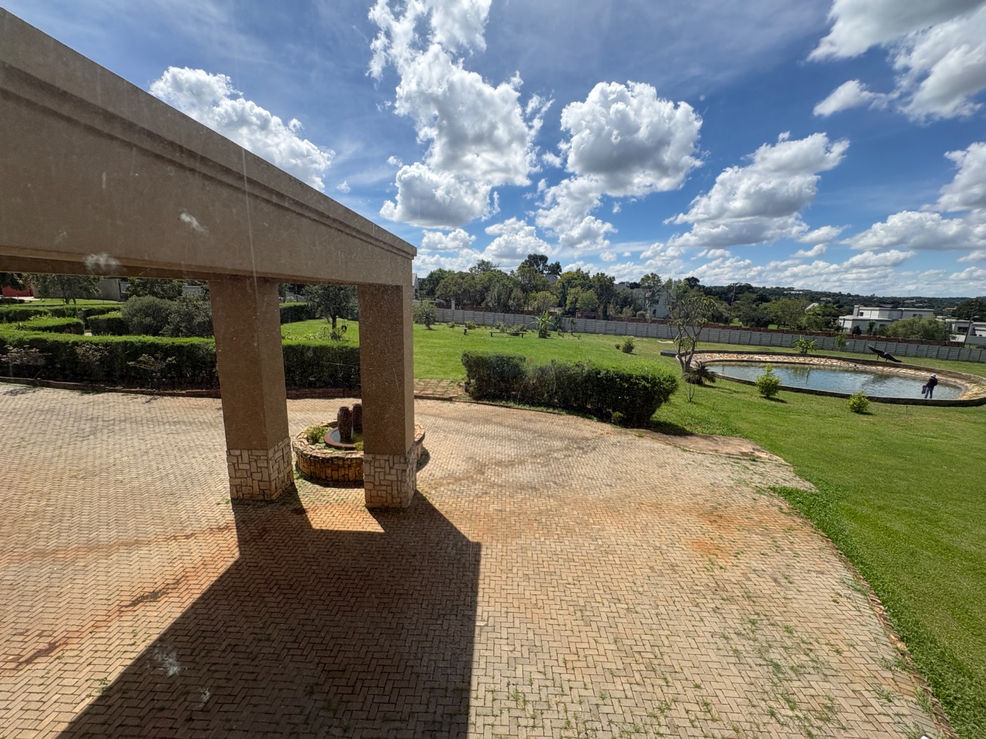 3 spacious living areas on the ground floor with well-appointed kitchen open plan to dining room. There is a light and spacious entertainment area with built in braai, bar and bathroom overlooking the swimming pool and the established garden. There is another covered patio.