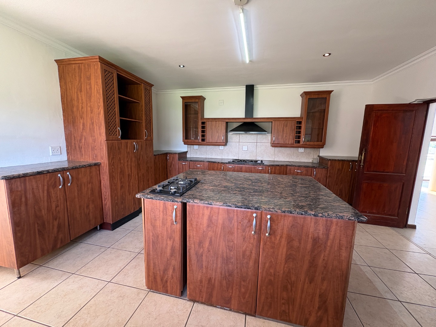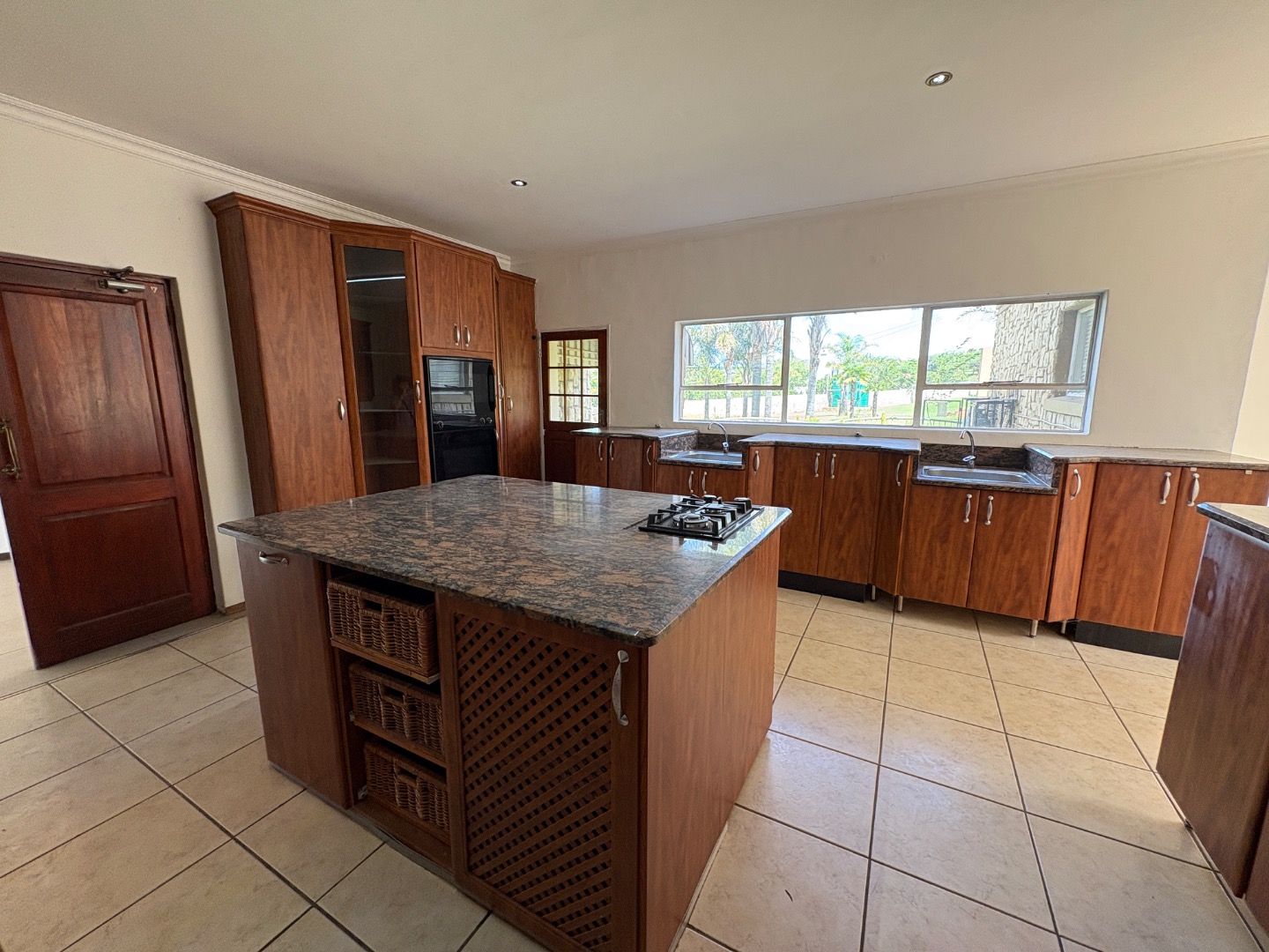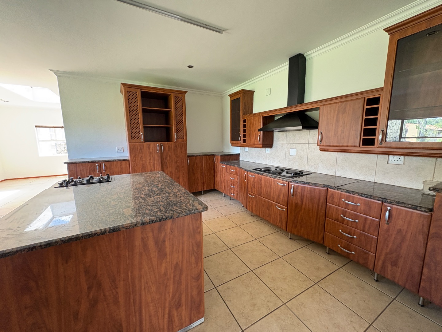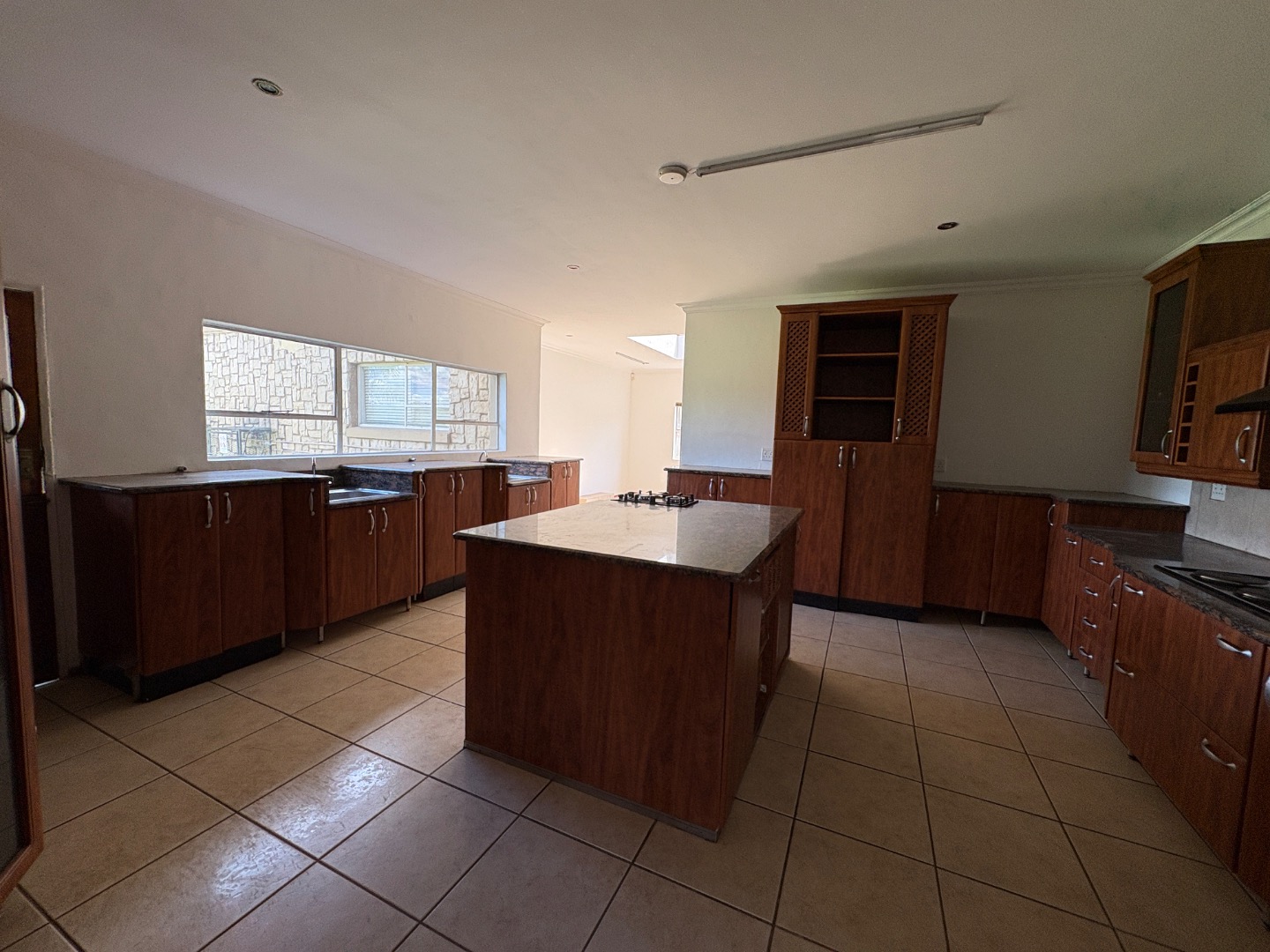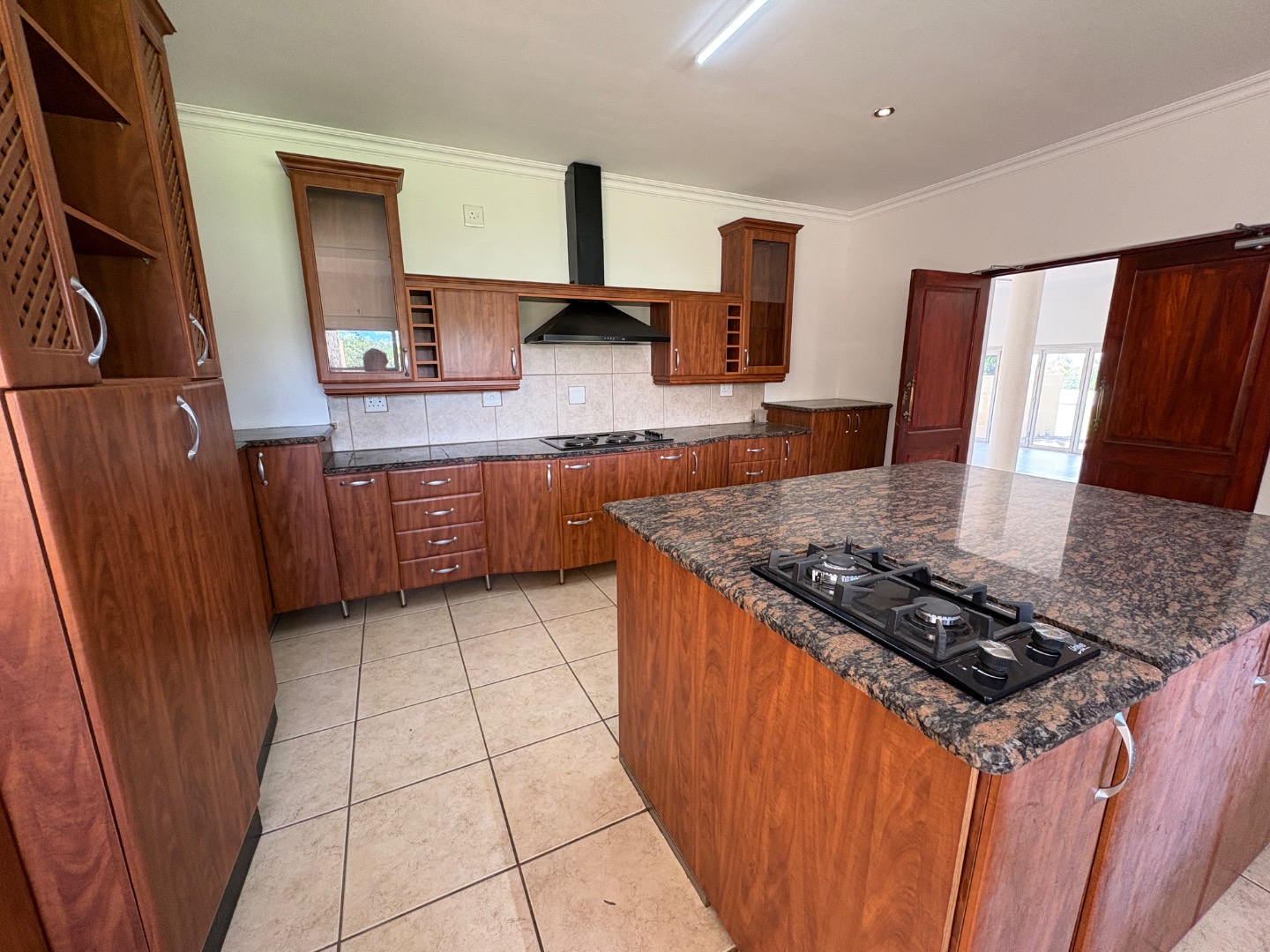 3 spacious living areas on the ground floor with well-appointed kitchen open plan to dining room. There is a light and spacious entertainment area with built in braai, bar and bathroom overlooking the swimming pool and the established garden. There is another covered patio.