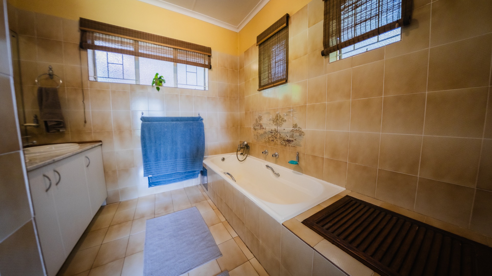 As I step inside, I find three well-appointed bedrooms and two bathrooms. The main bedroom is on suite and truly special, featuring large windows that frame the scenic outlook, walk-in cupboards, and a separate toilet for added convenience. The main bathroom is fitted with both a bath and a shower. The remaining bedrooms offer warm wooden floors and share a bathroom, making them comfortable and practical spaces.
