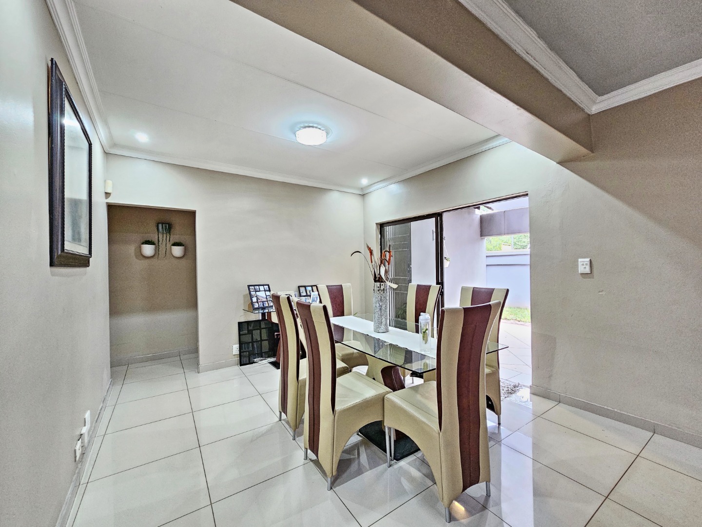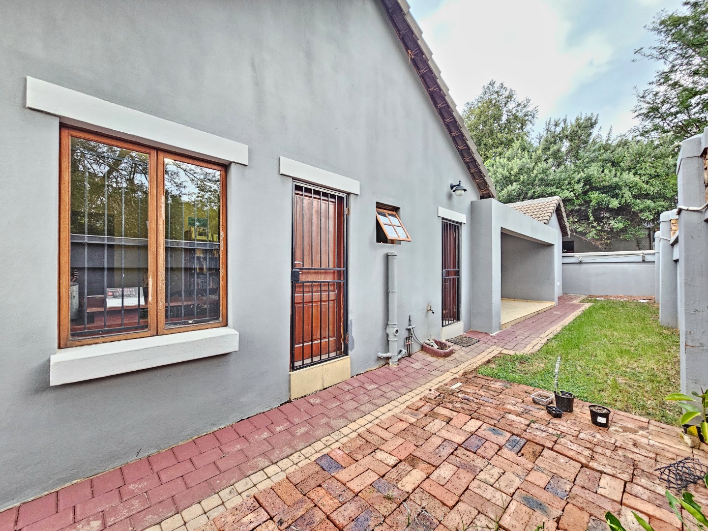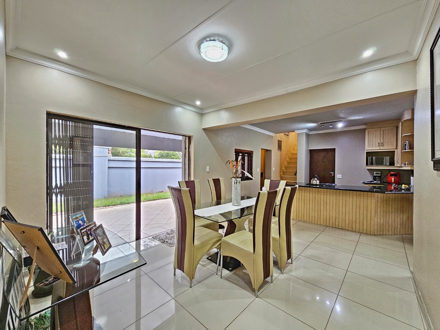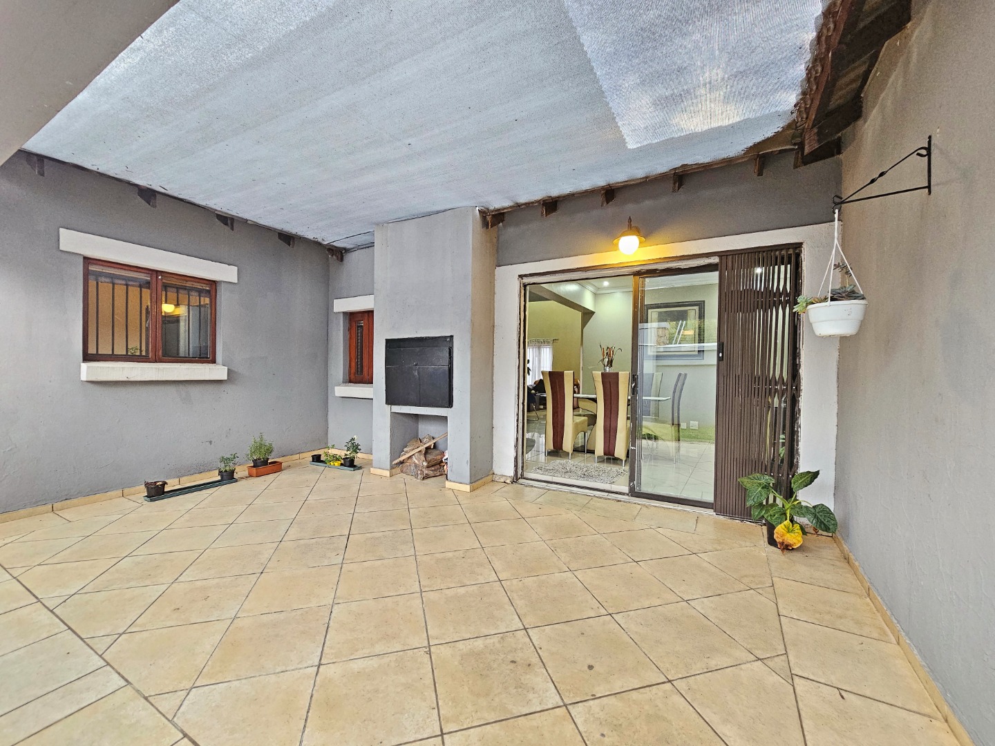 The dining area flows effortlessly onto a charming patio complete with a built-in braai, creating an ideal space for hosting gatherings or enjoying relaxed evenings outdoors. The private garden adds to the appeal, offering a peaceful setting where you can unwind, entertain friends, or spend time with family.