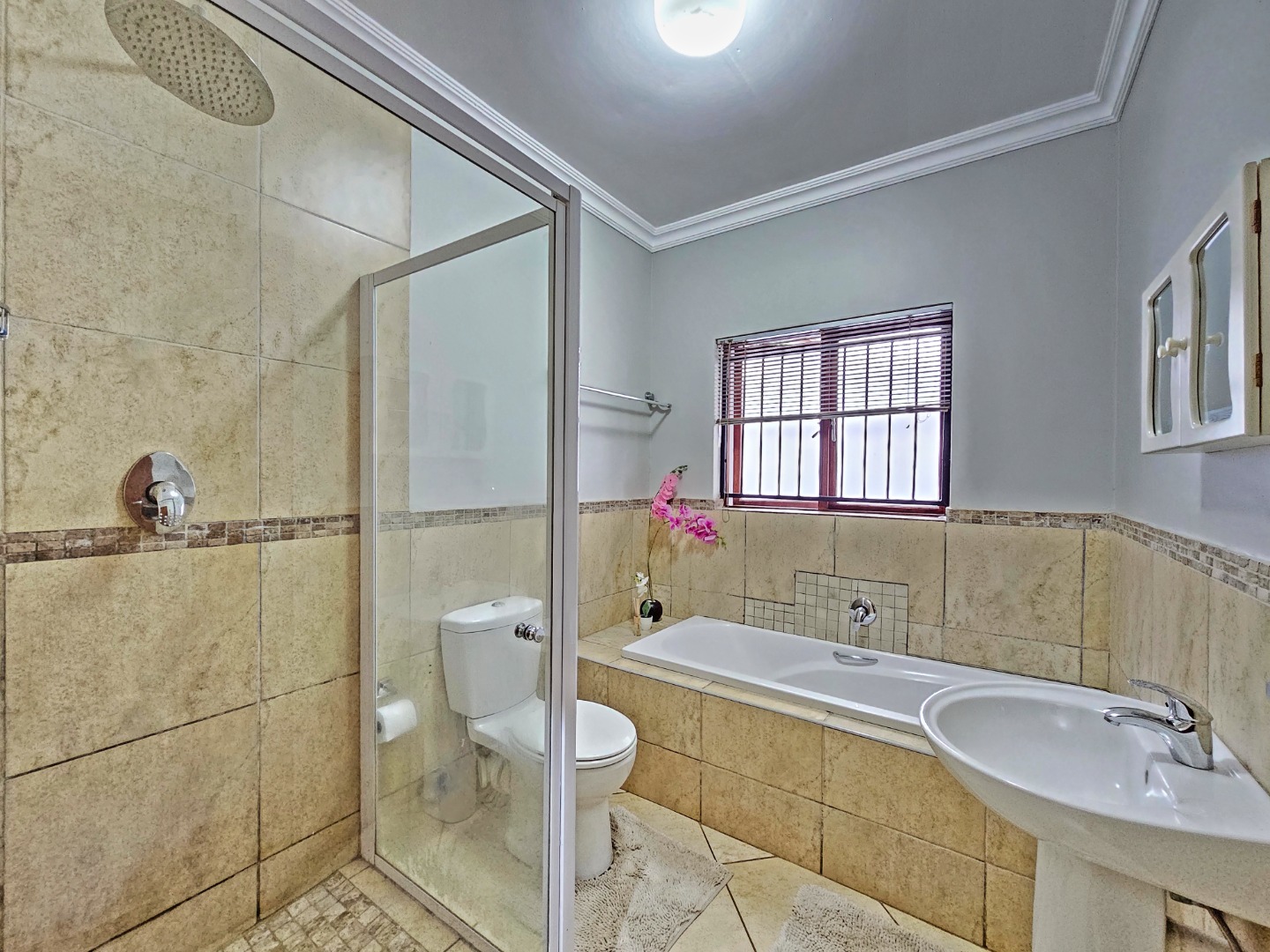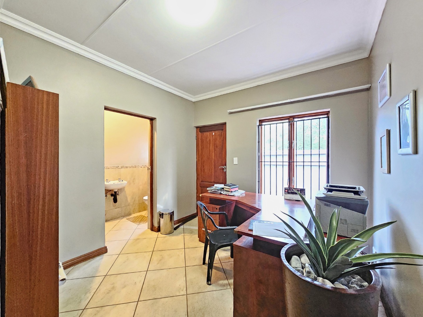 In addition, the property includes a dedicated study that can easily be used as a fourth bedroom. This versatile space is fitted with cupboard space and includes its own bathroom with a toilet, basin, and shower, making it ideal for guests, extended family, or a private work-from-home setup. The room also offers its own access through the garage, providing added convenience and a degree of privacy.