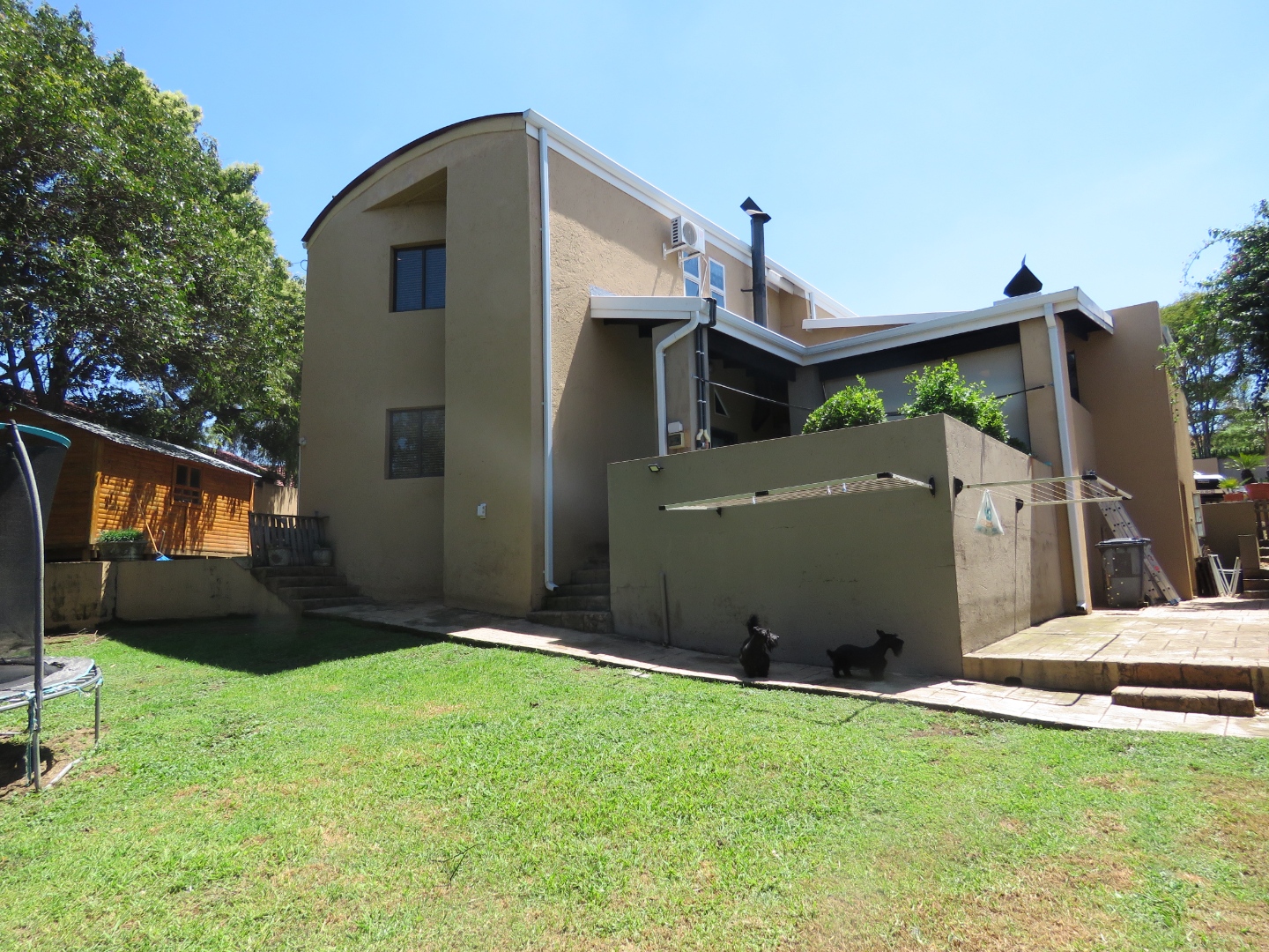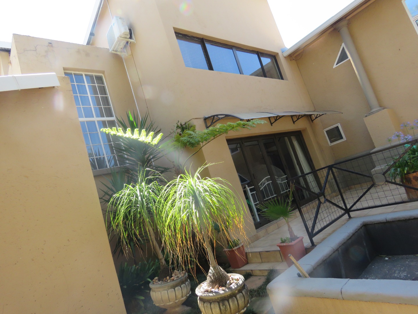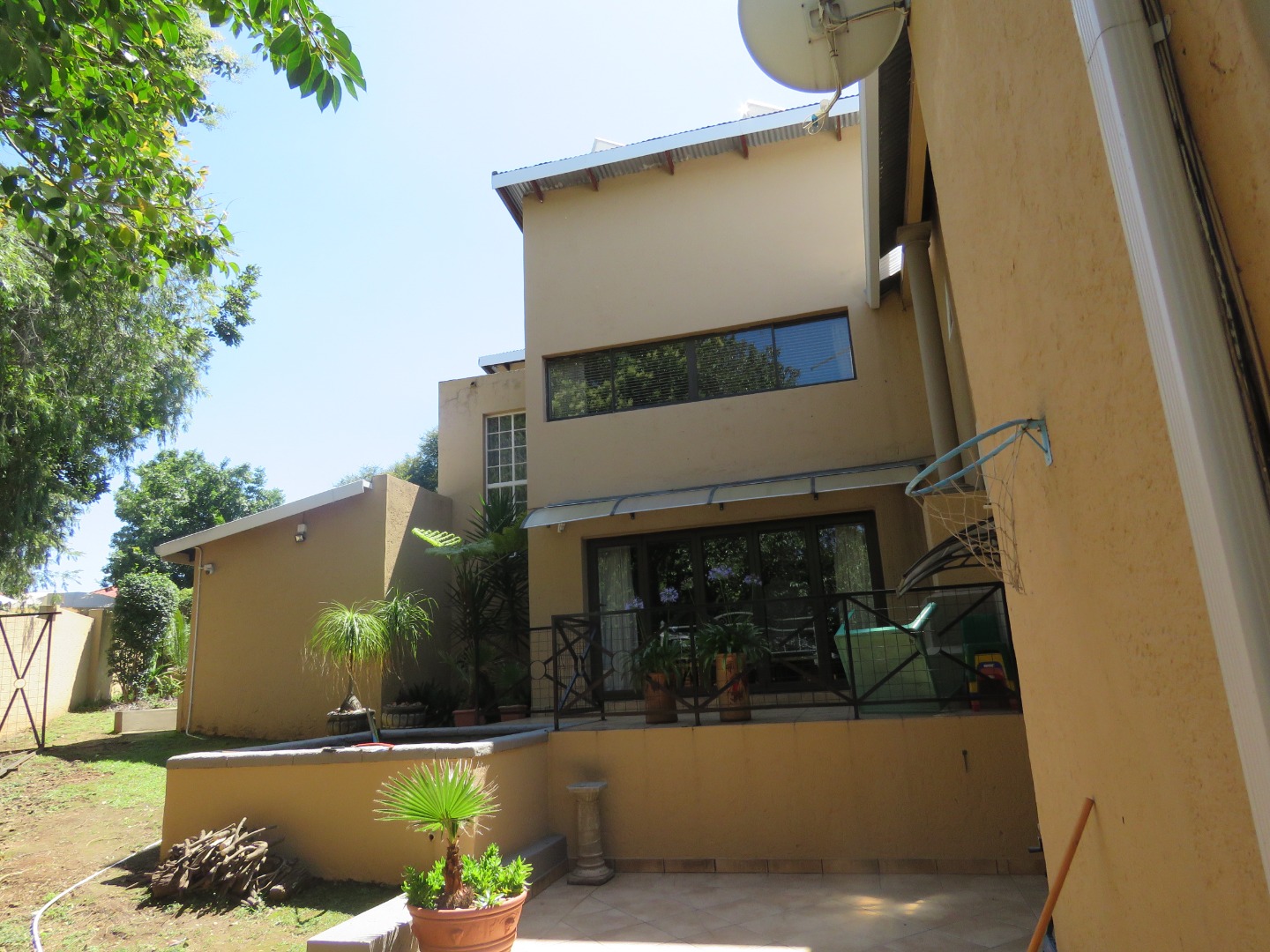 This distinguished two-story residence, situated in the desirable Pretoriuspark suburb of Pretoria, presents an impressive façade with its contemporary two-tone exterior and meticulously landscaped gardens. The property offers a sophisticated living experience within a well-regarded South African community.