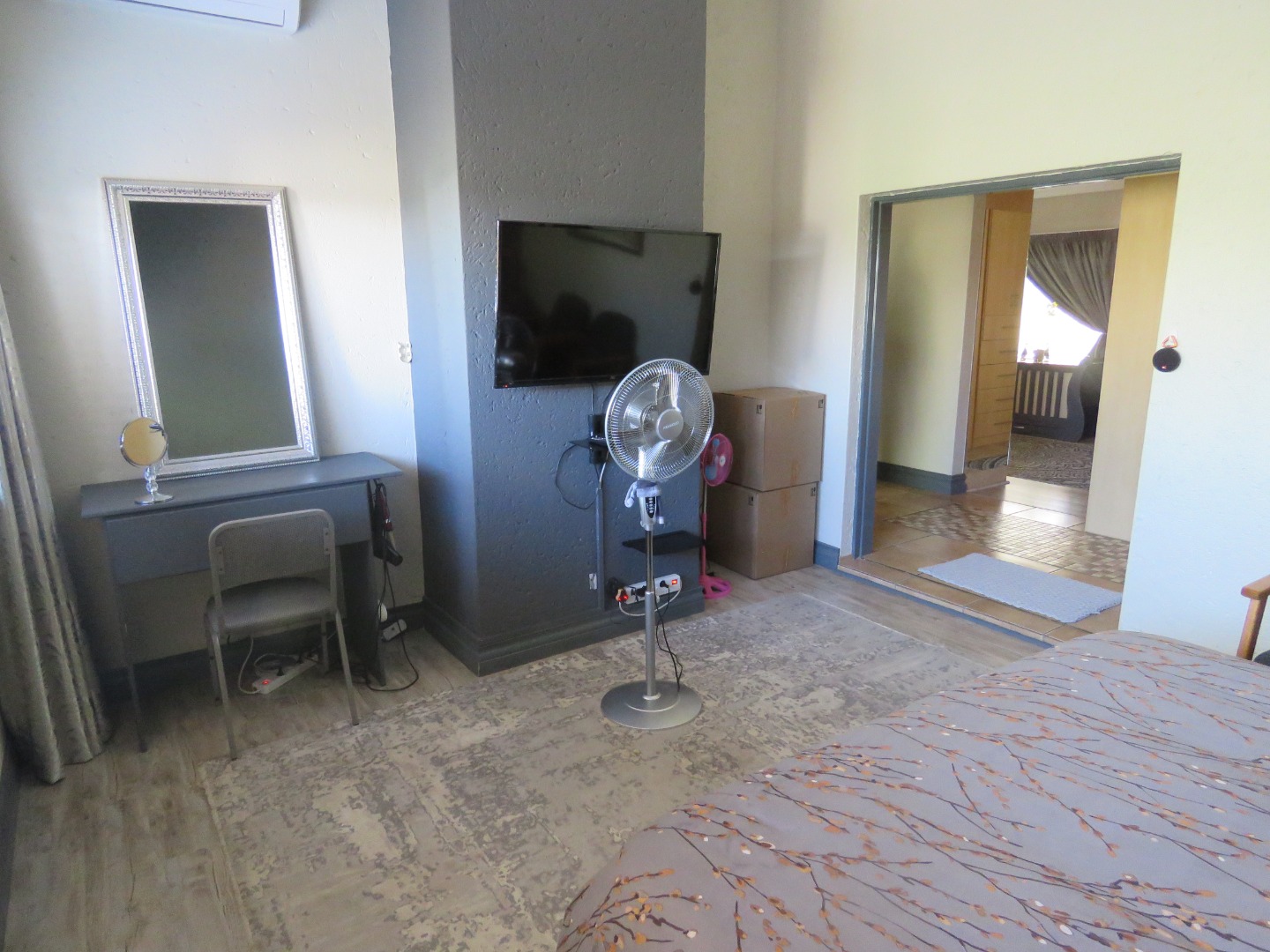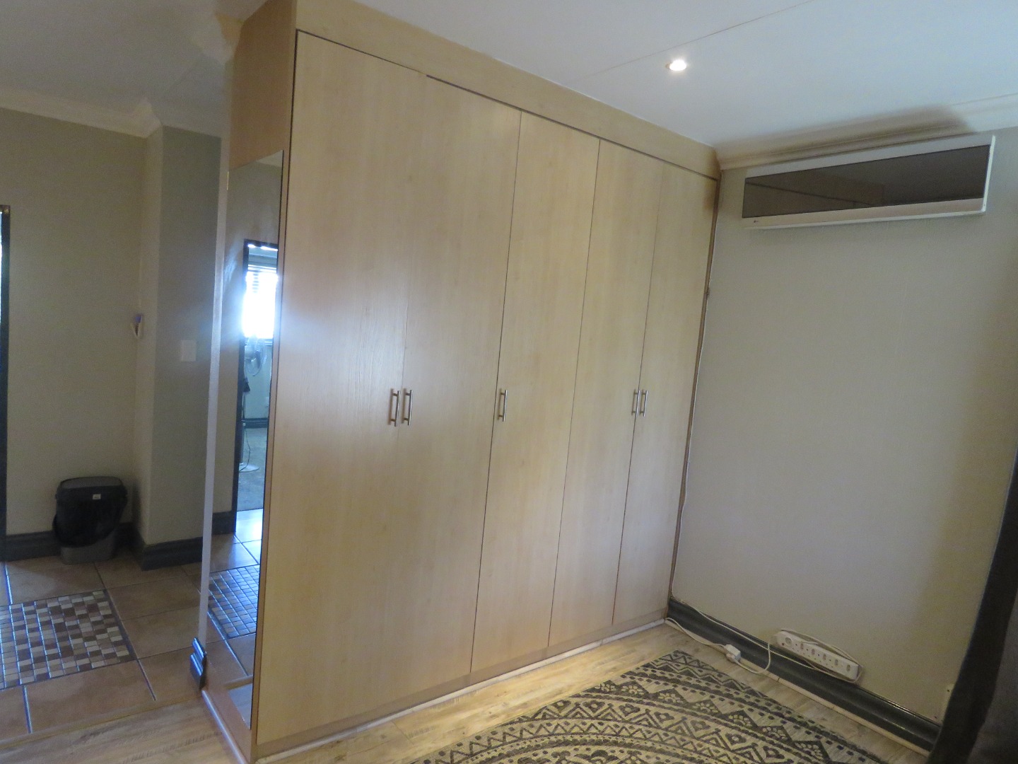 This property is equipped with comprehensive security features, including an alarm system, electric fencing, burglar bars, security gates, and a fully walled perimeter. Modern conveniences such as air conditioning, gas geysers, solar panels, and a battery inverter ensure comfort and energy efficiency. Pets are permitted.