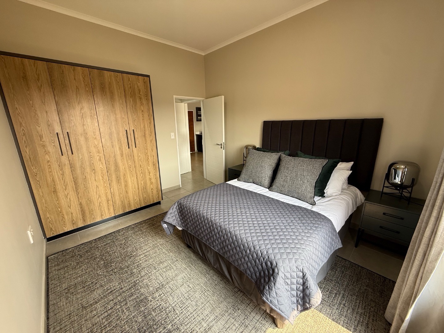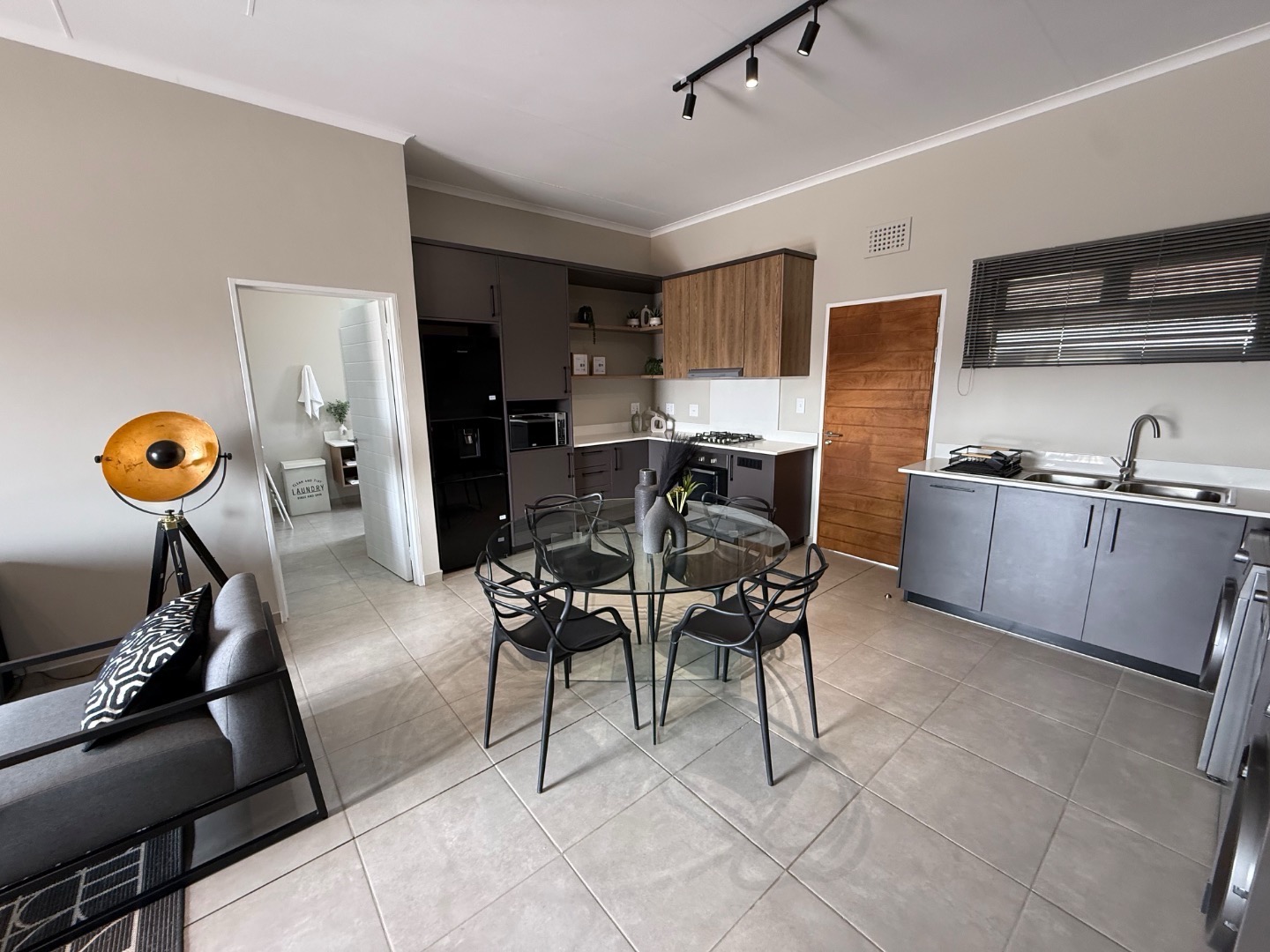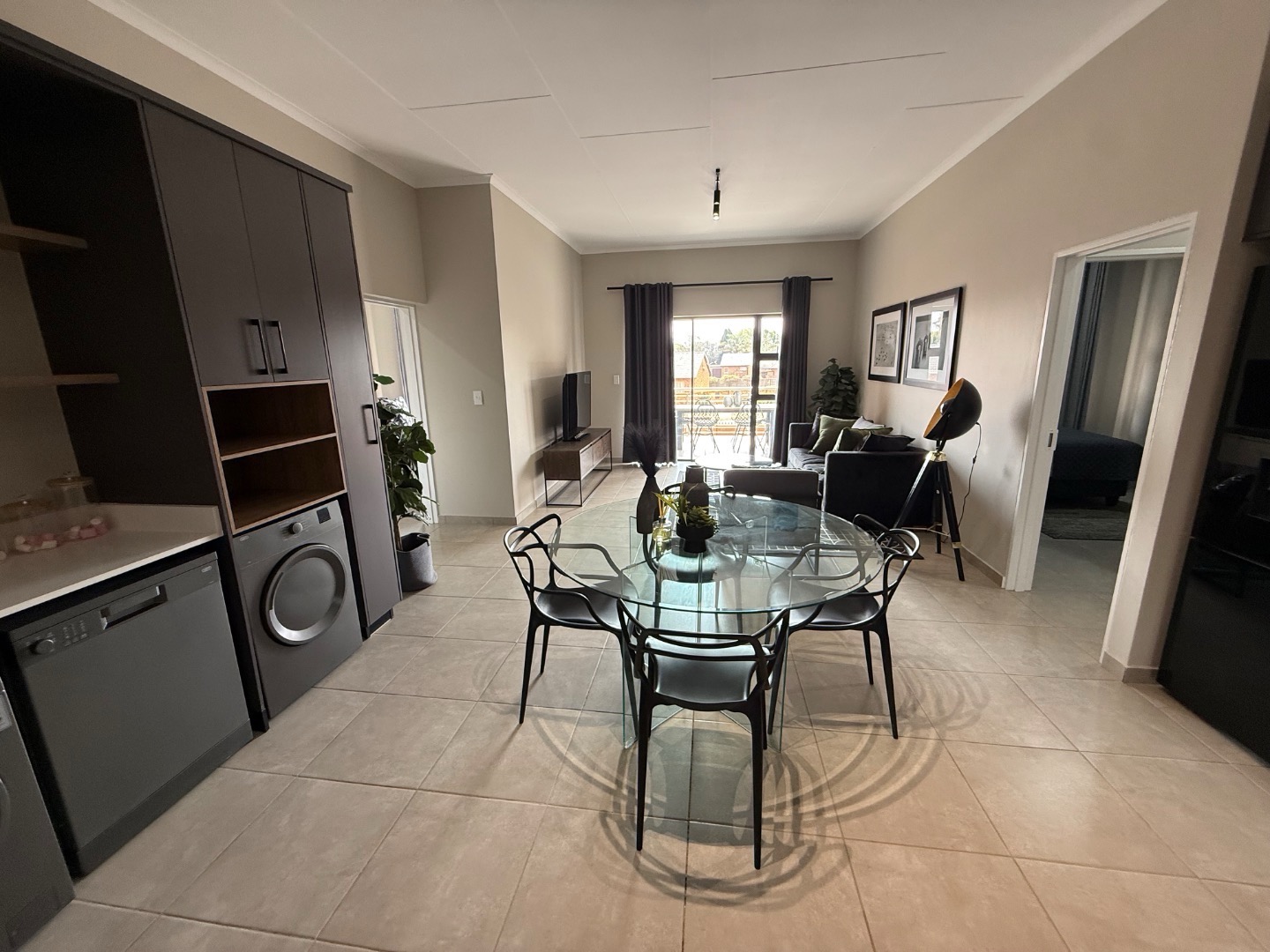 Discover an exquisite lifestyle within this sophisticated 131 m2 residence, perfectly situated in a secure complex in Rietvalleirand, Pretoria East. The interior unfolds with a seamless open plan design, where the lounge, dining area and kitchen converge to create an expansive and inviting atmosphere. Adorned with contemporary decor, a neutral colour palette and durable tiled flooring throughout, this space is both elegant and effortlessly maintainable. The modern kitchen boasts integrated appliances and a convenient pantry, catering to the discerning chef.