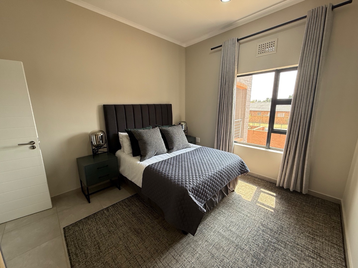 Discover an exquisite lifestyle within this sophisticated 131 m2 residence, perfectly situated in a secure complex in Rietvalleirand, Pretoria East. The interior unfolds with a seamless open plan design, where the lounge, dining area and kitchen converge to create an expansive and inviting atmosphere. Adorned with contemporary decor, a neutral colour palette and durable tiled flooring throughout, this space is both elegant and effortlessly maintainable. The modern kitchen boasts integrated appliances and a convenient pantry, catering to the discerning chef.
