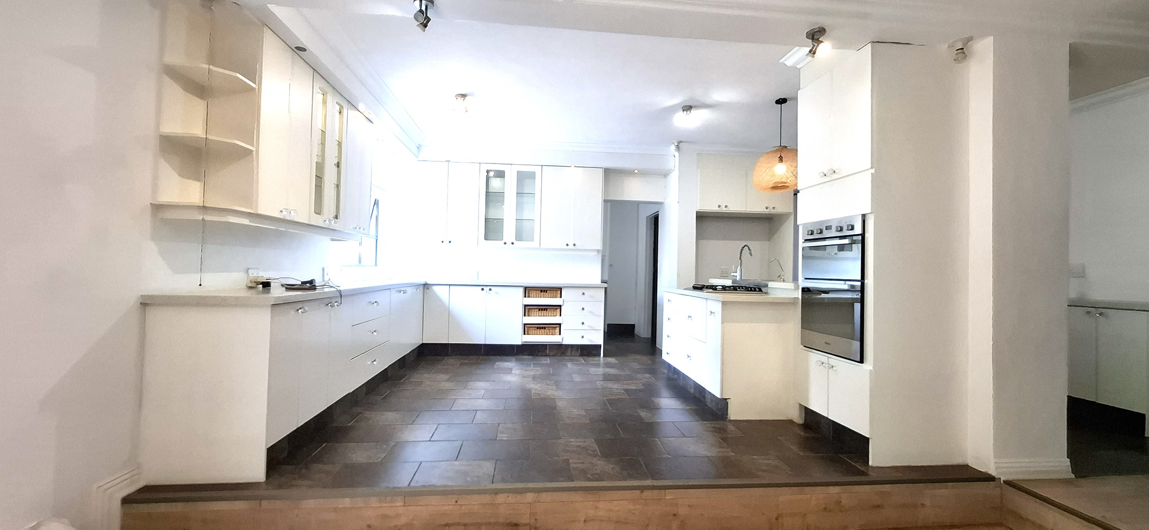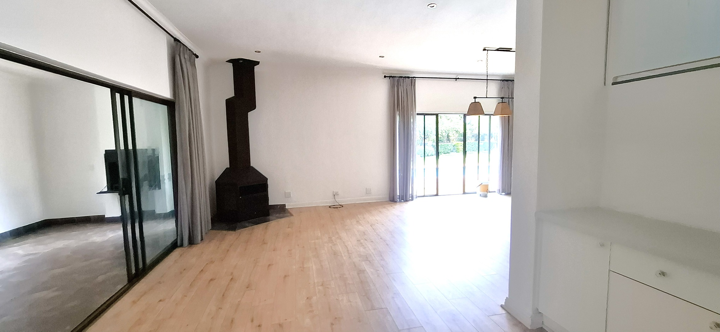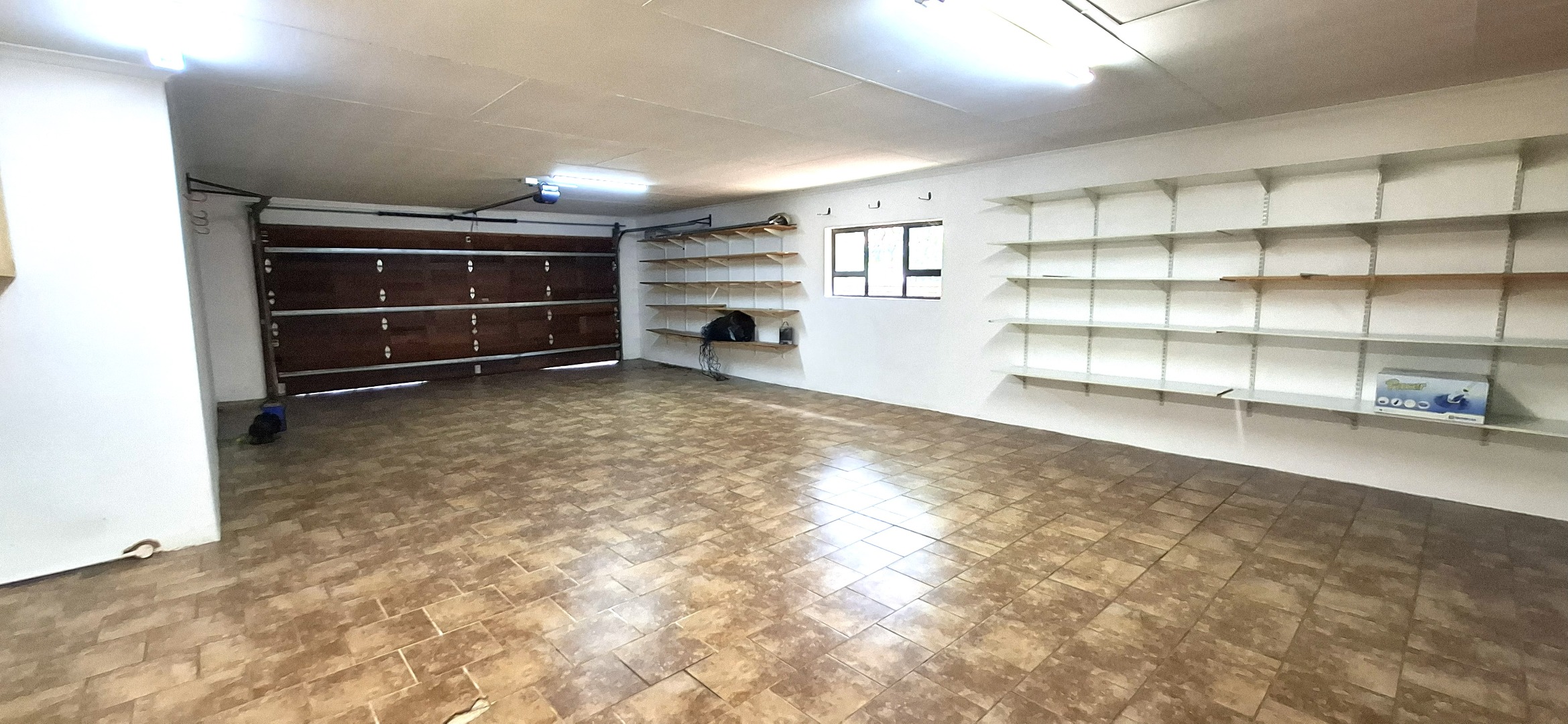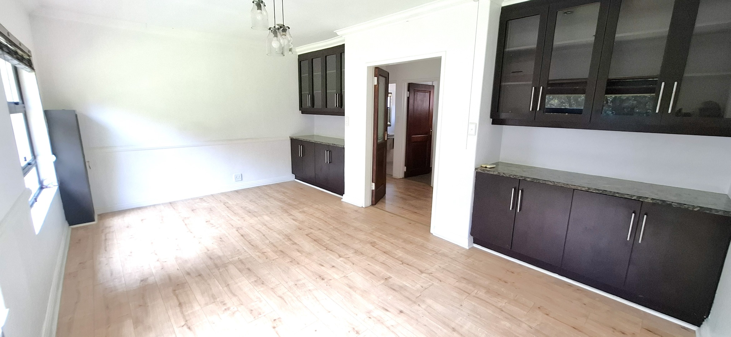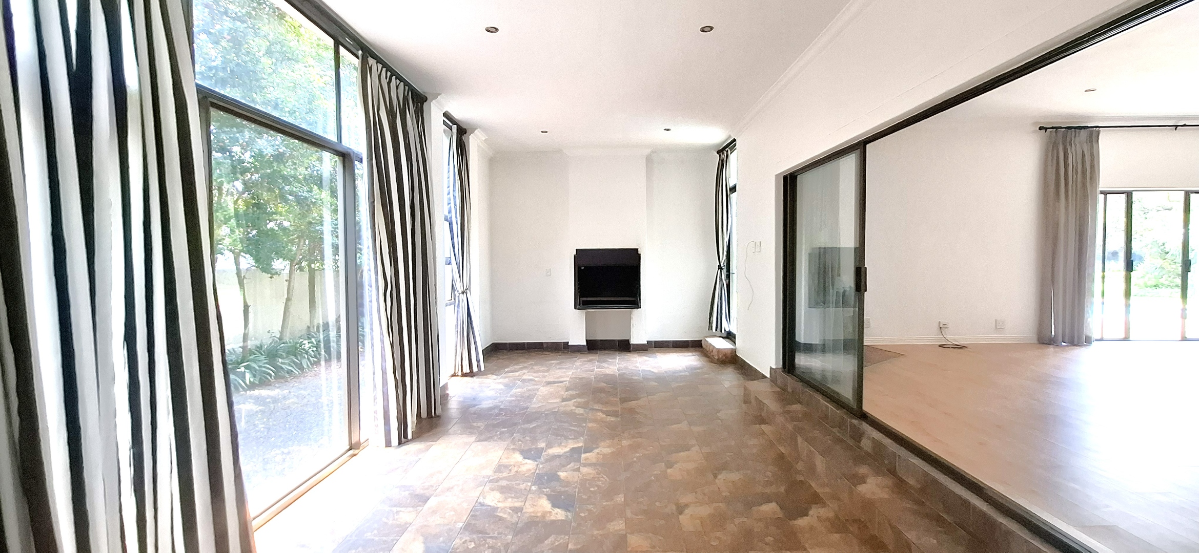The ground floor is anchored by generous living areas that connect naturally with both indoor and outdoor spaces. The kitchen serves as the heart of the home, opening into the dining and lounge areas and complemented by a walk-in pantry and separate scullery. A dedicated entertainment room with built-in braai creates an inviting space for gatherings, while large doors lead out to the garden and pool area.