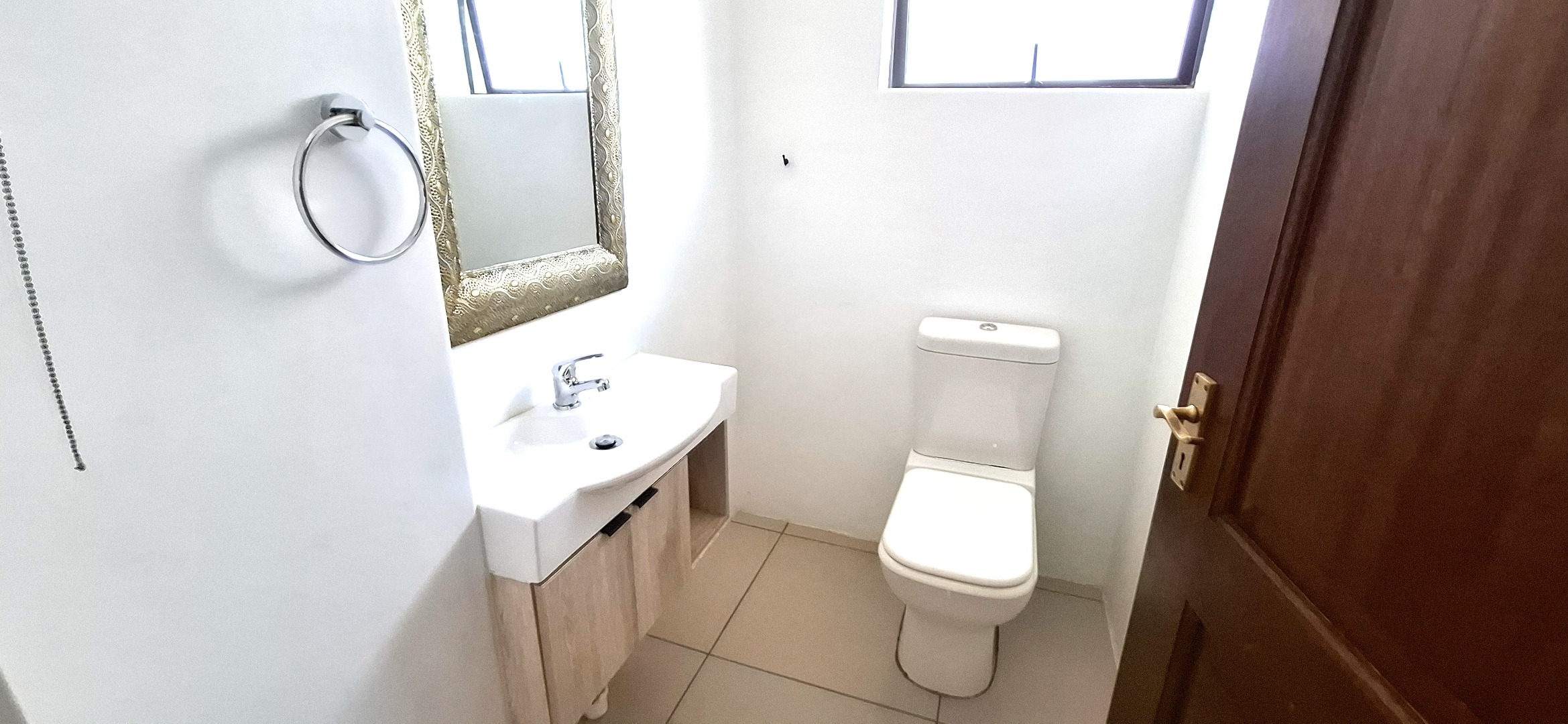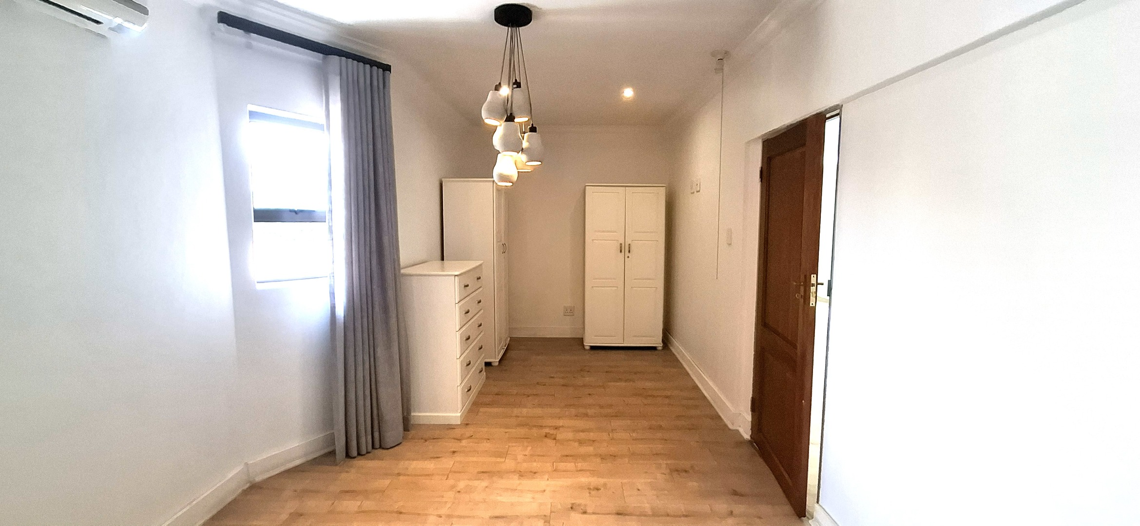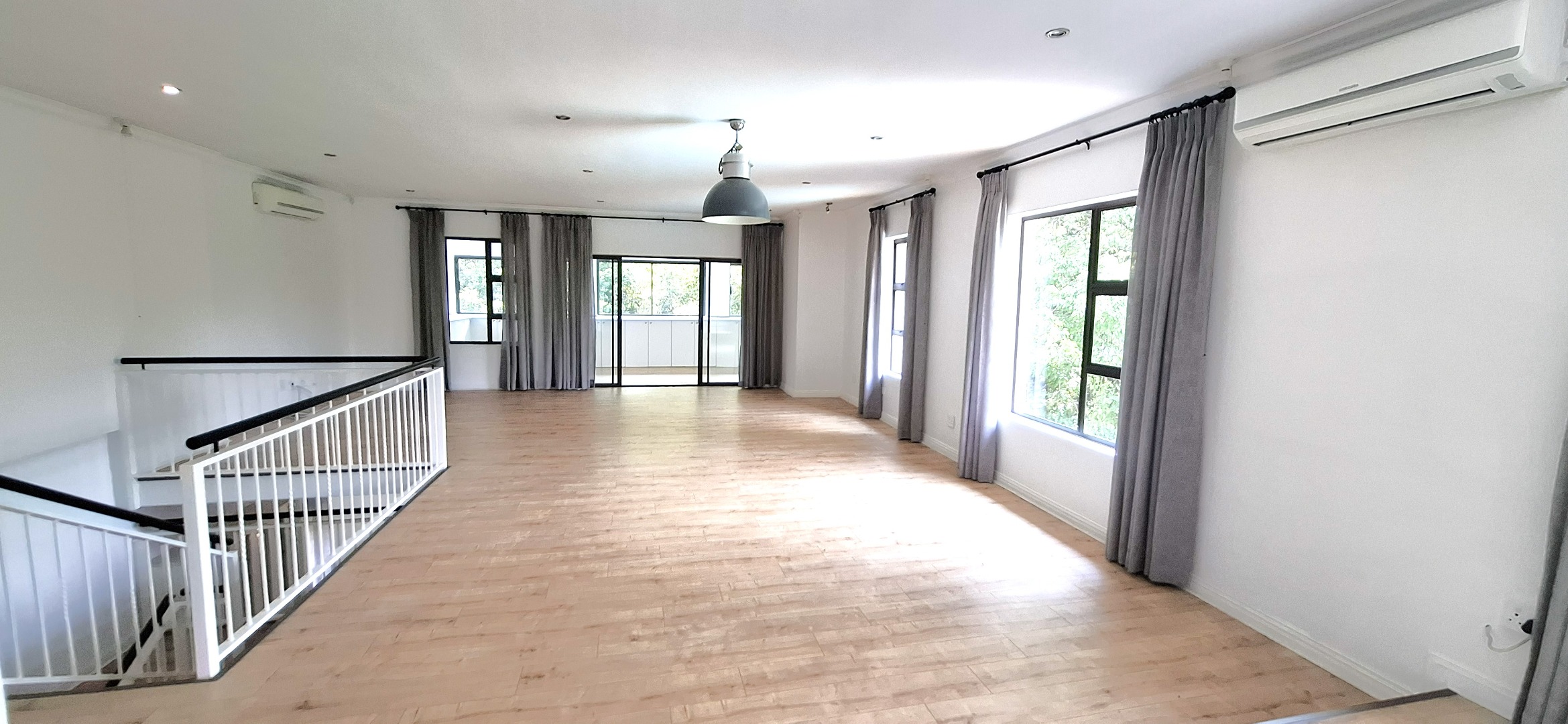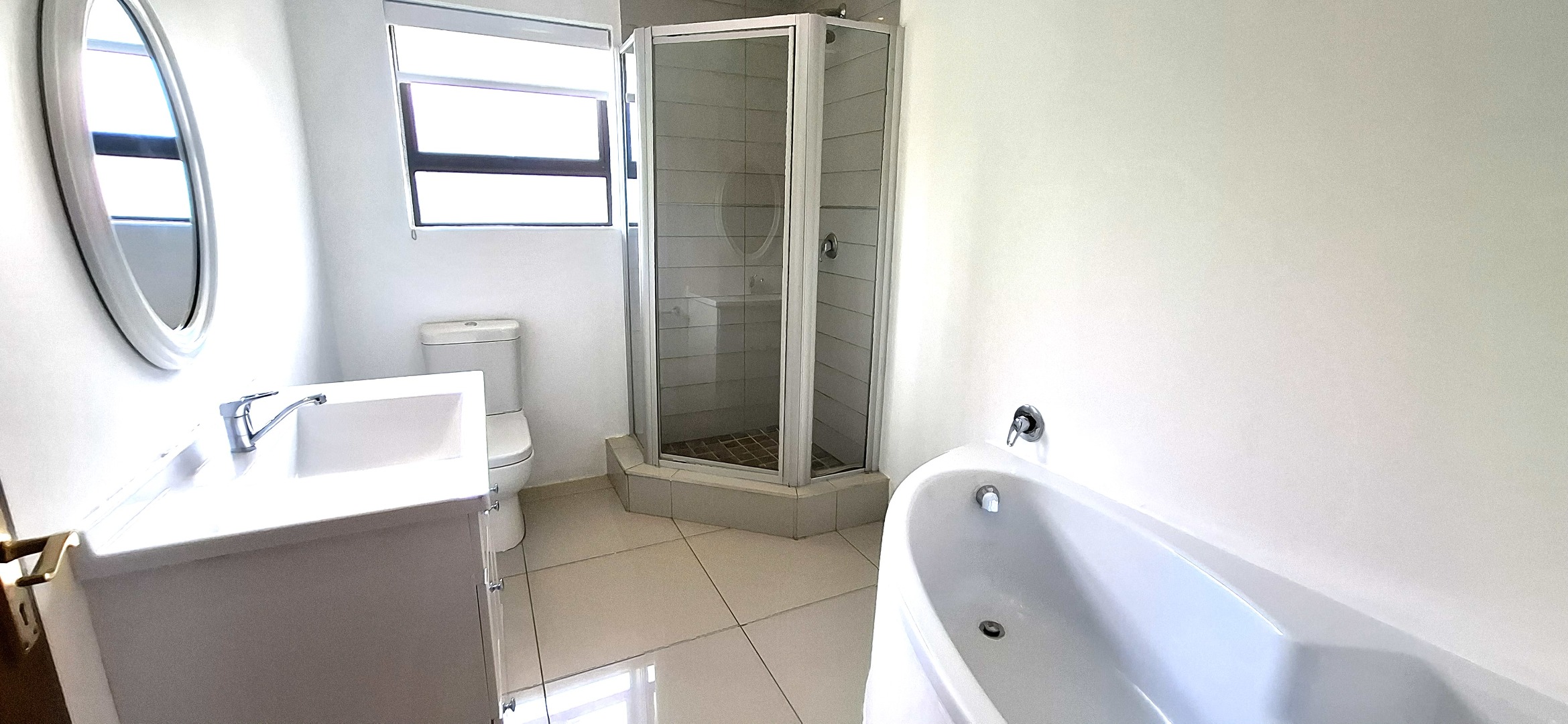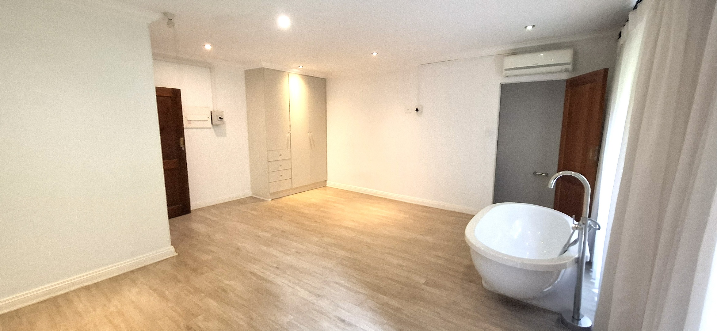 The ground floor is anchored by generous living areas that connect naturally with both indoor and outdoor spaces. The kitchen serves as the heart of the home, opening into the dining and lounge areas and complemented by a walk-in pantry and separate scullery. A dedicated entertainment room with built-in braai creates an inviting space for gatherings, while large doors lead out to the garden and pool area.
